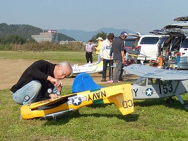 | 「ゆっくりとおちついて安心できる環境の中で大好きなスケール機の飛行を楽しもう」という趣旨で企画されたKMA秋季大会は豊岡市のご協力により広大な運動公園を2日間にわたり、全面的にお借りすることができ、開催できる運びとなりました。 豊岡市はコウノトリの生育地として全国的に有名なところで、過去には実機のエアロバチック世界大会やスカイスポーツジャパンなどが開催されるなど、スカイスポーツに理解のある自治体です。 KMAの大会は11月6日ですが、前日の5日は調整飛行やF4Cフライトスクールなどが実施され2014年のフランス大会でF4Hの部で五位に入賞された山口県の田村基治代氏により模範飛行を見せていただき絶好のコンディションの中、飛燕を使っての水平八の字、ディセンディング、レイジーエイト、バレルロールなど文章や図では表現しがたい点を、実際に見ることにより、参会者一同、おおいに参考になりました。 この日の飛行は世界大会での飛行を彷彿させるような素晴らしいフライトを実技していただきました。 土曜日の調整飛行会は約40名あまり参加が平均2?3回程、飛行ができたようです。 当夜は豊岡市内にあるスカイホテルに全員が宿泊し、親睦会が行われ、模型飛行談義と美味しい鍋料理を楽しみました。 翌6日はいよいよ大会当日夜半からの降雨は止んだものの強風注意報が出る中、埼玉や福岡、徳島、三重など遠方の参加者も含め、60名の大会となりました。 午前中に同時飛行で悪条件の中、ほぼ全員が飛行することができ、大会主催者として、ほっと安心できました。 当会場は地域環境配慮として昼12時‐13時は飛行自粛時間と決め、その間を活用して参加者全員の機体をフィールドに並べ各自が好みの機体を5機選ぶ仕組みで、全員による人気投票を実施しました。 総票5*60人=300票により1?3位と委員長特別賞を選出しました。 1位は48票を獲得した山口より参加された田村氏(OSジエミニ160)のメンター 2位はエボリューション9気筒を搭載した高谷氏のステアマン、3位は徳島より参加された山下氏のライサンダー(サイト‐FA325RF)、特別賞は福岡より参加された松木氏のニューポール28(プロクター製)スケール機らしくないド派手な塗装で参加者の目を釘付けにしていました。 午後は更に風が強まったので任意による自由飛行に切り替え15時ごろに閉会式となりました。 今大会は多くの協賛をいただき、参加者全員に商品があたるという近年例をみないほどゴージャスな素晴らしい大会となりました。 協賛メーカー様(順不同・敬称略) 小川精機株式会社・三和電子機器株式会社・株式会社テトラ・京商株式会社・株式会社OK模型・篠永化成株式会社・日本遠隔制御株式会社・有限会社エアー・クラフト・テクニックジャパン・カシオペア・双葉電子工業株式会社・東邦化研工業株式会社・ハイテックマルチプレックスジャパン・株式会社セメダイン 皆様ご協力いただき誠に有難うございました。 (文、kMAスケール委員長 岡本順一 写真:加藤弘志、岡本順一、橋本実、山本修造) |