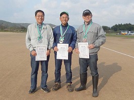 ![]() 入賞者の皆さん 左から2位高谷、一位田村、三位山下の各氏 |