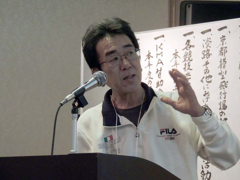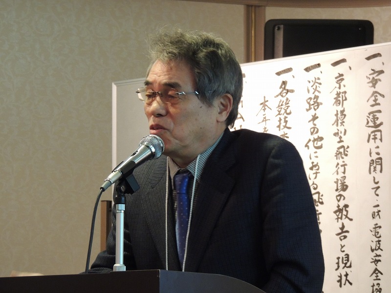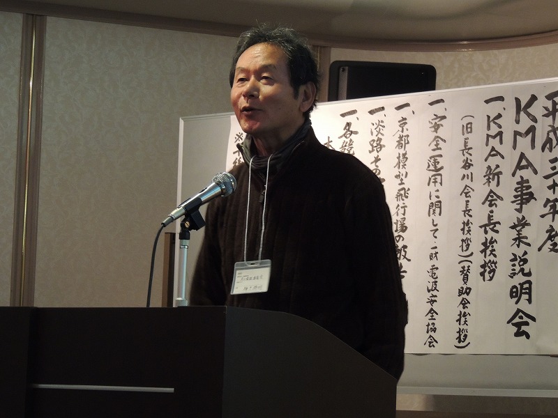 日本ラジコン電波安全協会の神林専務理事によるラジコン模型の安全運用に関するご説明、KMAの各担当理事によるKMA京都模型飛行場の現状報告、淡路市並びその他地域における新飛行場確保の活動状況の報告など実施。その後引き続き、各競技委員会・KMA賛助会員メーカー・団体のイベント報告や今年のスケジュール発表などを行いました。