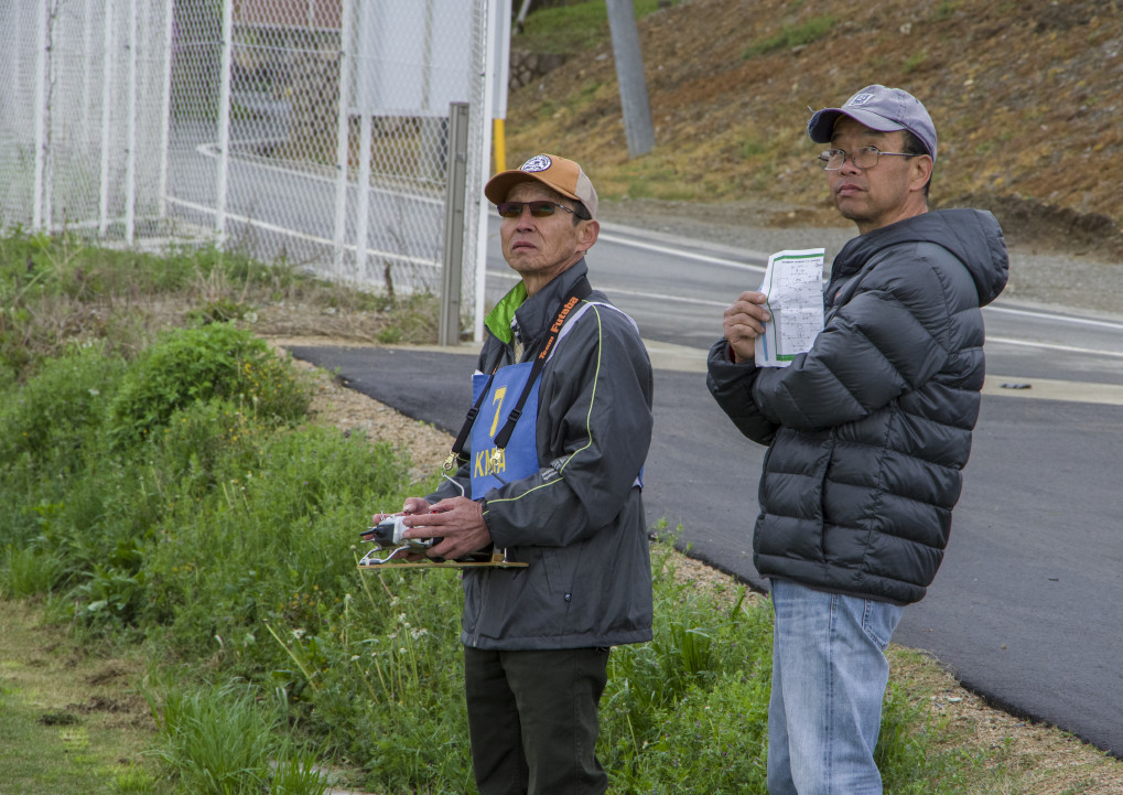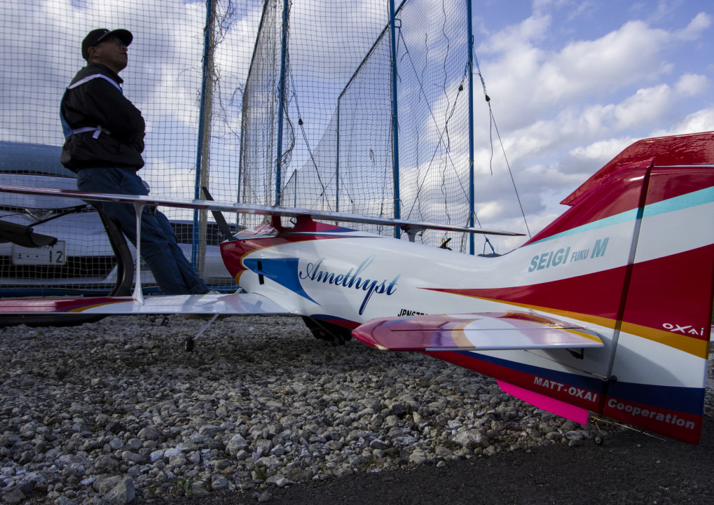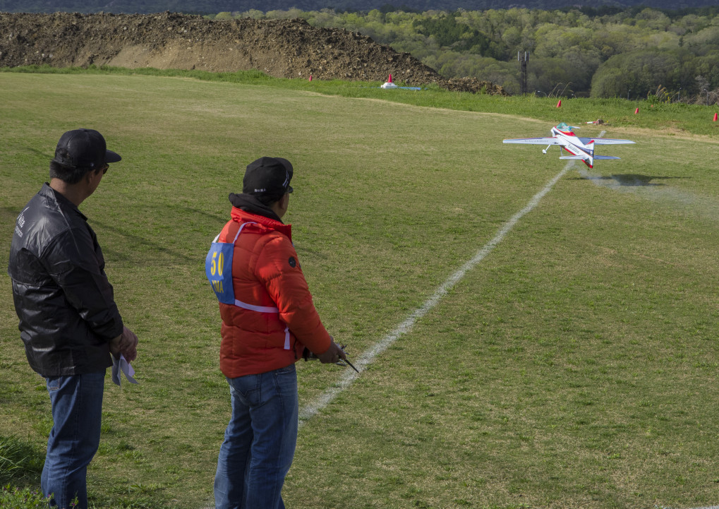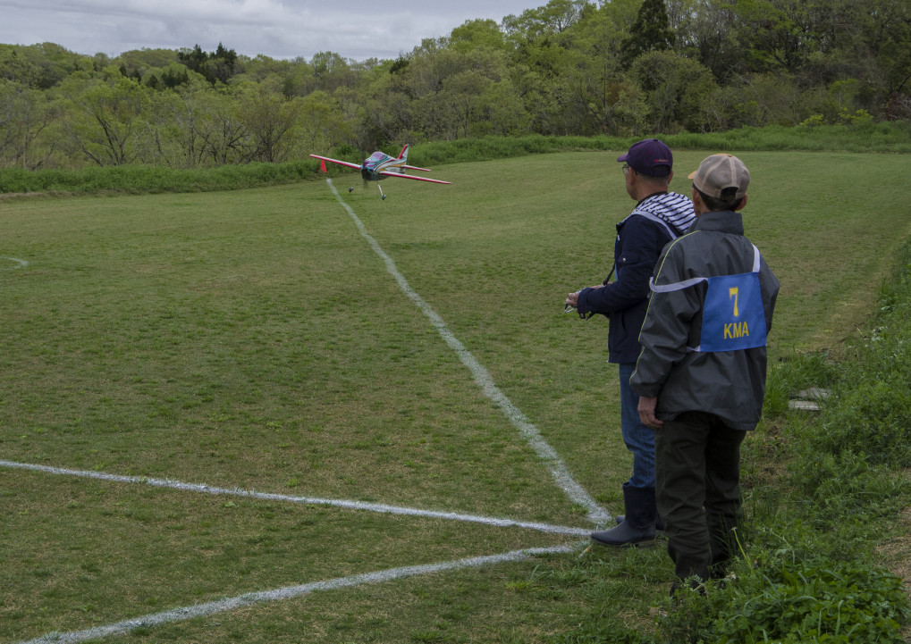 | 2018年春のKMA曲技大会 & 検定会 2018-4-15 毎年恒例の大会です。今年はスカイグランドにて、午前中は検定会、昼からはKMA曲技大会を開催しました。検定会に20名、曲技大会へ29名の申込みがあり1名キャンセルで、28名の参加となりました。前日は強風でほとんどフライトできない状態で、夜には強い雨と風で春の嵐でした。開催が危ぶまれましたが、朝になると雨も上がり、風も弱く、曇りで良い条件です。皆さんの祈りが通じたようです。 午前中の検定会は全般に曇りで、いつもなら正面にある太陽もなく、飛ばしやすかったのではと思います。合格者も10名と50%でした。演技が変わって最初の検定会としては良かったと思います。それも皆さんの日頃の練習の成果が出たのだと思います。 曲技大会は晴れ間が出てきた13時に始まり、終了は17時半ごろと予定通りに終了しました。始まったころは風も弱く条件は良かったですが、中盤あたりでは強い前風になったり後風になったりと、着陸が少し難しくなった時間帯もありました。このときに2人の棄権があったのは少し残念でした。後半は夕凪になり、最高の条件ではなかったかと。良い条件にめぐり合うのも実力のうちですね。ジャッジは上田、中田、坂本、羽根田の4人で採点は0.5点刻み、演技ごとの上下カットです。 結果は最終フライトの金森選手が逆転優勝となりました。良い条件、豊富な練習が身を結んだのではないでしょうか。2位の林田選手とは8.5点差、3位の松田選手とは22点差、4位から8位までは6点の間に5人がひしめいていました。まさに混戦模様です。 今回は和歌山から5名も参加いただきました。そのうち3名は今回が初めての参加で、これからも常連になって頂けたらと願います。参加いただいたみなさん、ありがとうございました。おかげさまで、無事に終了できました。 また、大会の運営に御協力いただきました山原さん、藤本さん、加藤さん、松田さんには御礼申し上げます。 当日の結果はこちらをご覧下さい (文と写真:KMA RC曲技委員長 神戸 祥明) |