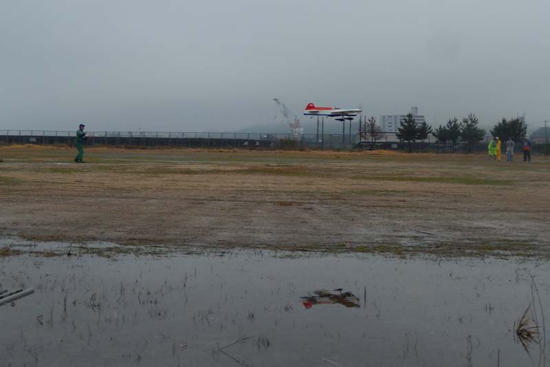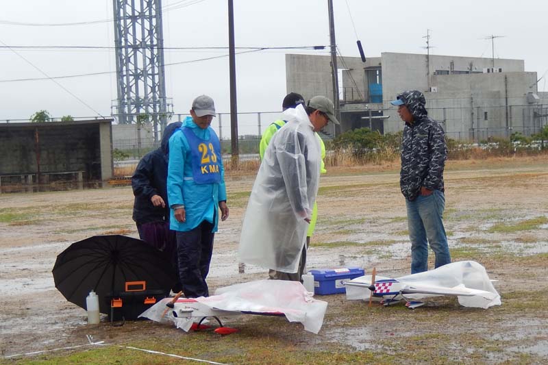 今年度のKMAコントロールライン春季全国大会を兵庫県淡路市の東浦市民グラウンドにて開催致しました。 5月12日(土)初めての淡路島での開催とあってか、参加選手は若干減ったものの、延べ約20名の選手の参加があり有意義な一日となりました。 開会式では橋本善之KMA会長が挨拶、一層大会を盛りあげるお言葉を頂き選手、役員一同感激致しました。 また、競技中には地元淡路市の門康彦市長もお見えになり、しばし競技をご覧頂きました。 当日の天候は晴、午前中は微風の好条件でしたが、午後は風速4〜6m程の強風の中での演技となり、参加選手も日ごろの成果を見せる事が出来良い一日が過ごせました。 大会2日目、5月13日は予報では朝から雨となっていましたが、開会式終了までは何とか持っていました。 しかし集合写真を撮る時点でどしゃ降りとなり、競技開始をどうするか役員、選手で話し合った結果、時間をずらして競技を開始することに決定しました。 競技を開始したもののやはり雨はやまず、開始以降棄権者が続出し、このままでは競技が成立しない為A、Bサークルの上位各3名で決勝一発勝負にて順位を決定する事としました。 天候が不順の為、6名の選手でジャンケンをし、勝った選手から出発順を選んで貰い決勝飛行を行いしました。 決勝飛行1番目は村田 浩司選手です。スタートから微風、小雨の好条件での飛行で得点を伸ばし、結果今回優勝されました。 2番手から徐々に雨が強くなり、最終選手の原 誉祠選手の時には飛行は無理だろうと思われる位の強風、大雨でしたが、さすが元日本チャンピオンの意地を見せ圧巻の飛行を行い2位を獲得。演技終了後ジャッジは元より各選手から、一生に一度見れるかどうかの素晴らしい演技を見れたと原選手に拍手喝采、エールを送りました。 最後になりましたが、今大会には多数の協賛メーカー様、またKMA本部の役員の皆様方の多大なるご支援、ご協力を頂き感謝致します。 これからもKMAコントロールライン委員会の活動にご協力の程お願い致します。 5月12日の結果はこちら。 5月13日の結果はこちらです。 文:KMA コントロールライン委員長 久留島 隆司 写真:久留島委員長、山本修造 |