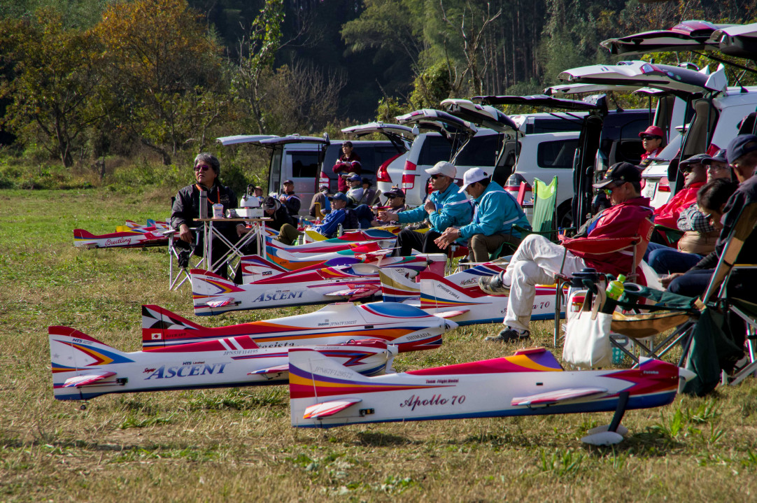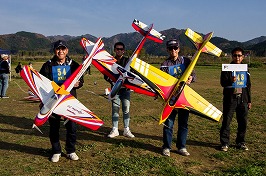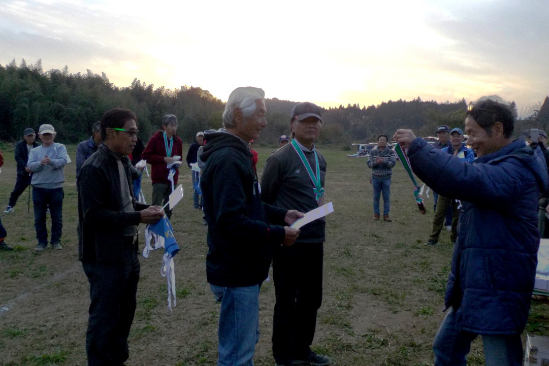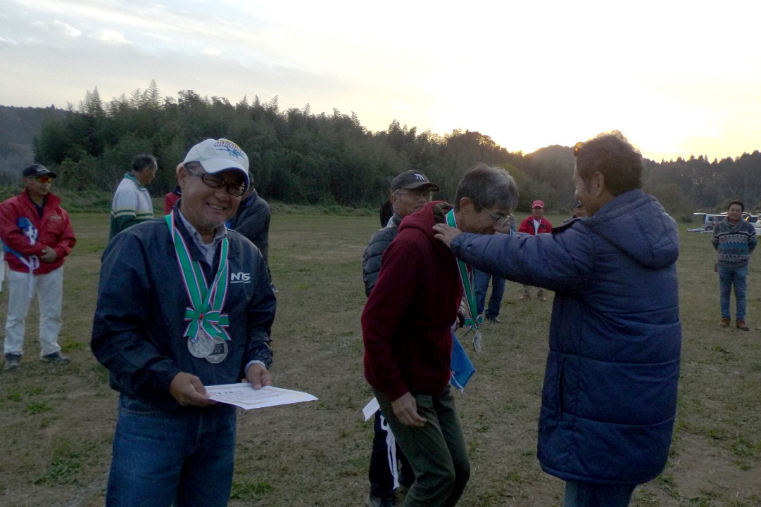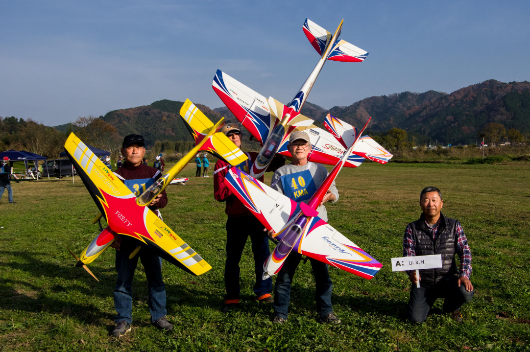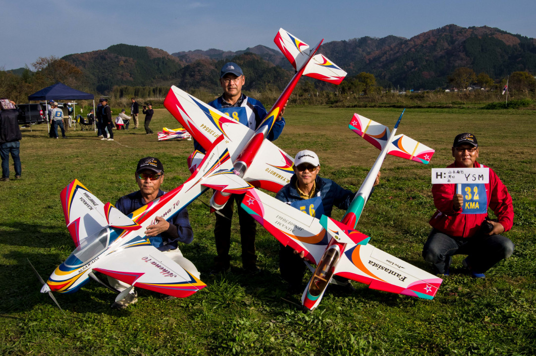 | 昨年は飛行場の問題で、開催できなくて残念でした。今年は新飛行場でスタント大会がこけら落としの開催となると思っていたのですが、台風によるかん水で、車が入ると必ずスタックする状態となり、延期を余技なくされました。 その後の整備作業が多く、みなさんの力を借りて、飛行場として使えるところまで、何とか来ました。 でも怪我の功名で、参加者が増えたことは台風に感謝しないといけないのかな。 午前中はP-19の演技による戦いです。21名の参加で、午前中で終了できる精一杯の人数です。 他にも参加の打診を頂いたのですが、お断りして申し訳ありませんでした。 ここは有数の雲海のメッカで、朝からかなり霧が濃い状態です。これほど濃いのは初めてでした。 早く晴れてくれないかとやきもきしていました。でも、9時ごろには晴れ始め、フライトできるレベルになりました。 目慣らし飛行は太陽がセンターにあり、ほぼ水平飛行の高度です。 初夏から飛行場の整備に何度も訪れていますが、今回ほど、雲ひとつない空に、強い太陽を見たこともありませんでした。 でも流鏑馬を使って競技の開始です。栄えあるトップバッターは松原選手でした。昨年、日本選手権へ初出場されています。 しかし、太陽に四苦八苦され、本来の実力が出ていなかったようなフライトでした。 結果を見ると、フライト順による運不運があったかもしれませんね。 また飛行場によっては同じ方角で飛ばされている方もおられますし、流鏑馬を使った練習をしている方もおられます。 ここでの大会がメインとなるこれから、克服していただきたいと思います。 ジャッジは上田さん、中田さんの2名で、2人合計が得点です。 結果は優勝:松田選手、準優勝:桑田選手、三位:松宮選手でした。 |