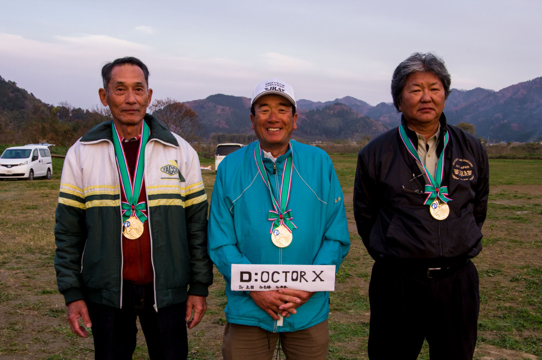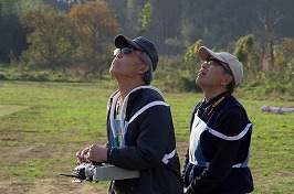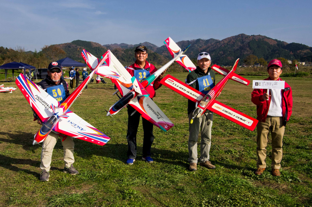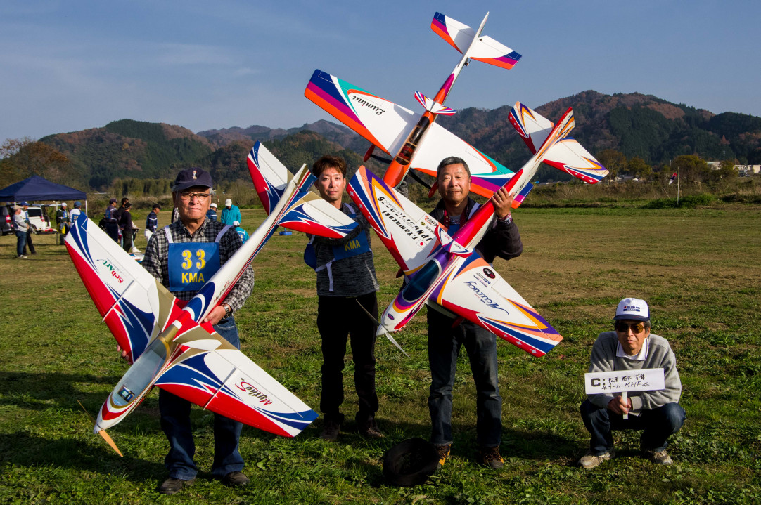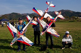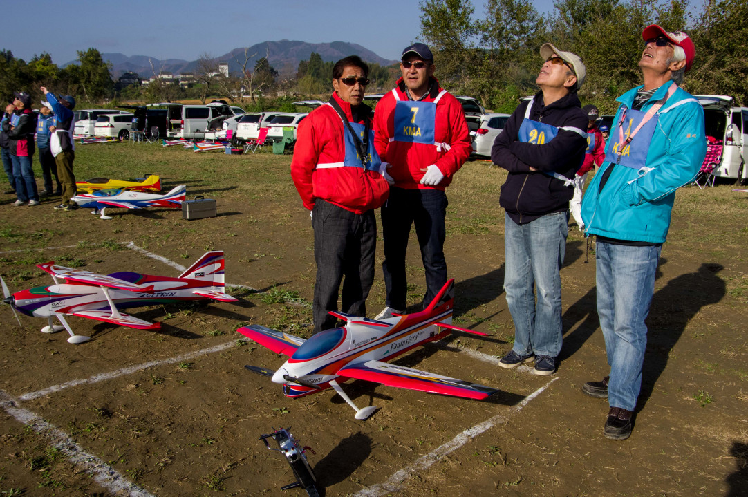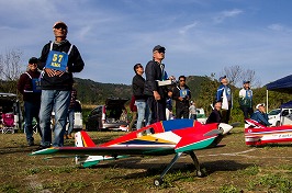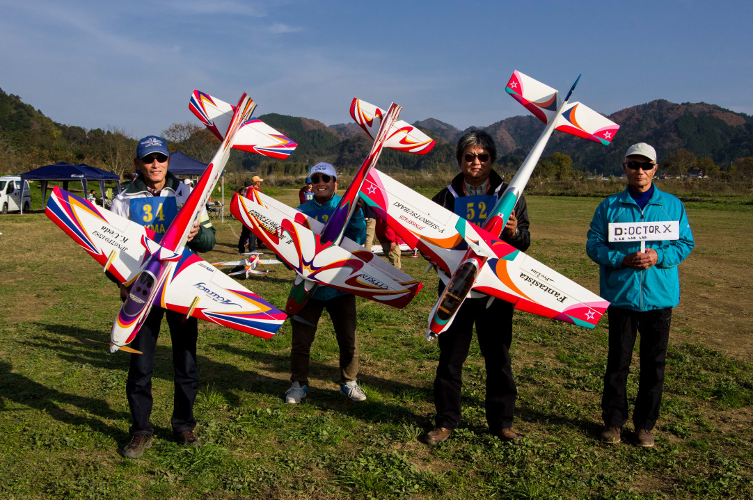 | 昨年は飛行場の問題で、開催できなくて残念でした。今年は新飛行場でスタント大会がこけら落としの開催となると思っていたのですが、台風によるかん水で、車が入ると必ずスタックする状態となり、延期を余技なくされました。 その後の整備作業が多く、みなさんの力を借りて、飛行場として使えるところまで、何とか来ました。 でも怪我の功名で、参加者が増えたことは台風に感謝しないといけないのかな。 午前中はP-19の演技による戦いです。21名の参加で、午前中で終了できる精一杯の人数です。 他にも参加の打診を頂いたのですが、お断りして申し訳ありませんでした。 ここは有数の雲海のメッカで、朝からかなり霧が濃い状態です。これほど濃いのは初めてでした。 早く晴れてくれないかとやきもきしていました。でも、9時ごろには晴れ始め、フライトできるレベルになりました。 目慣らし飛行は太陽がセンターにあり、ほぼ水平飛行の高度です。 初夏から飛行場の整備に何度も訪れていますが、今回ほど、雲ひとつない空に、強い太陽を見たこともありませんでした。 でも流鏑馬を使って競技の開始です。栄えあるトップバッターは松原選手でした。昨年、日本選手権へ初出場されています。 しかし、太陽に四苦八苦され、本来の実力が出ていなかったようなフライトでした。 結果を見ると、フライト順による運不運があったかもしれませんね。 また飛行場によっては同じ方角で飛ばされている方もおられますし、流鏑馬を使った練習をしている方もおられます。 ここでの大会がメインとなるこれから、克服していただきたいと思います。 ジャッジは上田さん、中田さんの2名で、2人合計が得点です。 結果は優勝:松田選手、準優勝:桑田選手、三位:松宮選手でした。 |