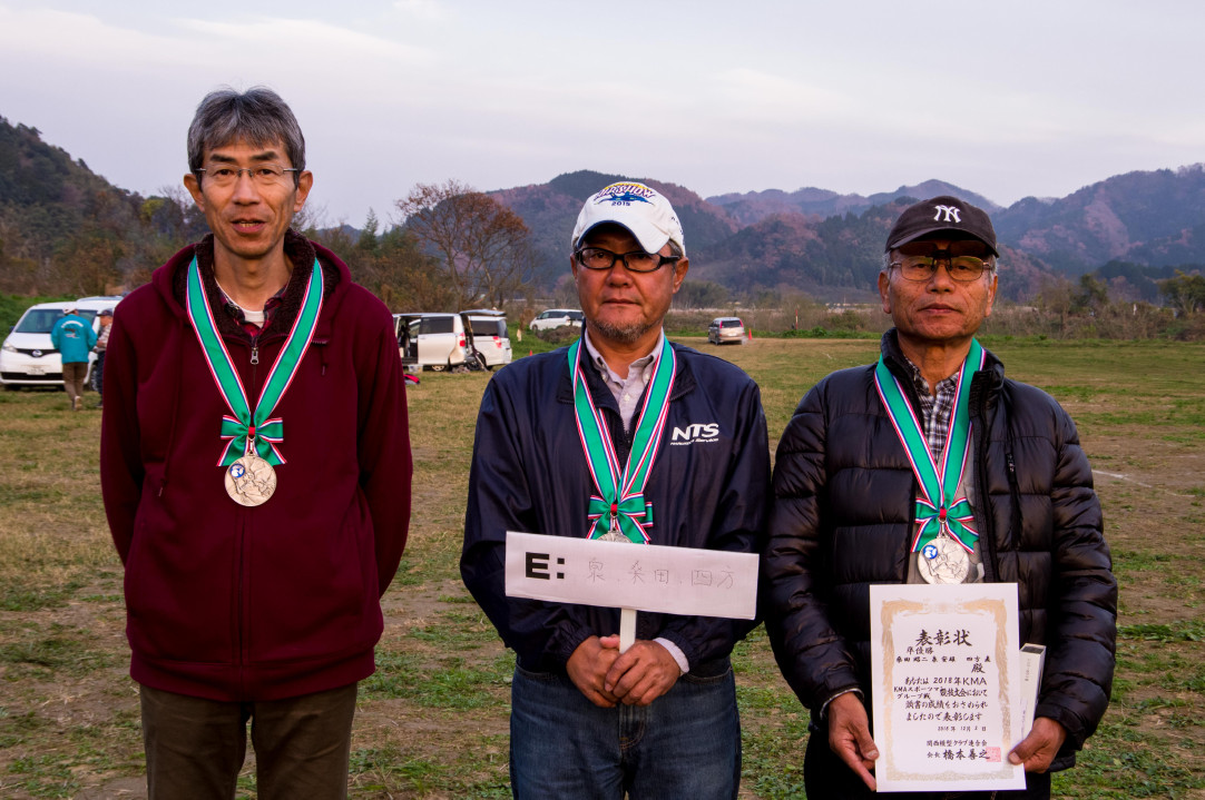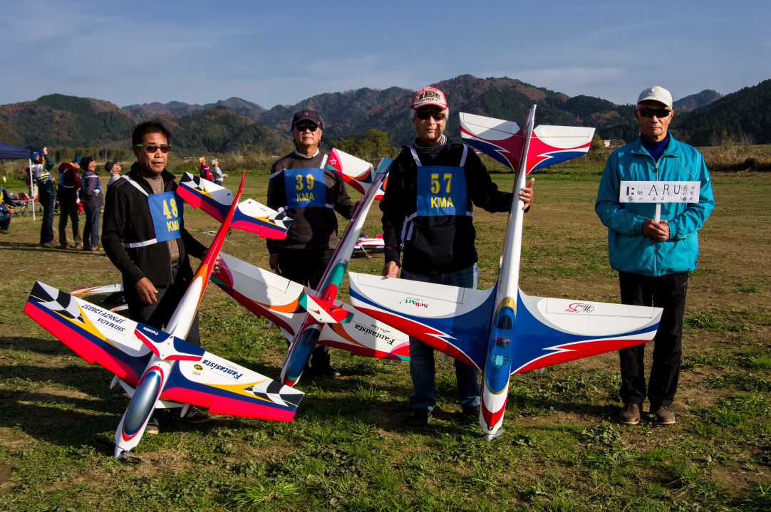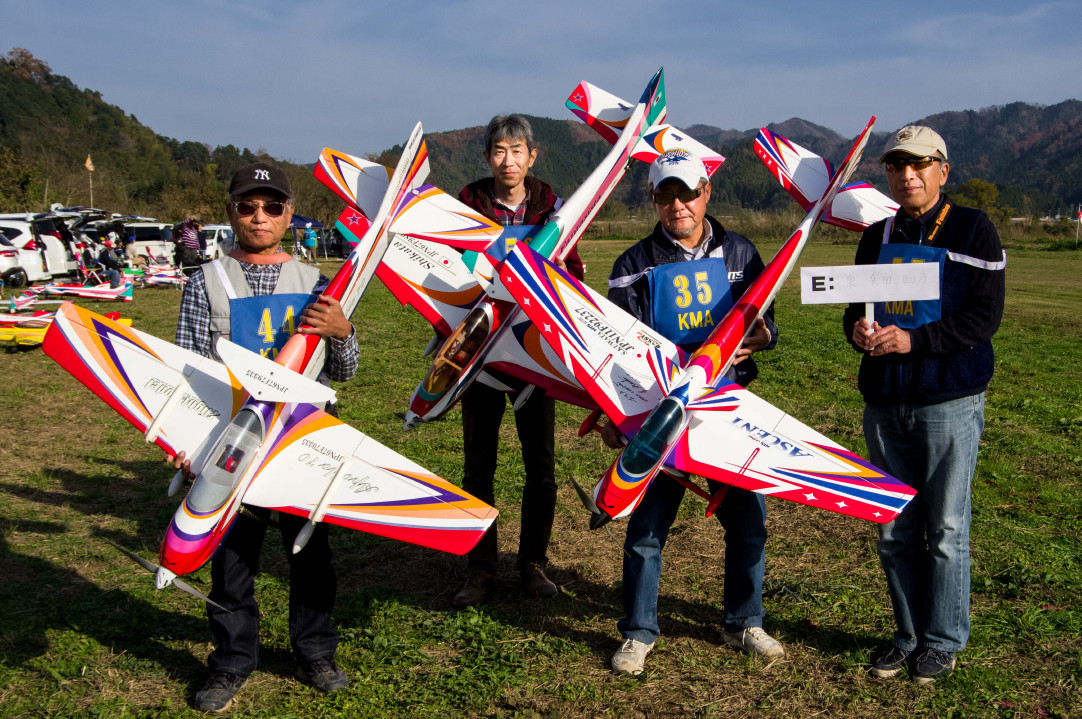 | 午後は演技をスポーツマンとして、3人のグループ戦を行いました。 今年初めての競技内容です。受付時に抽選を行い、3人のグループを決めます。その3人合計で、競うというものです。 これまでの経歴からハンディを設けて、日本選手権出場の方にも普通の人になって頂きました。 得点結果を見ますと、思惑通りの得点になっていたように思います。 加えて、6セル使用者には−5%のハンディを与えて、できるだけパワーに頼らないフライトを期待しました。 6セル使用者は7名/27名と、予想よりかなり少なかったですね。ハンディになるので、5セルに設定しなおした方が多かったようです。フライトを見る限り、5セルで十分なパワーを得ているようでした。 参加者は27名で9チームできました。皆さんそれぞれチームに名前をつけて頂きました。いろんな名前があり、写真をご覧ください。 優勝はD:OCTOR Xチーム(Dr上田、Dr白椿、Dr森本)でした。準優勝はE:泉・桑田・四方チームでした。名前が欲しかった。3位はI:GA ARU 愛がある(島田、松宮、藤岡)チームでした。 今回、看板がおしゃれだったのが、4位に入ったB:FuNKy(椢原、中村、福永)のチームファンキーでした。ぜひ写真を見てやってくださいね。 1位から9位までで、合計点で50点差(2人ほど多くの演技を間違われたのを除く)くらいでした。 これではどこのチームが勝ってもおかしくない状況と思われます。これは狙い通りでした。 最後に、イコマホビーさん、カシオペアさんから協賛をいただきました。ありがとうございました。ジャンケンによる争奪戦もすごかったですね。 近隣のクラブからも見学に来られている方々がいました。スタント大会は始めてですと。次回にはぜひ出場して頂きたいものです。 今回運営にあたり、お手伝いいただきました山原さん、藤本さん、中村さん、加藤さん、審査員の上田さん、中田さんには御礼申し上げます。 KMA RC曲技委員会 神戸祥明 |