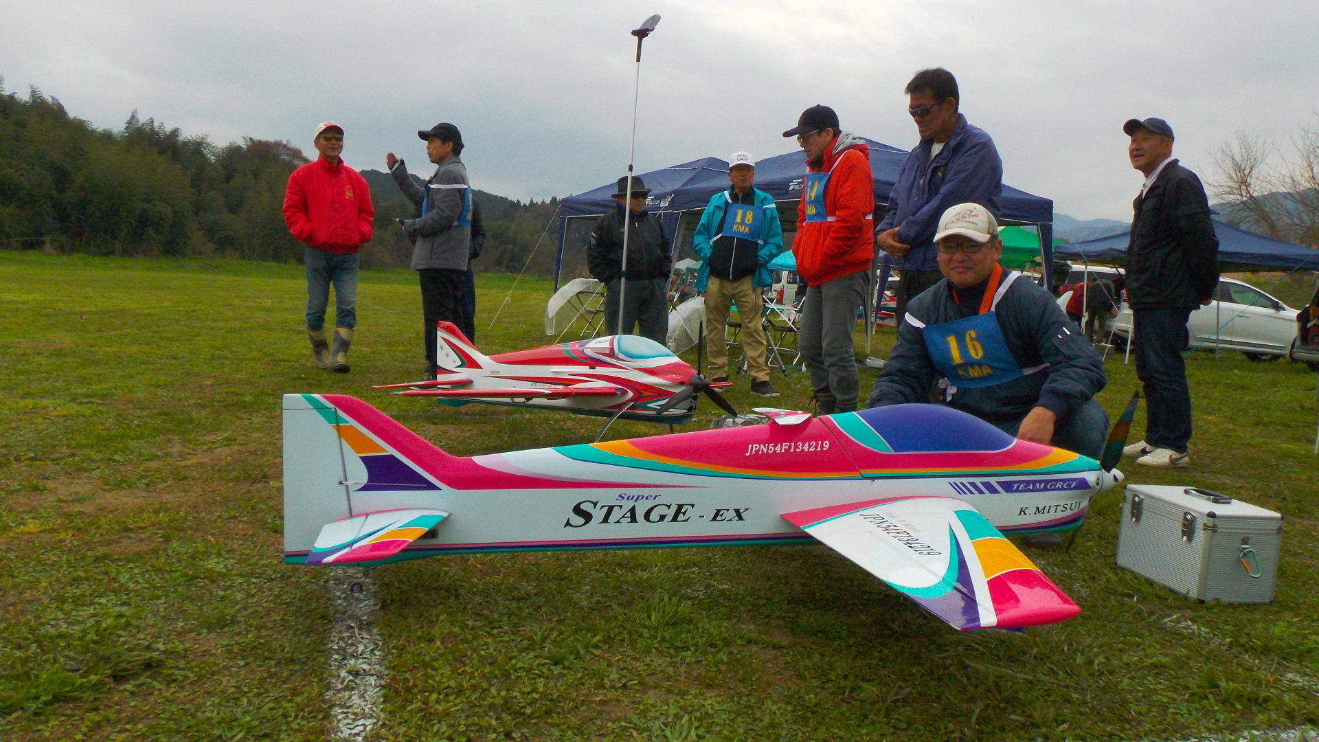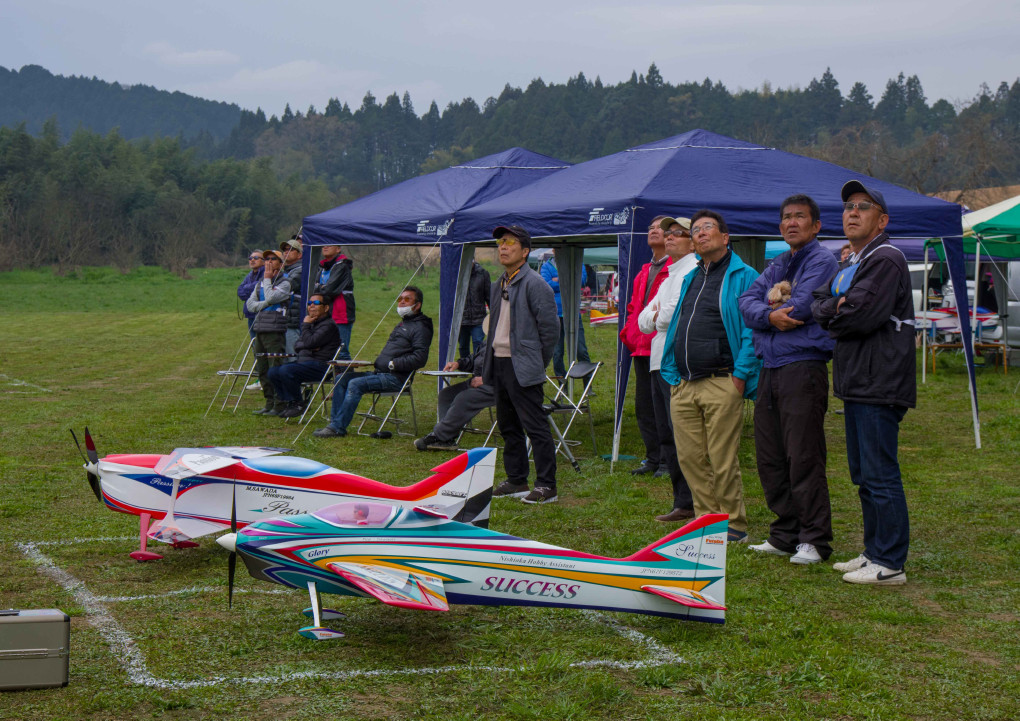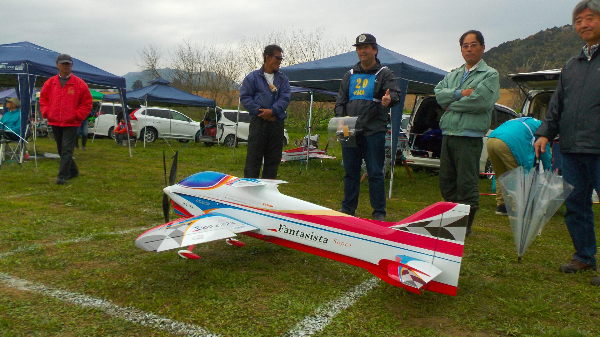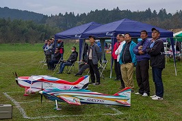 | 昨年6月に開港してから5か月は洪水の影響で使用できず、11月中にやっと使えるようになりましたが、開催競技会は3回でした。今年はこの大会が初めてとなり、これから、どんどんと使われていくと思います。滑走路も緑に覆われ始め、整備が大変なるなと思いながら、楽しくもあり、うれしい悲鳴ですね。 今年もたくさんの方々に参加していただきました。検定会へ23名、KMA曲技大会へ28名のエントリーをいただきました。感謝感謝です。土曜日は快晴、春の陽気でなんと15名の方が練習に来られました。これほどの方が来られたのは初めてでした。やはり飛行場がよくなると使っていただけるんだと実感しました。心配は日曜日の天気でした。予報では朝から雨が降り、風も強いと。何とか検定会だけでも成立させたいと願うばかりでした。日曜日の朝は空は明るく、予報が外れるのを願って、始めました。予報もどんどん変化しますので、雨雲レーダーを頼りに検定会を進めました。思いのほか、皆さん早く集まっていただいたので、受付を早め、8時10分ごろには一番手がフライトしました。風もなく、いい条件です。 スタートはスポーツマン受験の松本選手です。検定会は初めてで、かなり緊張されていましたね。途中、頭が真白になったのか演技をとばしそうになっていましたが、助手に助けられて、無事合格を手にされました。めでたし、めでたしです。次は羽根田さんの目慣らし飛行の後、エキスパートからの始まりです。羽根田選手の後ろは人だかりでしたね。 いい条件の中、澤田選手がスタートしましたが、運悪く、雲間から太陽が出て、まぶしかったようです。エキスパートからプレマスターズ、マスターズと進みましたが、ぽつりぽつりとは雨がありましたが、フライトには大きな支障はありませんでした。ところがスーパーマスターズの受験者がスタートすると急に降り始め、少しお気の毒でした。少し動揺があったのかフライトに切れがありませんでした。受験者22名(1名棄権)のうち、合格者15名となりました。 午後からはP19による曲技大会です。12時にスタートしたのですが、雨が降ってきて、5名が終了時点で、中断となりました。そのあと、やみ間をみながら、フライトを続けましたが、棄権される方が多くなってきました。結局、28名エントリー、来場が26名、出場者が14名という結果になりました。フライトされた選手のみなさんは雨中にも関わらず、果敢にフライトをしていただき、ありがとうございました。競技会は成立として、優勝は林田選手、準優勝は松原選手、第3位は古本選手となりました。おめでとうございます。上位入賞者の皆さんは、雨の中、さすがというフライトをされていましたね。 日曜日だけが天候が悪く、不運でした。大会運営に協力いただきました、審査員の上田ジャッジ、坂本ジャッジ、松田ジャッジ、中田ジャッジ、羽根田ジャッジ、および、集計、時間管理、進行に山原さん、山際さん、加藤さん、中村さんには御礼申し上げます。 【競技結果はこちらからご覧下さい】 (文と写真:KMA RC曲技委員長 神戸 祥明) |