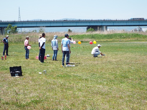 ![]() 風船割 中央1位中林氏、右2位森氏、左3位南氏 |