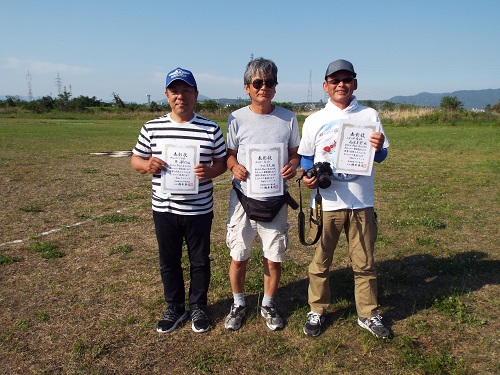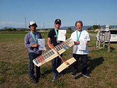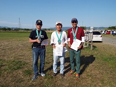 ![]() F2Bオープン中央1位能米氏、右2位末松氏、左3位比気氏 |