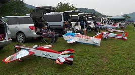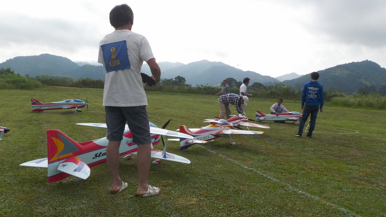 | 今年は24名のエントリーをいただきました。今年から福知山鬼の里模型飛行場で開催です。昨年6月に開港をしましたが、すぐの大雨や台風で、進入道路が破壊され、おまけに滑走路に200oも泥が溜まり、2か月以上も滑走路へ車が進入できない状態になりましたが、KMAに協力をいただける皆様のおかげで、整備して運用を始めれたのが10月末でした。感謝感謝ですね。 前日の天気予報が悪く、練習に来られた方は少なかったですね。でも来られた方々には飛行場の整備をお手伝いいただき、ありがとうございました。予定よりきれいに、早く終了できました。 いよいよ大会が始まります。天気予報は晴れで風も弱い好条件とのこと。朝から機体検査(重量、大きさ、保険番号、識別番号、騒音、フェールセーフ)が行われ、9時から羽根田さんの目慣らし飛行に続いて競技が開始されました。1日の土曜日には2ラウンド、日曜日には1ラウンドの予定です。得点の一番悪いラウンド捨て、2つのラウンドの合計点で争われます。素点は4名ジャッジの演技ごとの上下カットとし、ラウンド毎に上位半数の平均値を1000点とする千分率で得点が決まります。2ラウンド目の夕方に飛行場独特の嫌な風になり、その時にフライトされた方は少し、不運でしたね。でもこれも実力のうちです。翌日の条件は予報に反して、ベタ凪、空気も少し重い感じです。絶好のフライト条件で、高得点が期待されます。前日の夕方に不運に見舞われた方々はここで挽回でした。第一ラウンドは坂本選手がトップ、林田選手、山崎選手と続きます。第二ラウンドは林田選手がトップをとり、坂本選手、山崎選手と続きます。この3名はほぼ予選通過を手中にしていました。4番目が熾烈でした。東選手、松原選手、桝田選手が僅差でほぼ横並びでした。ここで一波乱です。松原選手がご都合により、第三ラウンドを棄権することになり、東選手と桝田選手の得点が、順位を決めます。いい条件でのフライトで、お二人とも得点を伸ばし、結果は一位:坂本選手、二位:林田選手、三位:山崎選手、四位:東選手となりました。東選手は初出場を獲得したわけです。補欠は松田選手、桑田選手となりました。皆さん、本選では頑張ってきてください。健闘を祈ります。 オールジャパンは松原選手、桑田選手、澤田選手、森本選手、奥選手が選ばれました。 暑い中、ジャッジを務めていただきました、奥村ジャッジ、上田ジャッジ、中田ジャッジ、神戸ジャッジ、お疲れ様でした。また大会の運営に協力をいただきました、山原さん、藤本さん、加藤さん、中村さん、羽根田さんにはこの場を借りて、御礼申し上げます。 また、GoModelの松田様から整備にと20000円の寄付をいただきまして、ありがとうございます。 今回は予定より多くのエントリーをいただきましたので、費用の残りは飛行場の整備に活用させていただきます。 当日の成績表 (文と写真:KMA RC曲技委員長 神戸 祥明) |