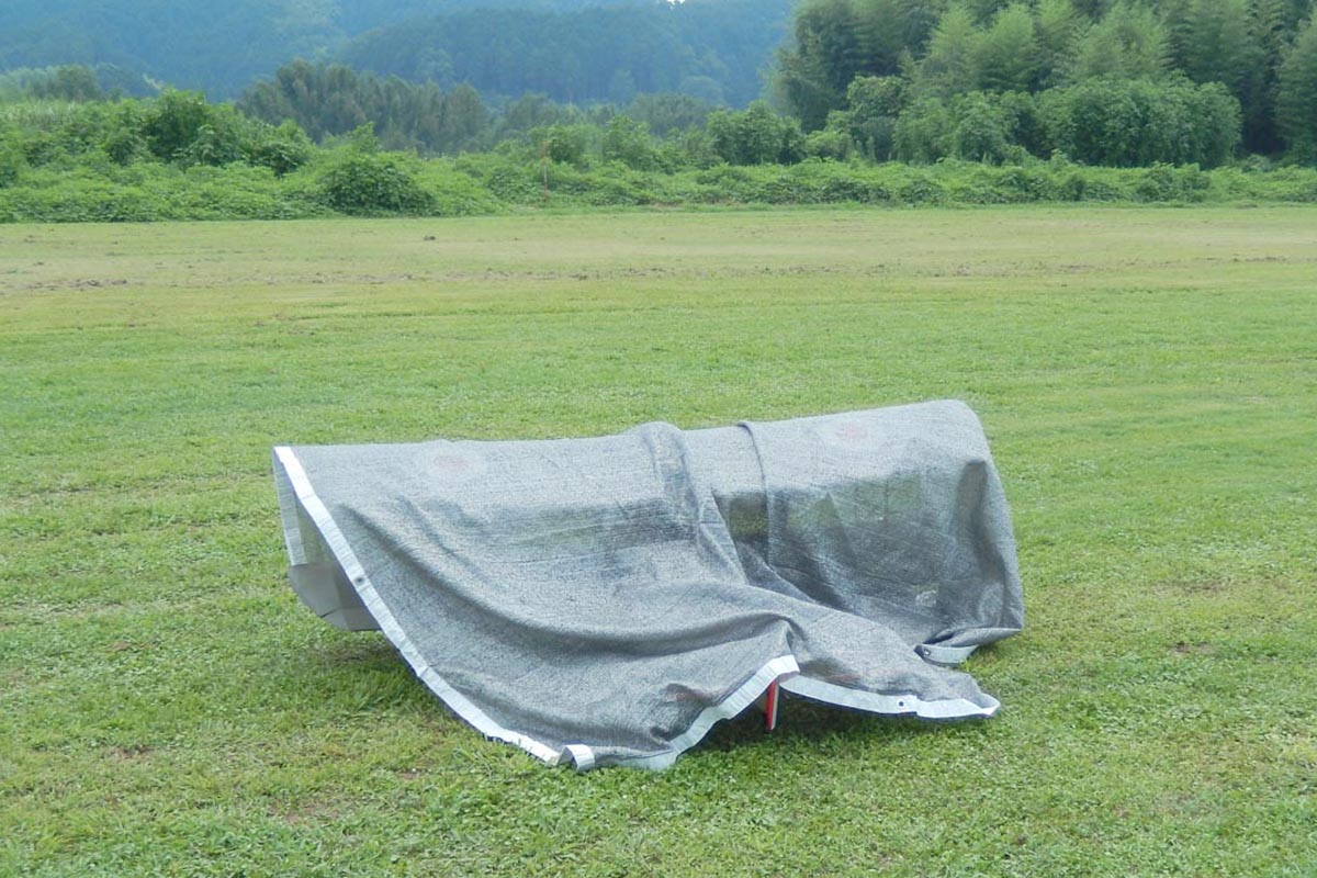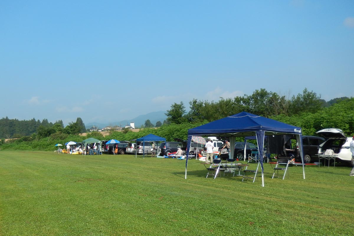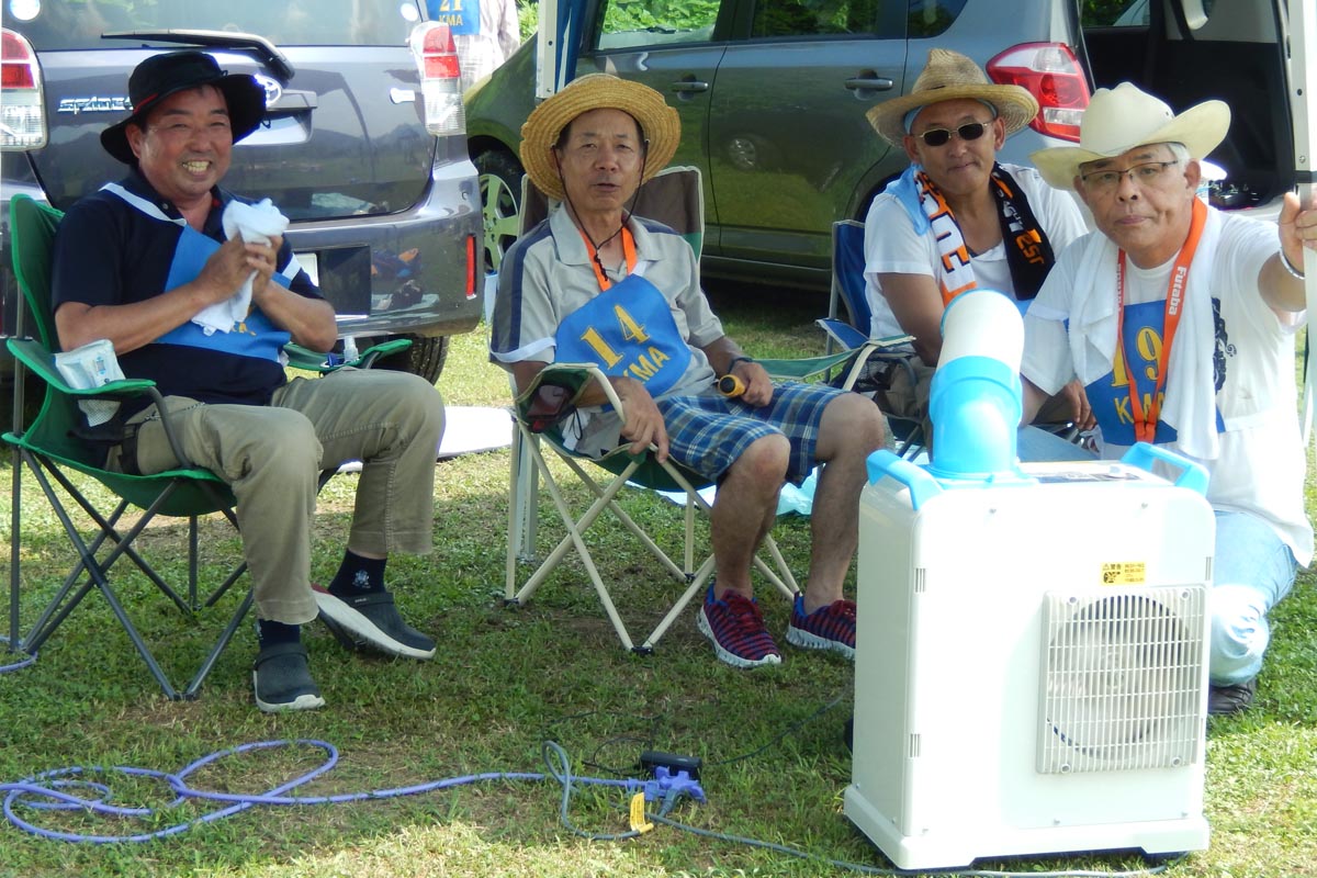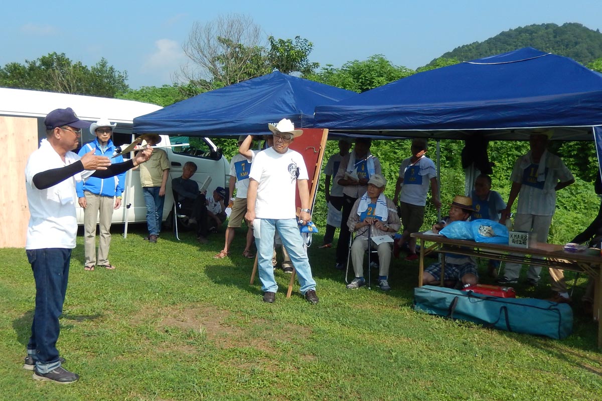 ![]() 朝からあまりの暑さに、開会式はテントの中で |