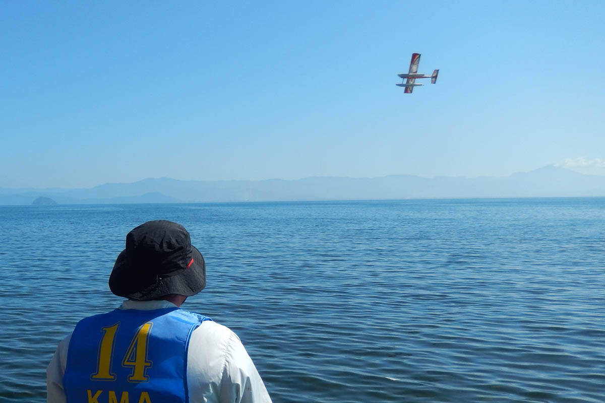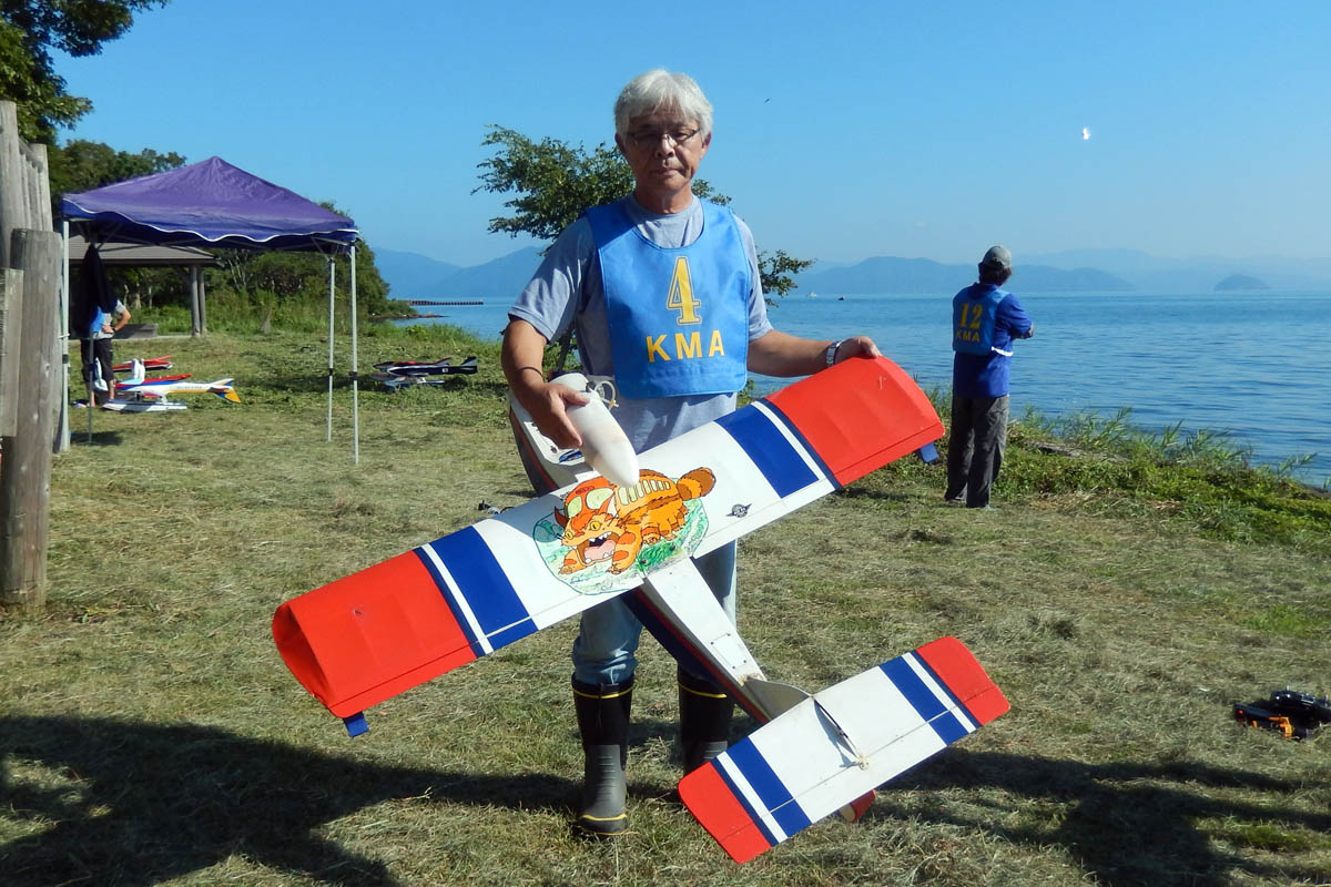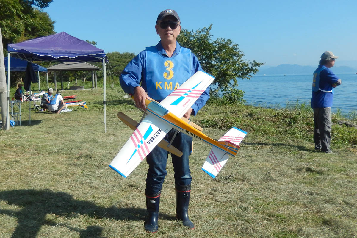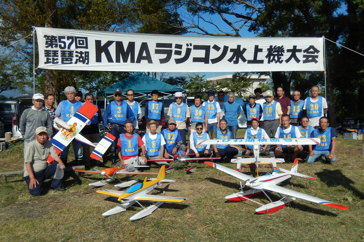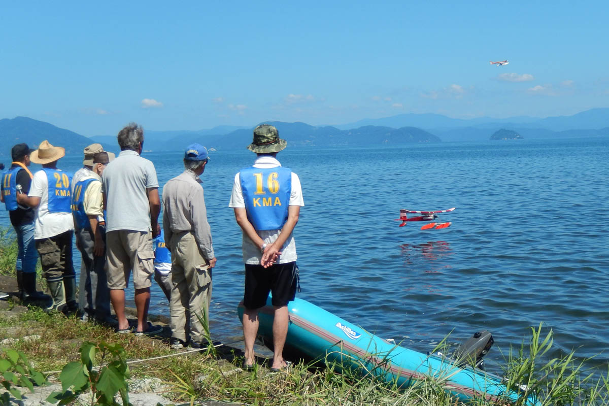 | 第57回目KMA琵琶湖水上機大会が、9月15日に滋賀県高島市の琵琶湖西岸で開催されました。 時節柄、台風などが心配されましたが、当日は朝から快晴、微風、湖面はさざ波という、水上機にとっては最高のコンディションに恵まれました。 ひどい天候だった春の大会とは大違いです。 秋の大会は、持ち時間の中で自由に飛行を楽しむという、フライイン形式で行います。 午前9時からの飛行は好条件にも恵まれてスムースに進行、午後2時までに皆さん2ラウンドのフライトを堪能していただくことができました。 全フライトの終了後、今年はKMA70周年と言うことで特別にメダルと賞状の贈呈を行いました。 KMA70周年特別賞 金賞:田井康郎 銀賞:芝山峰治 銅賞:結城彰弘 その後はいつもどおり、協賛各社様からいただいた景品の抽選会やオークションを行い、お開きとさせて頂きました。 最後になりましたが、参加いただきました選手の皆さんはもとより、前日から会場周辺の草刈り、通路に伸びた枝の伐採など整備いただきました有志のかたがた、運営にご協力頂きましたKMA委員並びに関係者の皆さんに心よりお礼を申し上げます。 今回御協賛頂きました会社様は以下の通りです(順不動、敬称略) 株式会社テトラ、カシオペア、双葉電子工業株式会社、三和電子機器株式会社、株式会社OK模型、 有限会社エアクラフト、株式会社斎藤製作所、ダイモ株式会社、株式会社マルク この場をお借りしまして厚くお礼を申し上げます。 (文、写真:KMA 山本修造 参加データ作表:KMA橋本実) |