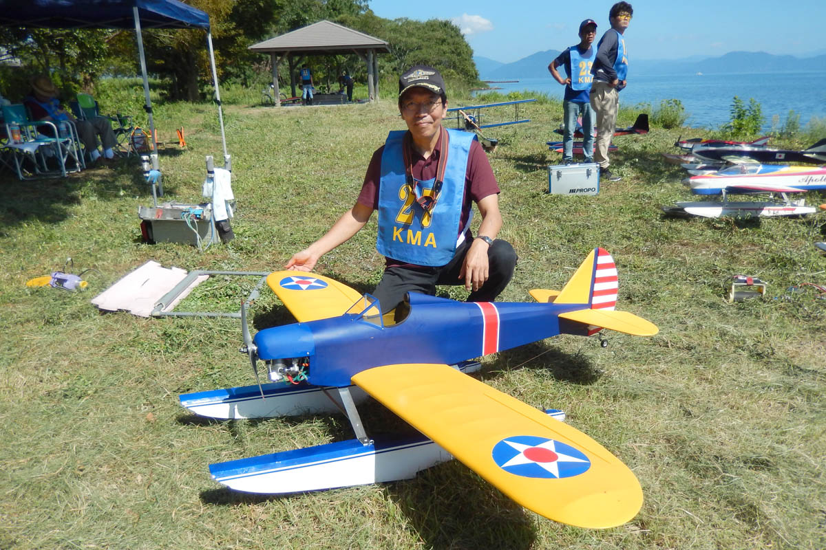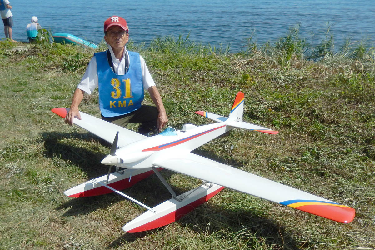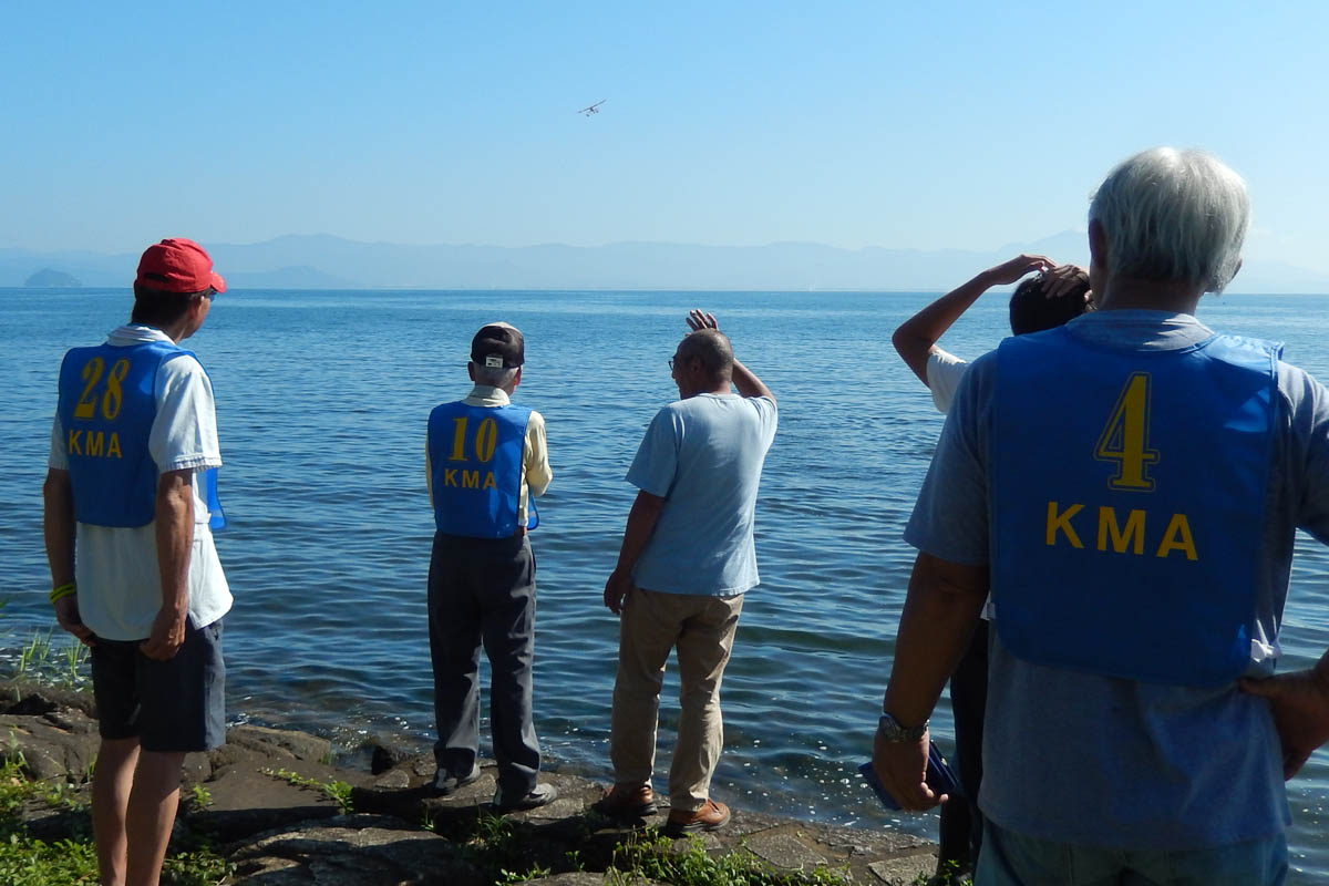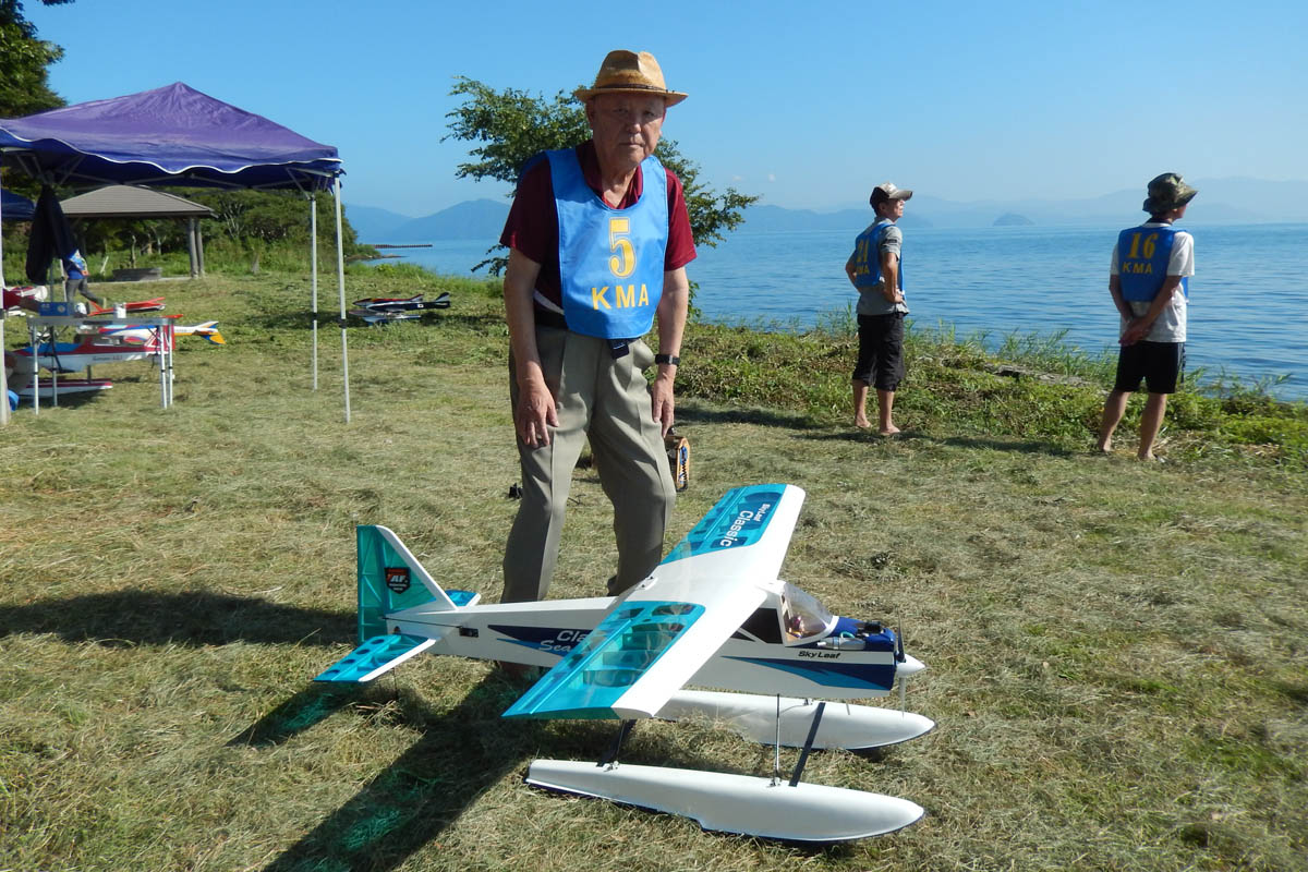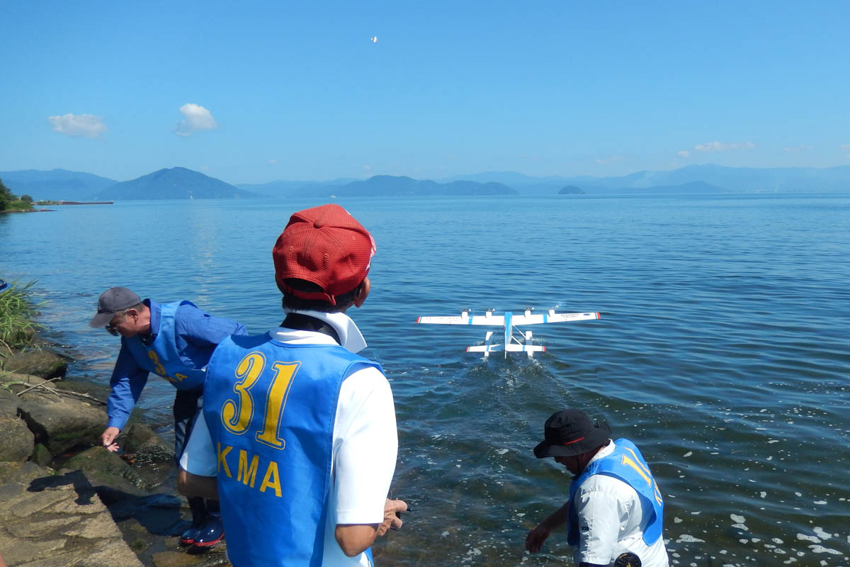 | 第57回目KMA琵琶湖水上機大会が、9月15日に滋賀県高島市の琵琶湖西岸で開催されました。 時節柄、台風などが心配されましたが、当日は朝から快晴、微風、湖面はさざ波という、水上機にとっては最高のコンディションに恵まれました。 ひどい天候だった春の大会とは大違いです。 秋の大会は、持ち時間の中で自由に飛行を楽しむという、フライイン形式で行います。 午前9時からの飛行は好条件にも恵まれてスムースに進行、午後2時までに皆さん2ラウンドのフライトを堪能していただくことができました。 全フライトの終了後、今年はKMA70周年と言うことで特別にメダルと賞状の贈呈を行いました。 KMA70周年特別賞 金賞:田井康郎 銀賞:芝山峰治 銅賞:結城彰弘 その後はいつもどおり、協賛各社様からいただいた景品の抽選会やオークションを行い、お開きとさせて頂きました。 最後になりましたが、参加いただきました選手の皆さんはもとより、前日から会場周辺の草刈り、通路に伸びた枝の伐採など整備いただきました有志のかたがた、運営にご協力頂きましたKMA委員並びに関係者の皆さんに心よりお礼を申し上げます。 今回御協賛頂きました会社様は以下の通りです(順不動、敬称略) 株式会社テトラ、カシオペア、双葉電子工業株式会社、三和電子機器株式会社、株式会社OK模型、 有限会社エアクラフト、株式会社斎藤製作所、ダイモ株式会社、株式会社マルク この場をお借りしまして厚くお礼を申し上げます。 (文、写真:KMA 山本修造 参加データ作表:KMA橋本実) |