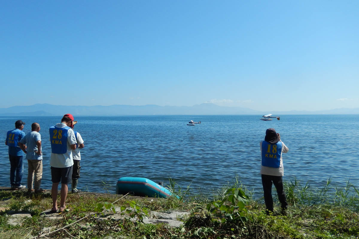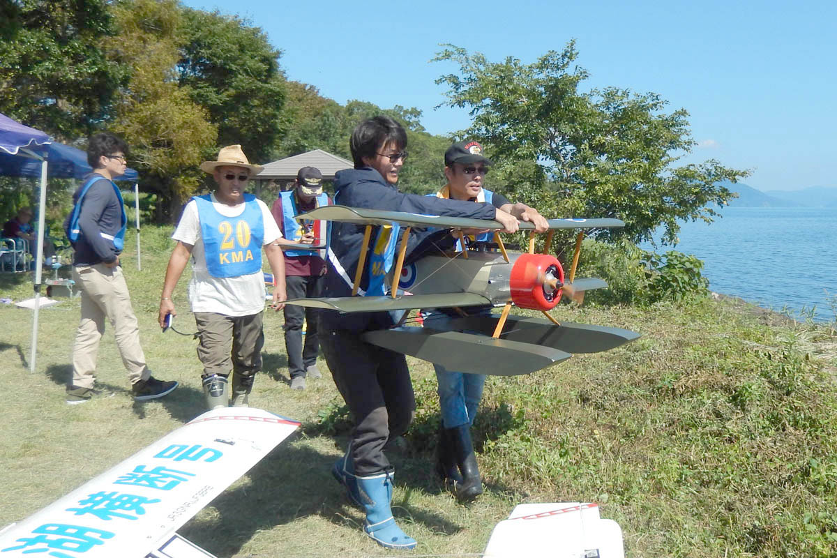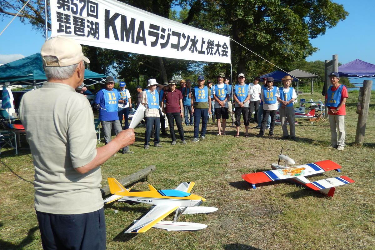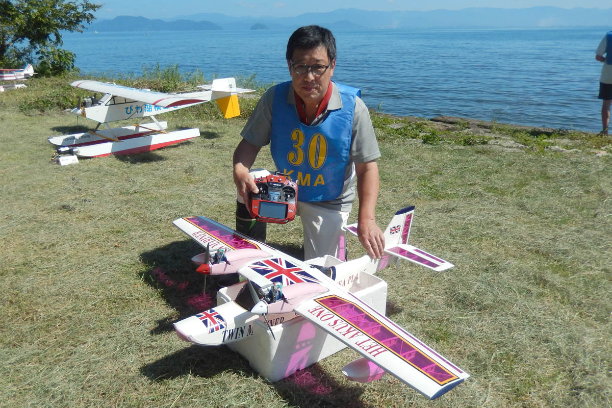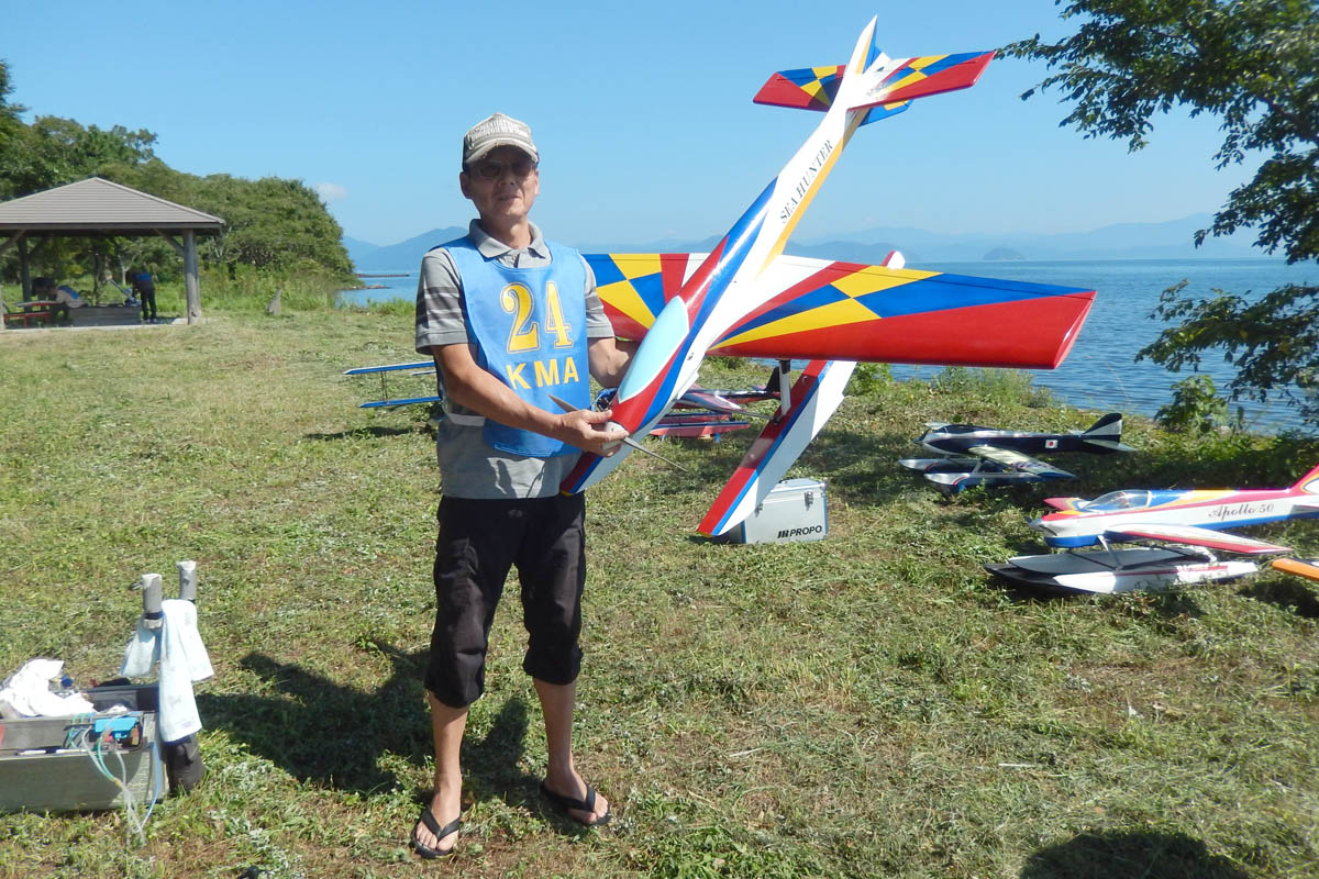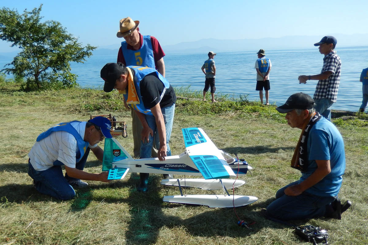 | 第57回目KMA琵琶湖水上機大会が、9月15日に滋賀県高島市の琵琶湖西岸で開催されました。 時節柄、台風などが心配されましたが、当日は朝から快晴、微風、湖面はさざ波という、水上機にとっては最高のコンディションに恵まれました。 ひどい天候だった春の大会とは大違いです。 秋の大会は、持ち時間の中で自由に飛行を楽しむという、フライイン形式で行います。 午前9時からの飛行は好条件にも恵まれてスムースに進行、午後2時までに皆さん2ラウンドのフライトを堪能していただくことができました。 全フライトの終了後、今年はKMA70周年と言うことで特別にメダルと賞状の贈呈を行いました。 KMA70周年特別賞 金賞:田井康郎 銀賞:芝山峰治 銅賞:結城彰弘 その後はいつもどおり、協賛各社様からいただいた景品の抽選会やオークションを行い、お開きとさせて頂きました。 最後になりましたが、参加いただきました選手の皆さんはもとより、前日から会場周辺の草刈り、通路に伸びた枝の伐採など整備いただきました有志のかたがた、運営にご協力頂きましたKMA委員並びに関係者の皆さんに心よりお礼を申し上げます。 今回御協賛頂きました会社様は以下の通りです(順不動、敬称略) 株式会社テトラ、カシオペア、双葉電子工業株式会社、三和電子機器株式会社、株式会社OK模型、 有限会社エアクラフト、株式会社斎藤製作所、ダイモ株式会社、株式会社マルク この場をお借りしまして厚くお礼を申し上げます。 (文、写真:KMA 山本修造 参加データ作表:KMA橋本実) |