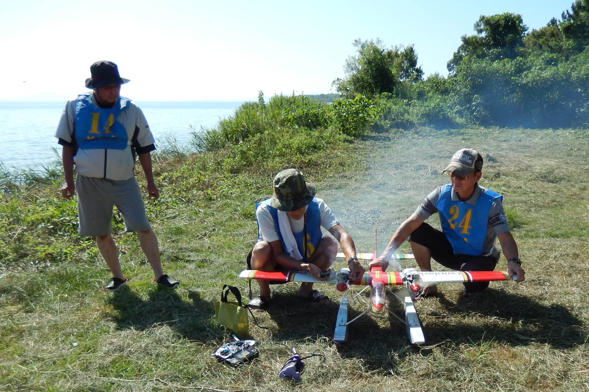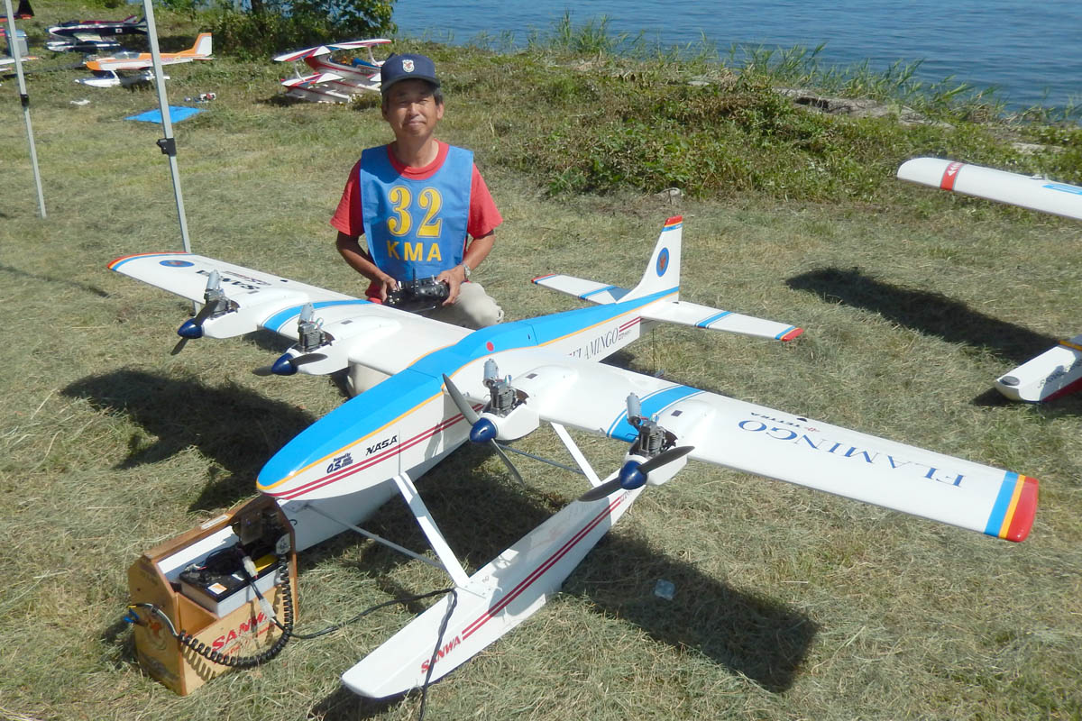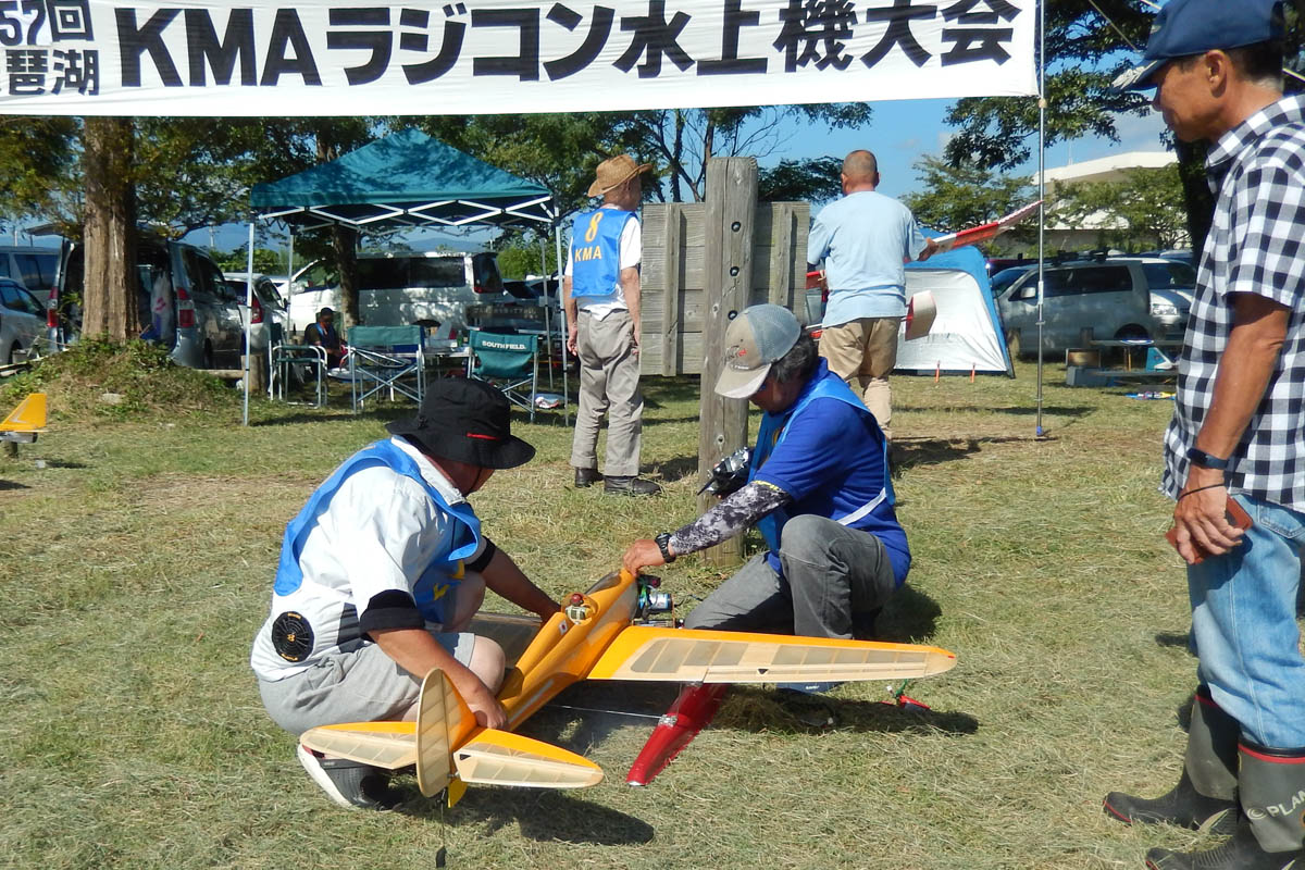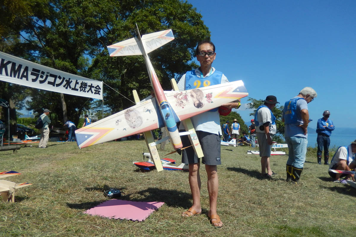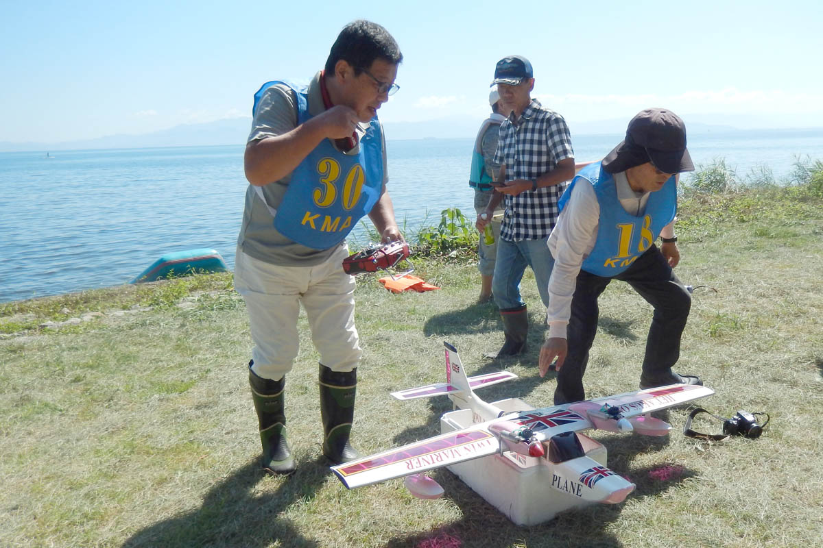 | 第57回目KMA琵琶湖水上機大会が、9月15日に滋賀県高島市の琵琶湖西岸で開催されました。 時節柄、台風などが心配されましたが、当日は朝から快晴、微風、湖面はさざ波という、水上機にとっては最高のコンディションに恵まれました。 ひどい天候だった春の大会とは大違いです。 秋の大会は、持ち時間の中で自由に飛行を楽しむという、フライイン形式で行います。 午前9時からの飛行は好条件にも恵まれてスムースに進行、午後2時までに皆さん2ラウンドのフライトを堪能していただくことができました。 全フライトの終了後、今年はKMA70周年と言うことで特別にメダルと賞状の贈呈を行いました。 KMA70周年特別賞 金賞:田井康郎 銀賞:芝山峰治 銅賞:結城彰弘 その後はいつもどおり、協賛各社様からいただいた景品の抽選会やオークションを行い、お開きとさせて頂きました。 最後になりましたが、参加いただきました選手の皆さんはもとより、前日から会場周辺の草刈り、通路に伸びた枝の伐採など整備いただきました有志のかたがた、運営にご協力頂きましたKMA委員並びに関係者の皆さんに心よりお礼を申し上げます。 今回御協賛頂きました会社様は以下の通りです(順不動、敬称略) 株式会社テトラ、カシオペア、双葉電子工業株式会社、三和電子機器株式会社、株式会社OK模型、 有限会社エアクラフト、株式会社斎藤製作所、ダイモ株式会社、株式会社マルク この場をお借りしまして厚くお礼を申し上げます。 (文、写真:KMA 山本修造 参加データ作表:KMA橋本実) |