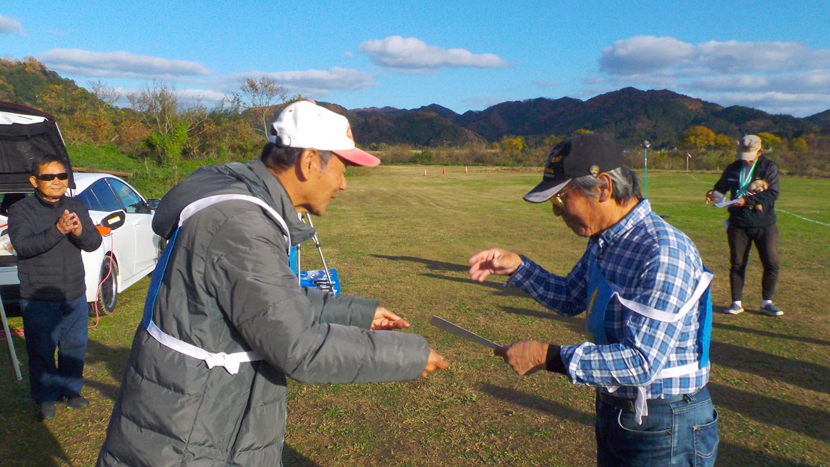 | KMA福知山鬼の里模型飛行場における今年度最後の競技会となる予定であったSPスポーツマンチーム戦大会が中止になったことで、この大会が当地での最後の競技となりました。 参加者は14名で、F3A/P19の演技を2ラウンド行い、良い方のラウンドで順位を競いました。 この飛行場は開場2年目となりましたが、この1年間の整備事業を通して素晴らしい模型飛行場となり、参加選手の皆さんは気持ちのよい飛行を満喫されたことと思います。 2ラウンド目が開始される前に、小川精機(株)の羽根田さんによる来年度からの演技、P21とF21の演技を披露していただきました。 来年早々に予定しています講習会に先立って、ミニ講習の機会を与えられたことは有意義であったと思います。 競技は、2ラウンド目に点数を伸ばした選手もあれば、下げた選手もあり、終日和気あいあいとした雰囲気の中で楽しく過ごされたと思います。 また、協賛各社からの毎回の賞品ご提供にも感謝いたします。 結果は優勝 松田仁清さん、準優勝 東弘文さん、そして3位 澤田勝さんが栄冠に輝きました。おめでとうございます。 最後になりましたが当日御協賛いただきました以下の企業、団体様にこの場をお借りしまて厚くお礼を申し上げます。 双葉電子機器株式会社 株式会社テトラ 株式会社OK模型 小川精機株式会社 トップモデル Go Model イコマホビー カシオペア (順不同) 【参加データはこちらからご覧下さい】 (文:KMA RC曲技委員 中村俊幸 写真:中村俊幸、桑田昭二) |