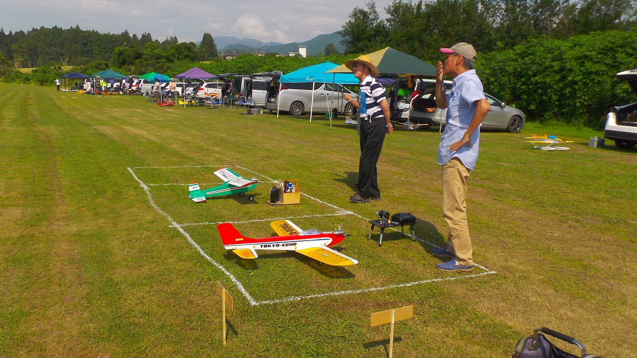 18日は、参加者は遠方からの移動や雨続きの練習不足もある事から、安全に楽しまれるように自由飛行調整の機会を設けました。