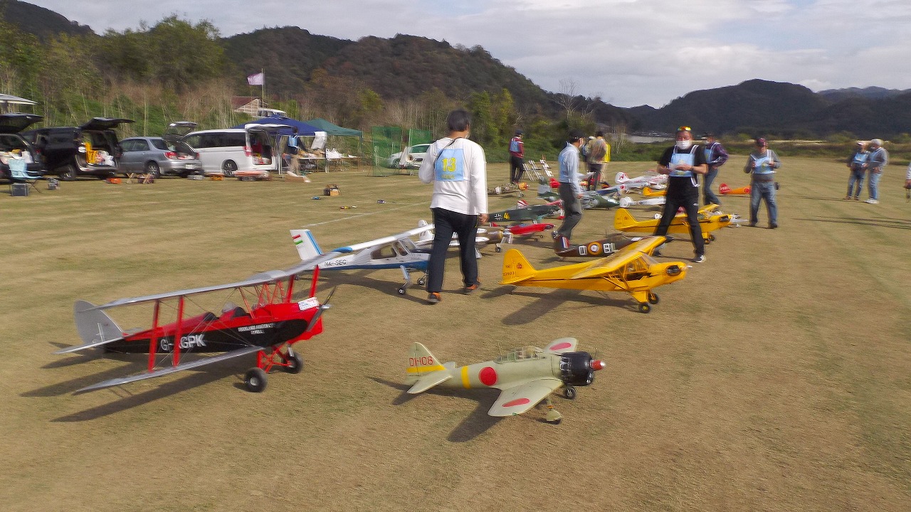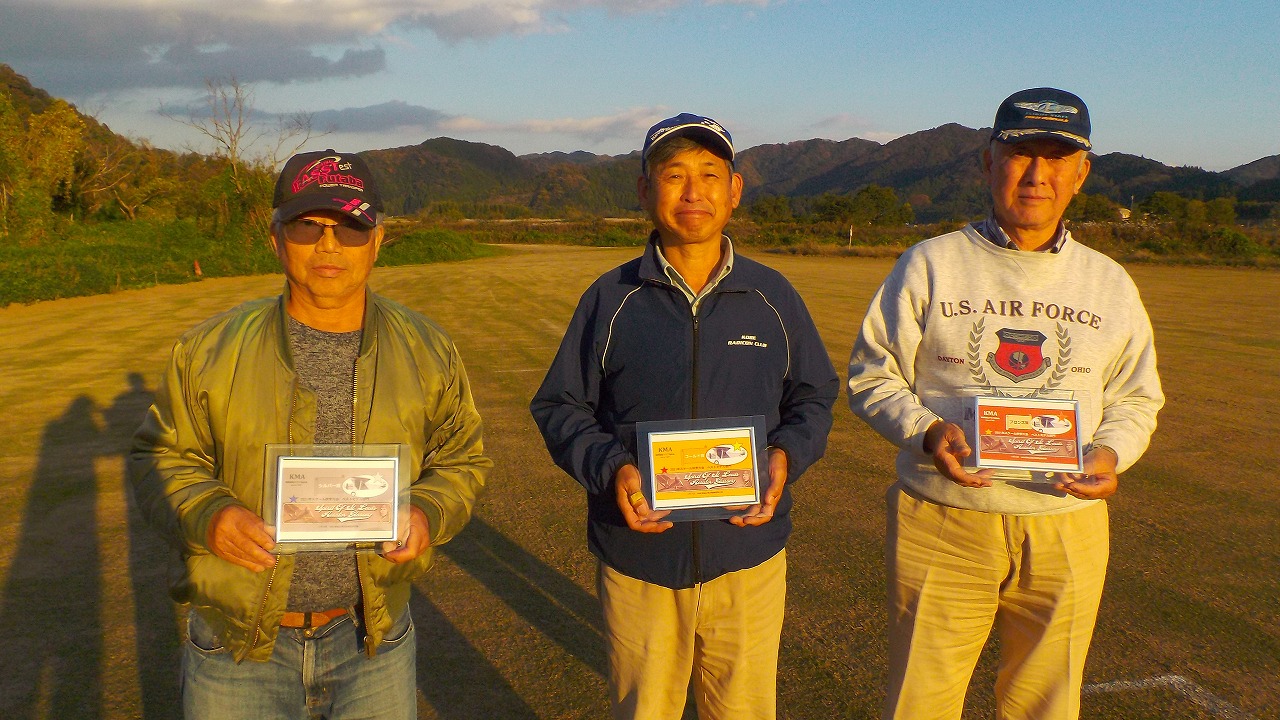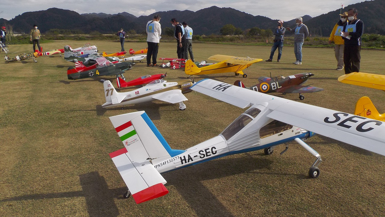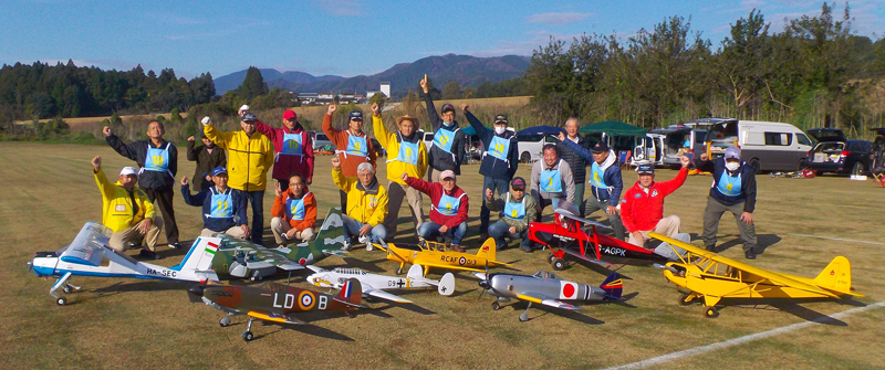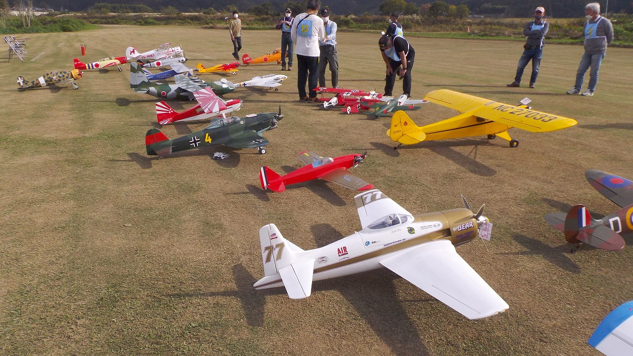| 全国のRC競技会はコロナ禍の影響を受けて中止に追いやられる中、最近の感染者減少の状況を受けて11月7日福知山鬼の里模型飛行場で開催することが出来ました。今回は参加者20名で自由飛行を楽しみ、その中の12名でフライト競技を開催しました。終日良い天気に恵まれましたが、この時期の太陽は終日飛行エリア正面を塞ぐために皆さんは苦労されたことだと思います。しかしながら参加者の皆さんのご協力によって事故もなく無事に楽しい大会を開催することが出来ましたことにお礼を申しあげます。昼休みには滑走路中央に参加機を並べて、恒例の人気コンテストも開催。これは見応えある光景で、たくさんの見学者も楽しんでいたようです。 フライト競技ではF4Hルールに従って2ラウンドを行い、どちらか良い点数によって順位を競いました。今回、飛行技術の向上を目指しての取り組みとして、少し厳しい採点基準で行われました。大会終了時には競技講評によって熱心な意見が交わされました。益々の技術向上につながることを願うばかりです。フライト部門では、1位に車田晴夫さん、2位に久保昭博さん、3位に三原良一さんが入賞。機体コンテスト部門では、金賞に芝山峰治さんのC130ハーキュリーズ、銀賞に安上幸志さんのDHタイガーモス、銅賞に伊藤隆紹さんのマッキC200サエッタが入賞しました。 競技終了後には、何やらUコンを楽しむ二人の姿が、笑顔が無邪気な中学生に見えるのが不思議なものです。 協賛メーカー RC・DEPOT/JR PROPO 南河内模型航空機 レポート KMAスケール委員 中村俊幸 |