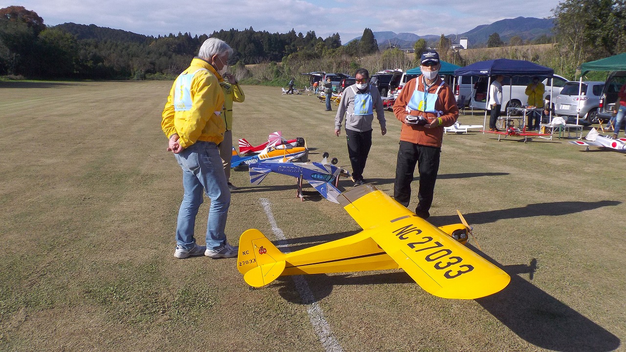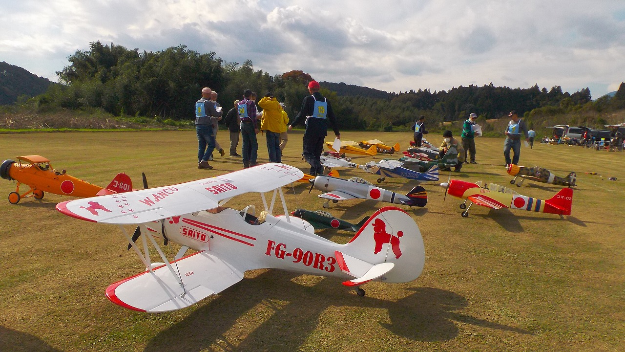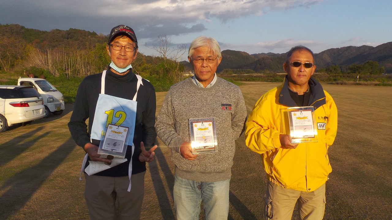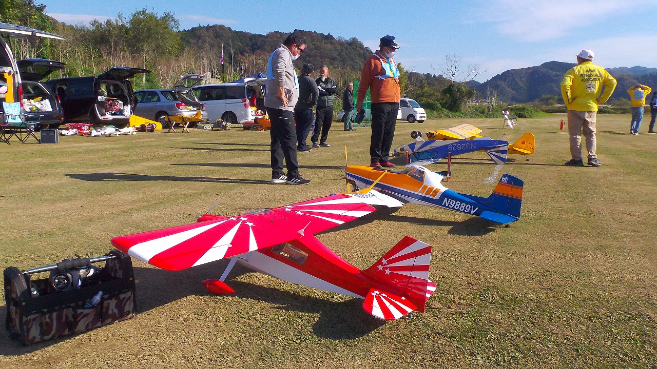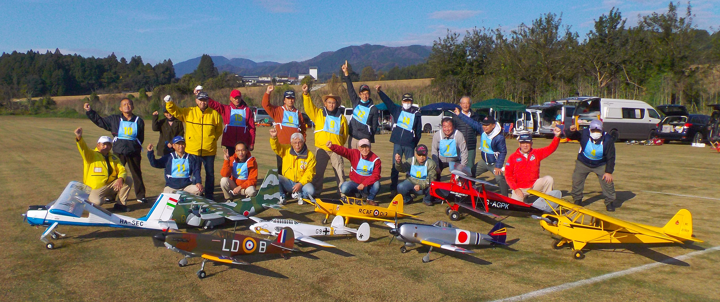 | 全国のRC競技会はコロナ禍の影響を受けて中止に追いやられる中、最近の感染者減少の状況を受けて11月7日福知山鬼の里模型飛行場で開催することが出来ました。今回は参加者20名で自由飛行を楽しみ、その中の12名でフライト競技を開催しました。終日良い天気に恵まれましたが、この時期の太陽は終日飛行エリア正面を塞ぐために皆さんは苦労されたことだと思います。しかしながら参加者の皆さんのご協力によって事故もなく無事に楽しい大会を開催することが出来ましたことにお礼を申しあげます。昼休みには滑走路中央に参加機を並べて、恒例の人気コンテストも開催。これは見応えある光景で、たくさんの見学者も楽しんでいたようです。 フライト競技ではF4Hルールに従って2ラウンドを行い、どちらか良い点数によって順位を競いました。今回、飛行技術の向上を目指しての取り組みとして、少し厳しい採点基準で行われました。大会終了時には競技講評によって熱心な意見が交わされました。益々の技術向上につながることを願うばかりです。フライト部門では、1位に車田晴夫さん、2位に久保昭博さん、3位に三原良一さんが入賞。機体コンテスト部門では、金賞に芝山峰治さんのC130ハーキュリーズ、銀賞に安上幸志さんのDHタイガーモス、銅賞に伊藤隆紹さんのマッキC200サエッタが入賞しました。 競技終了後には、何やらUコンを楽しむ二人の姿が、笑顔が無邪気な中学生に見えるのが不思議なものです。 協賛メーカー RC・DEPOT/JR PROPO 南河内模型航空機 レポート KMAスケール委員 中村俊幸 |