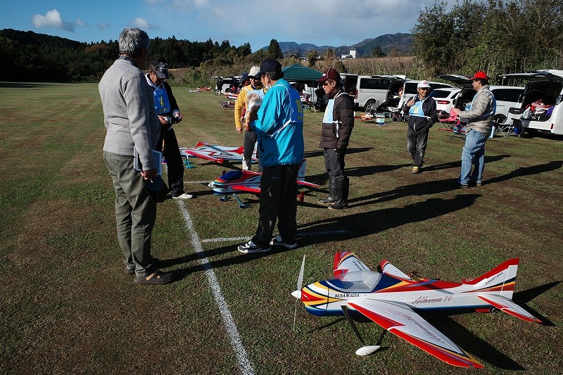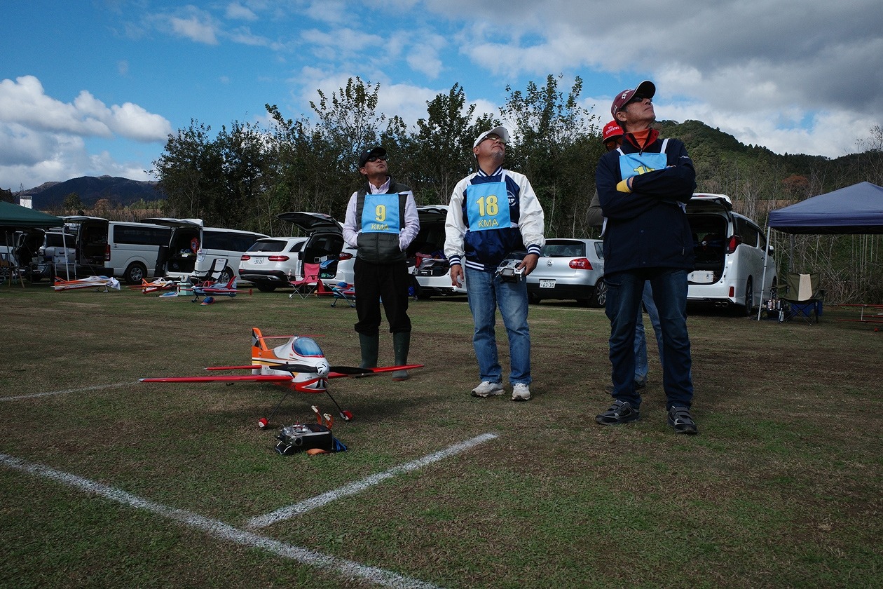 | 今年の最後になる大会です。日の入りも一年で一番早くなる時期ですから、できるだけ早く終了しないといけません。加えて南向きの飛行場で太陽が低くなりので、天気がいいと、かなりまぶしい条件でのフライトになります。眼鏡や流鏑馬の活用で皆さん頑張ってくれました。朝は予想通りの霧です。真上の方は晴れていたので、9時ごろには晴れるかなと。予想通り9時には目慣らし飛行を行いました。 今年は20名の参加で、例年の人数ですが、運営側としたら、25名くらいの参加が欲しいところです。また、来年の課題ですね。競技内容は午前中はF3A(P21)を行い、午後からはJRAのスポーツマン演技です。飛行技術の基本から応用までのトータルで競い合いました。F3Aでは2人ジャッジで1200点満点。スポーツマン演技ではジャッジ一人の満点が250点ですので、5人のジャッジとして、1250点満点と同等のウエイトとしました。狙いはスポーツマンでの逆転があれば面白いなあーと、委員長の企みでした。 スタートから終了まで、太陽の位置以外はほぼ同じ条件で、風も弱くていい条件でした。実力を発揮していただいたと思っています。結果、優勝は林田選手、準優勝は桑田選手、第三位が中村選手でした。林田選手は全ラウンドトップで完全優勝でした。P21では2番手が桝田選手、3番手が桑田選手でしたが、スポーツマン演技で桑田選手が逆転しました。中村選手はP21では10番手でしたが、スポーツマン演技で逆転して表彰台となりました。お見事でした。特に着陸は皆さんをうならせるだけのものがありました。企みが成功しました。 でも皆さん、基本となるスポーツマン演技が上手で、思ったより高得点になり、スポーツマン演技のウエイトが結果として高くなってしまいました。さて来年はどうするか?悩むところですね。皆さんP21を演技するわけだから、当たり前で、基本ができているということですね。 ジャッジの講評の中で、スポーツマン演技での着陸には苦いコメントが多かったですね。フライトのスムーズさや、等速性など70クラス所以の難しさがある中、桑田選手の飛びは評価されていました。また、調整が甘い機体が見受けられるとの指摘もありました。反省ですね。 大会の運営に協力をいただきました上田審査員、鈴木審査員、加藤審査員、羽根田審査員、林田審査員、並びに集計などを担当いただきました山原役員、藤本役員には御礼申し上げます。 文:KMA RC曲技委員長 神戸祥明 |