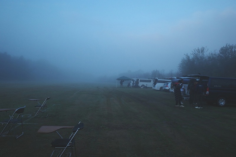 ![]() 大会の準備です。霧だー |