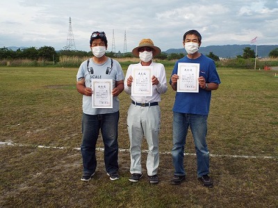 ![]() 超小型第2種スタント 左より 2位 谷村孝巳氏、1位大塚浩司氏、3位 杉山芳正氏 |