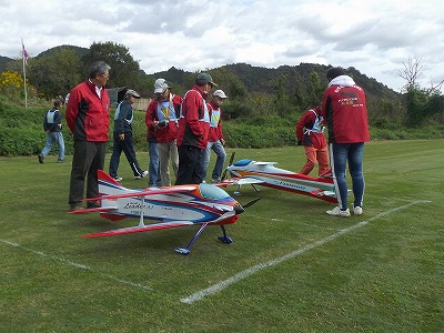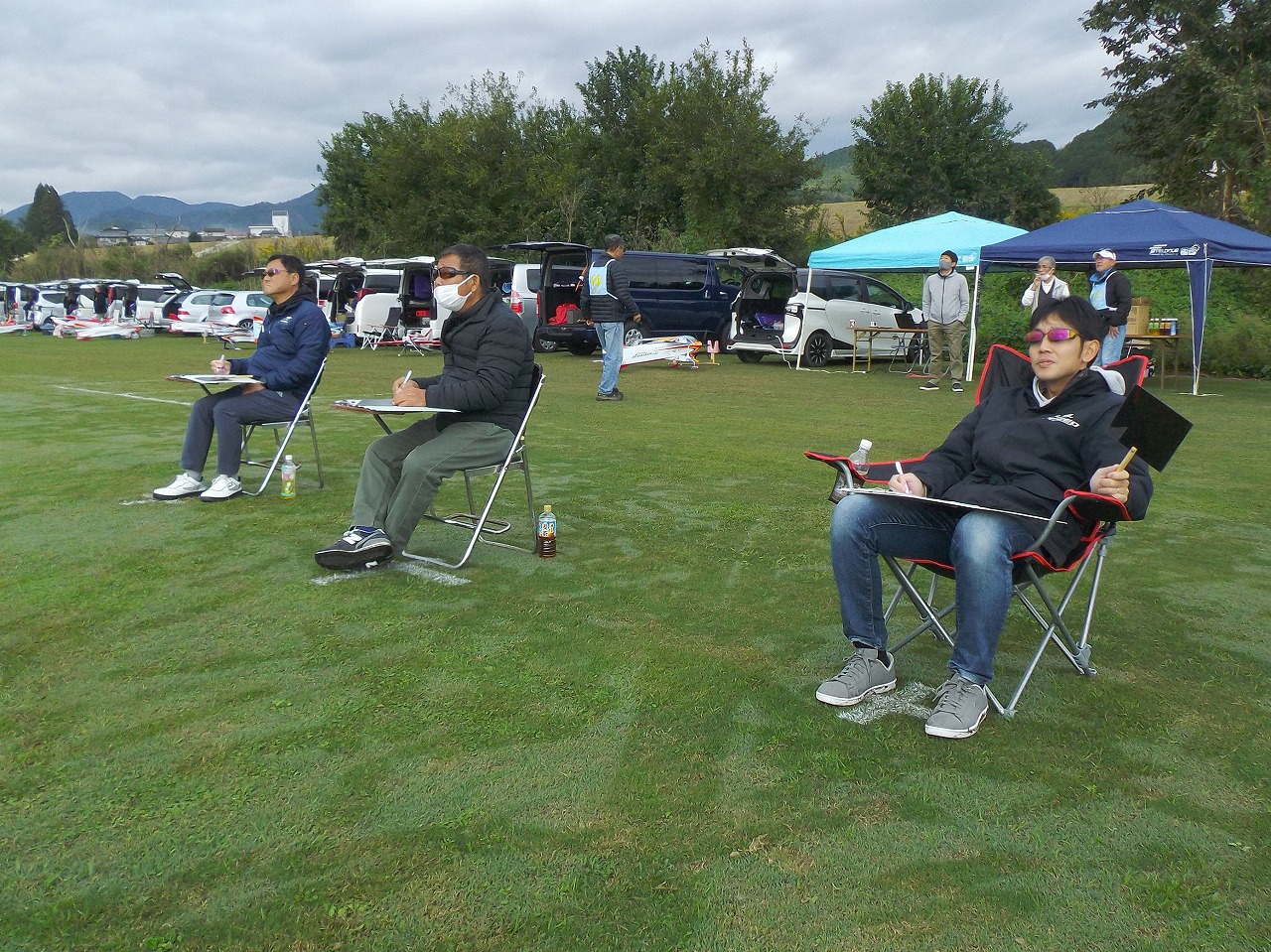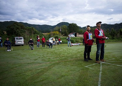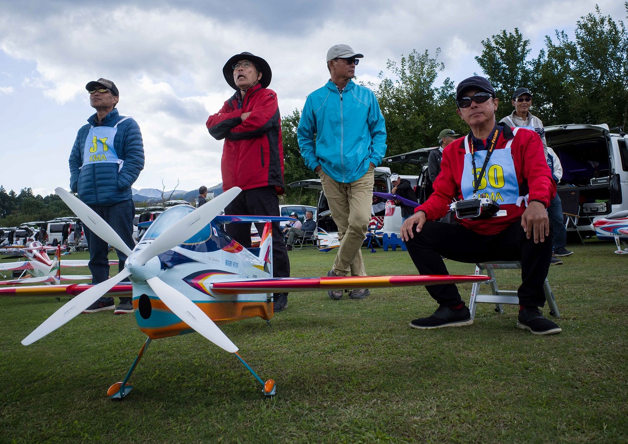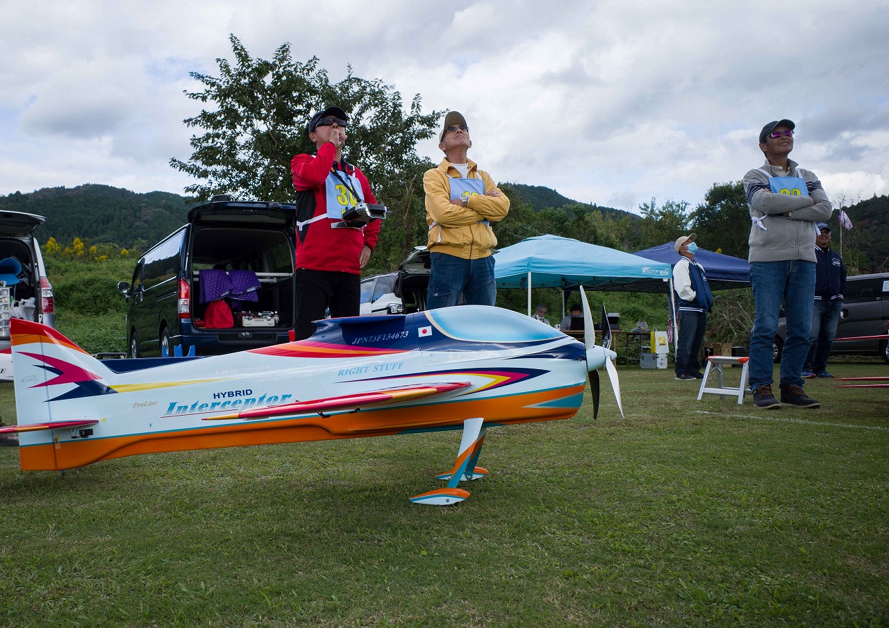 | 今年は9チームの参加をいただきました。昨年は初出場のチームAMGが優勝カップをさらっていきました。古参組はそれを阻止するべく、チーム編成に考え抜いたようです。チームAMGもメンバーを変えてきていました。連覇なったでしょうか。そんな中、楽しい大会を開催できましたことを感謝いたします。 選手の方々には前日の整備もお手伝をいいただきありがとうございました。また日没まで練習される様子には勝負にかける意気込みがすごいなっと。そして今年は多かったなあ。 この飛行場は朝の霧が心配でしたが、霧もなく、曇りの予報通りです。7時半ごろには全参加者も揃い、早めの受付をし、早めの開始を狙いました。真正面の太陽も雲に隠れ、風もほとんどなく、少し空気が重いこれ以上ないくらいのフライト条件でした。ただ、下の吹き流しの方向と、上空の風向は違っているようです。鈴木さんの目慣らし飛行で開始です。第一ラウンドは全員好条件。第二ラウンドでは、半分を過ぎたあたりから、太陽が真正面に、横風が強くなってきました。対応を怠ると、流されます。太陽が真正面でのクロスボックスでは太陽を串刺して上昇していきます。見えてんのかな?太陽も隠れたり覗いたりと、運もありましたね。。午前中は2ラウンドまでで、午後から第三ラウンドとなりました。第二ラウンドまではチームAMGが1990点でトップです。第二位は紀乃國FC-Bが1935点。第三位は鬼の里-Aが1897.5点と続きます。1位とは差があり、今年もチームAMGが連覇か? さて、昼からは太陽が出ると暖かくなり、隠れると寒いです。太陽が雲に隠れるときは、とばしやすいですが、出てくると、太陽がかなりまぶしくなっています。差が激しくフライヤは大変です。フライト順で、太陽の位置による運もあります。どのチームに女神がほほ笑むか? 第三ラウンドは風が横風から順風へ変化してきました。かなりまぶしい中、始まりました。飛行機を見失うフライヤもいたようです。第三ラウンドの終了時点で、チームAMGが2982点でトップです。第二位は紀乃國FC-Bが2867.2点。第三位は鬼の里-Aが2834.9点と差が大きくなってきました。 今年は第四ラウンドで、順位が変動しました。大会ではラウンド毎の千分率を採用しています。フライト順も作戦のうちになるわけです。 そして第四ラウンドでは鬼の里-CのH田選手が見事な飛びで、他を大きく引き離して1000点をとり、他チームの得点を下げたため、鬼の里-Cが5位から表彰台へ。素点では上回ってるにも関わらず、千分率では順位が逆転するという状況が初めて出てきました。これがラウンド毎の千分率の狙いでしたからね。詳細は成績表をご覧ください。チームAMGさんは連覇となりました。上田審査員から、奥行きのある演技が導入されてゆくだろうから、飛行機の姿勢をよく見るように。鈴木審査員から、初めの演技への入りをもっと重要視して、見せてほしいと、耳に痛いコメントでした。来年も参加をいただきますようにお願いいたします。 一日をとおしてラウンド毎の条件はほぼ同じだったと思います。来年も予定しますので、多くのクラブの参加をお待ちしております。 最後に審査をしていただきました上田さん、鈴木さん、羽根田さん、運営にご協力をいただきました山原さん、藤本さん、中村さんには御礼申し上げます。 レポート:KMA曲技員会 委員長 神戸祥明 |
