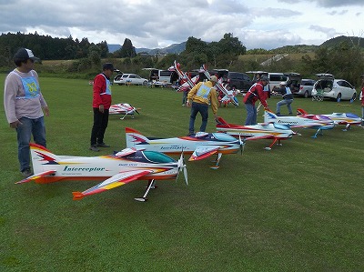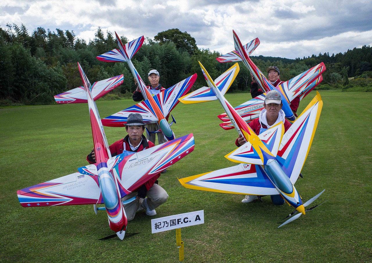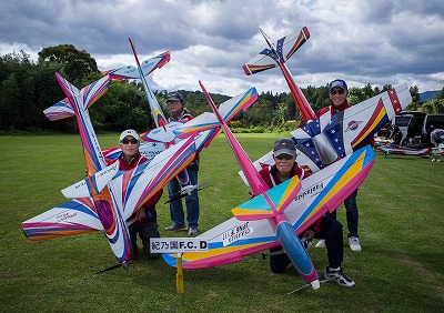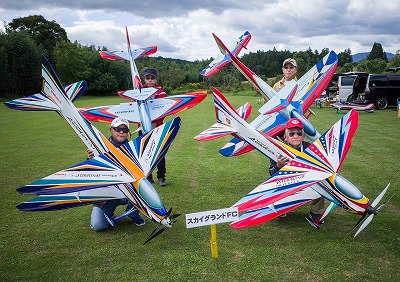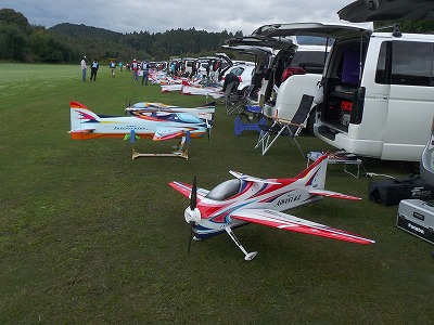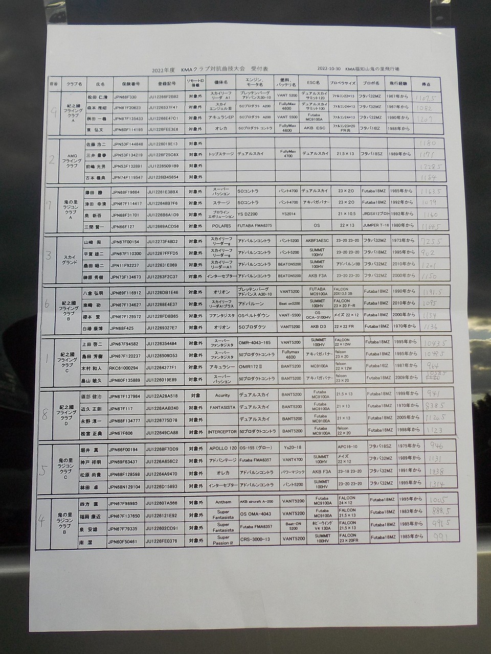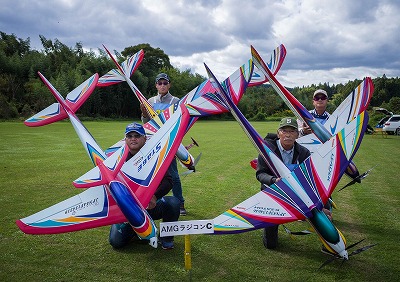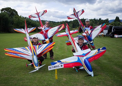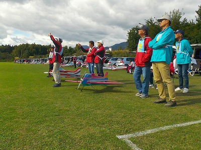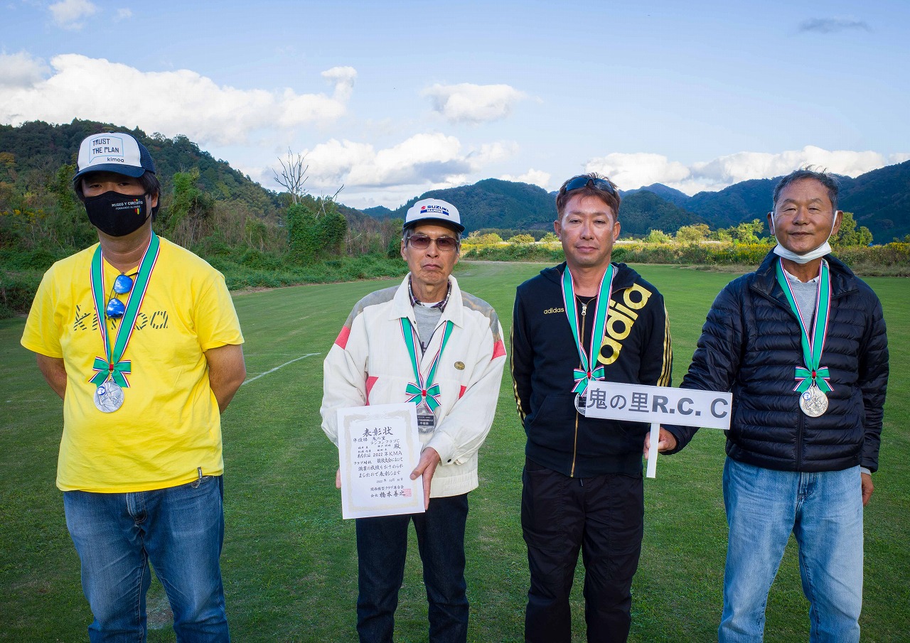 | 今年は9チームの参加をいただきました。昨年は初出場のチームAMGが優勝カップをさらっていきました。古参組はそれを阻止するべく、チーム編成に考え抜いたようです。チームAMGもメンバーを変えてきていました。連覇なったでしょうか。そんな中、楽しい大会を開催できましたことを感謝いたします。 選手の方々には前日の整備もお手伝をいいただきありがとうございました。また日没まで練習される様子には勝負にかける意気込みがすごいなっと。そして今年は多かったなあ。 この飛行場は朝の霧が心配でしたが、霧もなく、曇りの予報通りです。7時半ごろには全参加者も揃い、早めの受付をし、早めの開始を狙いました。真正面の太陽も雲に隠れ、風もほとんどなく、少し空気が重いこれ以上ないくらいのフライト条件でした。ただ、下の吹き流しの方向と、上空の風向は違っているようです。鈴木さんの目慣らし飛行で開始です。第一ラウンドは全員好条件。第二ラウンドでは、半分を過ぎたあたりから、太陽が真正面に、横風が強くなってきました。対応を怠ると、流されます。太陽が真正面でのクロスボックスでは太陽を串刺して上昇していきます。見えてんのかな?太陽も隠れたり覗いたりと、運もありましたね。。午前中は2ラウンドまでで、午後から第三ラウンドとなりました。第二ラウンドまではチームAMGが1990点でトップです。第二位は紀乃國FC-Bが1935点。第三位は鬼の里-Aが1897.5点と続きます。1位とは差があり、今年もチームAMGが連覇か? さて、昼からは太陽が出ると暖かくなり、隠れると寒いです。太陽が雲に隠れるときは、とばしやすいですが、出てくると、太陽がかなりまぶしくなっています。差が激しくフライヤは大変です。フライト順で、太陽の位置による運もあります。どのチームに女神がほほ笑むか? 第三ラウンドは風が横風から順風へ変化してきました。かなりまぶしい中、始まりました。飛行機を見失うフライヤもいたようです。第三ラウンドの終了時点で、チームAMGが2982点でトップです。第二位は紀乃國FC-Bが2867.2点。第三位は鬼の里-Aが2834.9点と差が大きくなってきました。 今年は第四ラウンドで、順位が変動しました。大会ではラウンド毎の千分率を採用しています。フライト順も作戦のうちになるわけです。 そして第四ラウンドでは鬼の里-CのH田選手が見事な飛びで、他を大きく引き離して1000点をとり、他チームの得点を下げたため、鬼の里-Cが5位から表彰台へ。素点では上回ってるにも関わらず、千分率では順位が逆転するという状況が初めて出てきました。これがラウンド毎の千分率の狙いでしたからね。詳細は成績表をご覧ください。チームAMGさんは連覇となりました。上田審査員から、奥行きのある演技が導入されてゆくだろうから、飛行機の姿勢をよく見るように。鈴木審査員から、初めの演技への入りをもっと重要視して、見せてほしいと、耳に痛いコメントでした。来年も参加をいただきますようにお願いいたします。 一日をとおしてラウンド毎の条件はほぼ同じだったと思います。来年も予定しますので、多くのクラブの参加をお待ちしております。 最後に審査をしていただきました上田さん、鈴木さん、羽根田さん、運営にご協力をいただきました山原さん、藤本さん、中村さんには御礼申し上げます。 レポート:KMA曲技員会 委員長 神戸祥明 |