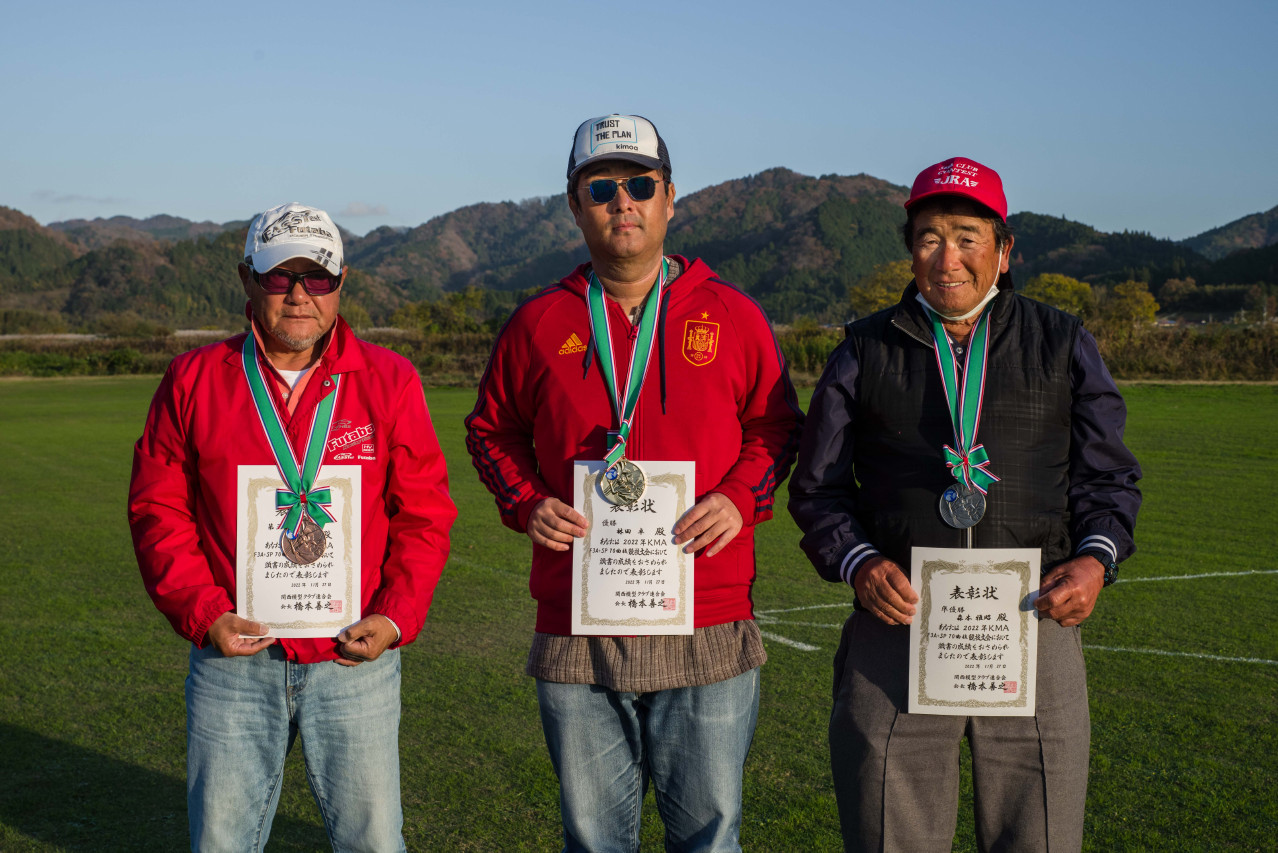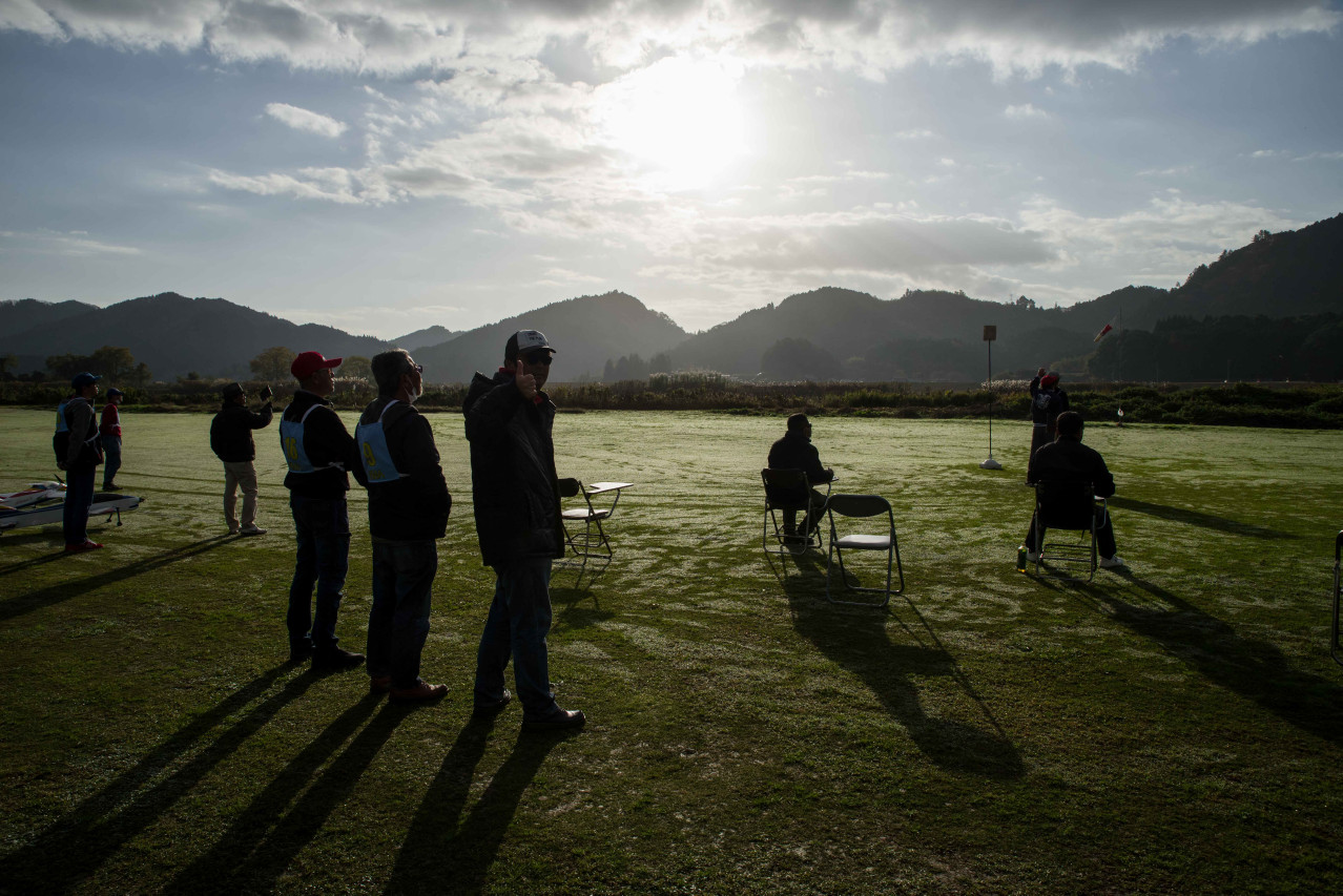 | 今年の最後になる大会です。日の入りも一年で一番早くなる時期ですから、できるだけ早く終了しないといけません。加えて南向きの飛行場で太陽が低くなるので、天気がいいと、かなりまぶしい条件でのフライトになります。サングラスや流鏑馬の活用で皆さん頑張ってくれました。ここ連日、霧が垂れ込め、10時ごろにならないと晴れないので、開始が遅れるかもしれなと、前日には演技カットなども検討していました。ところが皆さんの日頃の行いがいいのか、6時ごろに到着しても霧はありませんでした。ラッキー!! 今年は24名の申し込みがありました。しかし、前日の飛行機トラブルや当日の体調不良で2名が不参加になり、22名での戦いになりました。運営側としたら、25名くらいの参加が欲しいところなので、まあまあですね。競技内容は午前中はF3A(P23)を行い、午後からはJRAのスポーツマン演技です。飛行技術の基本から応用までのトータルで競い合いました。F3Aでは2人ジャッジで1200点満点。スポーツマン演技ではジャッジ一人の満点が250点ですので、5人のジャッジとして、1250点満点と同等のウエイトとしました。狙いはスポーツマンでの逆転があれば面白いなあーと、委員長の企みでした。 スタートから終了まで、太陽は雲に隠れたり、顔を出したりと、これは運次第でしたね。H田選手の時は、真正面でしたね。何度も飛行機を見失ったことでしょう。それ以外は風も時折、吹きましたが、おおむねいい条件でした。実力を発揮していただいたと思っています。結果、優勝は林田選手、準優勝は森本選手、第三位が桑田選手でした。林田選手は全ラウンドトップで完全優勝でした。P23では2番手が森本選手、3番手が榊原選手でしたが、スポーツマン演技で桑田選手が逆転しました。スポーツマンでは離着陸も採点されるため、普段、着陸を丁寧にしてしない癖があるのか、着陸で点が伸びない方もおられました。特に着陸では中村さんの演技が皆さんをうならせるだけのものがありました。 成績表にP23での順位、スポーツマンでの順位、総合得点での順位を出してますので、逆転が生じているのが見れて面白いかも。 でも皆さん、基本となるスポーツマン演技が上手で、思ったより高得点になり、スポーツマン演技のウエイトが結果として高くなってしまいました。スポーツマンで順位の入れ替わりが結構あり、面白いので、来年もこのままいこうかな。 ジャッジの講評の中で、飛行機が小さいので、飛行距離を注意や、調整が甘い機体、舵打ちが荒いなどが見受けられるとの指摘もありました。反省ですね。 大会の運営に協力をいただきました上田審査員、鈴木審査員、加藤審査員、林田審査員、並びに集計などを担当いただきました山原役員、藤本役員には御礼申し上げます。 文と写真:KMA RC曲技委員長 神戸祥明 |