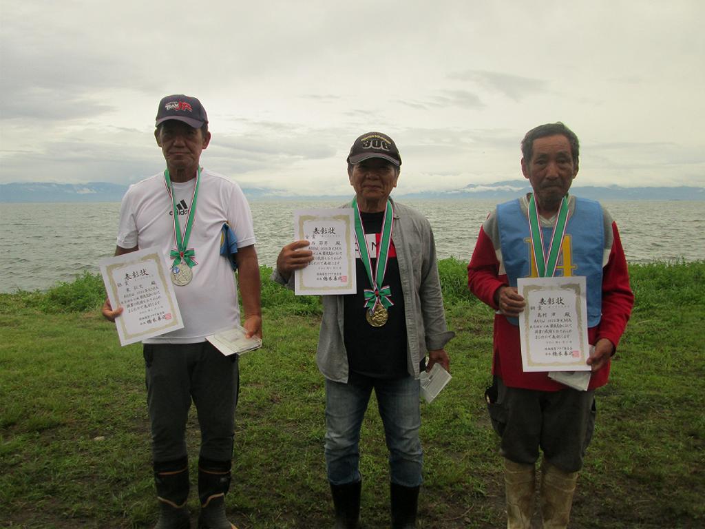 ![]() 32.オープン級入賞者-金賞 西さん(中央)、銀賞 東さん(左)、銅賞 島村さん(右) |