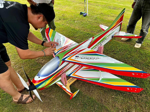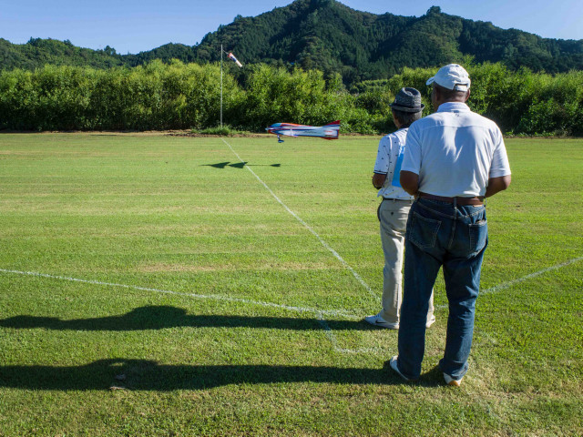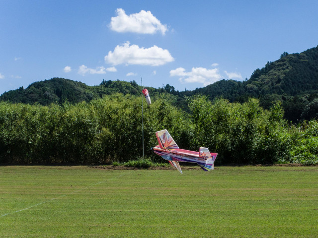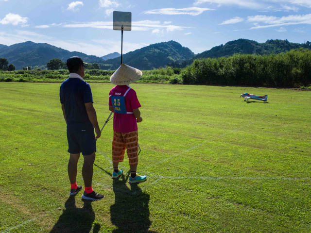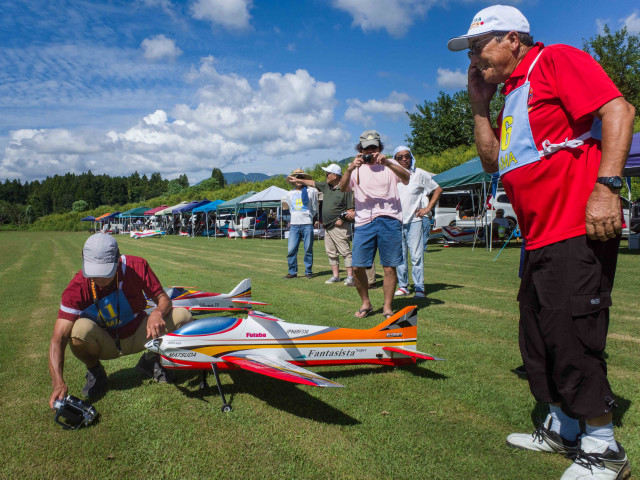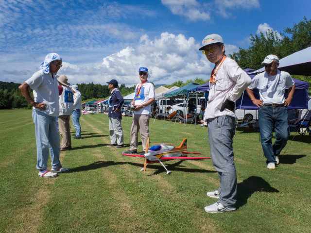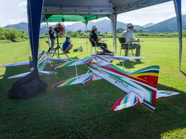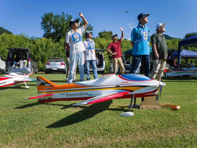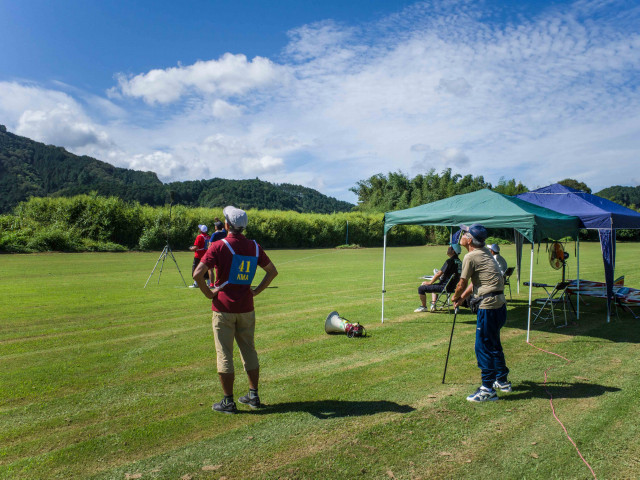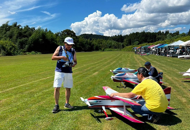 | 2023年Futaba杯曲技大会 9月3日 KMA福知山鬼の里模型飛行場 計画をしてから、台風やコロナのため、開催まで3年ほどの空白ができてしまいました。 大会要綱をホームページに載せて、3回の延期が余儀なくされました。でも、待ちに待ったFutaba杯です。 鈴木さんや音田さん、羽根田さんは世界戦から帰国して一週間も経っていませんが、疲れも見せず、元気な姿を見せていただけました。感謝・感謝です。 大会はスポーツマンクラスに14名、F3Aクラスに27名の参加をいただきました。 スポーツマンはハンディ制として、選手権やオールジャパンの経験者はマイナスハンディです。プラスハンディは1100㎜以下の飛行機です。 音田さんのフルサイズでのデモ飛行あり、小型機によるアクロバットなど、とても参考になり、楽しいひと時でした。 ジャッジの皆様には暑い中、採点をいただきありがとうございました。ジャッジ席に置いた大型扇風機は少しは役に立ったと思っています。この扇風機はF3Aクラスに参加をいただいた櫻本さんの寄贈です。 スポーツマンクラスでは素点クラス、ハンディクラスとも平賀選手が優勝し、2位には榊原選手、3位に津田選手でした。ハンディをもろともせずにお見事でした。 F3Aクラスは8番目まで午前中、それ以後は13時からスタートしました。 午後からは晴れているのにだんだんと空がかすんで見にくく、加えて青一色となり、太陽の位置と相まって、見失う人もおられました。鬼の里飛行場ではいい出番を引きあてるのも実力の内です。 優勝は林田選手、2位は榊原選手と森本選手で、お二人は同得点でした。 成績表は添付の資料をご覧ください。 大会に際し、世界戦からの帰国すぐにお世話いただきましたフタバの鈴木さん、音田さん、小川精機の羽根田さん、ありがとうございました。また、暑い中、ジャッジもありがとうございました。 本部では上田さん、林田さん、四方さんありがとうございました。上田さんはジャッジもお疲れさまでした。 加えて、双葉電子工業様、小川精機様、イコマホビー様から多くの協賛品をいただきありがとうございました。最後のジャンケン大会も盛り上がりすぎていました。 レポート:KMA RC曲技委員会 神戸 | ||