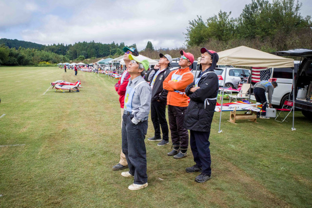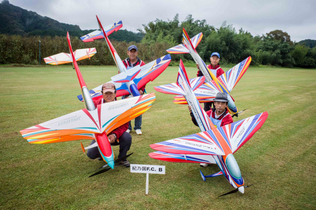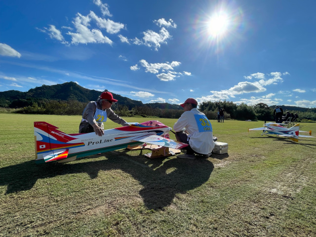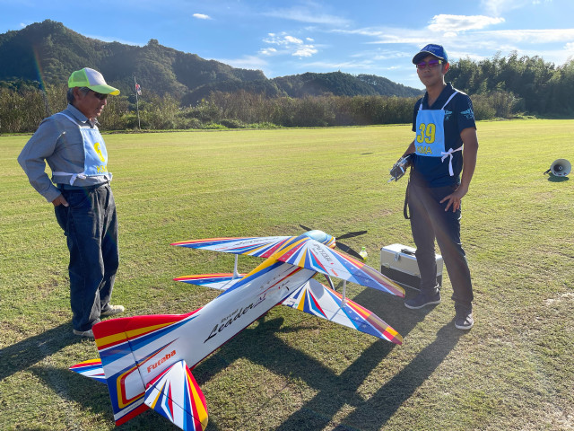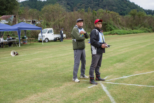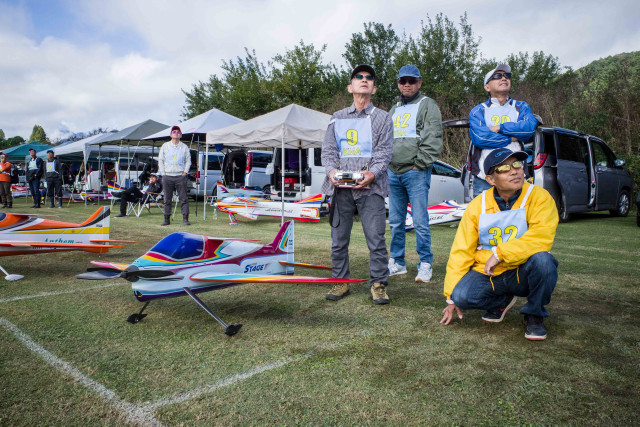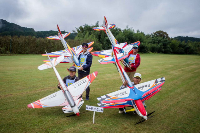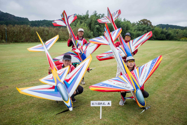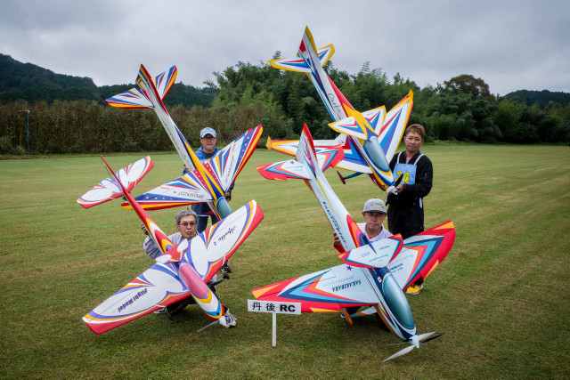 | 2023年KMAクラブ対抗曲技競技大会 10月22日 KMA福知山鬼の里模型飛行場 今年は11チームに参加いただき、ありがとうございました。初参加で米子ラジコンクラブが参加してくださいました。すごいメンバーを揃えられてこられるとのうわさでしたので、近畿チームも張り切ってメンバーを揃えたようです。一昨年に初参加の中部のチームAMGに2連覇され、今年も初参加の米子ラジコンチームに優勝をさらわれるのでないかと、心配です。 前日は荒れた天気でかなりの雨が降り、日曜日には霧が出るのではと、心配され、まさに霧の朝でした。11チーム44名がフル演技で戦えるかが心配でした。本部ではいつ頃から始めれば、フル演技か演技カットにするかを時間によるシミュレーションをしていました。 しかし9時半ごろには調査飛行の結果、何とか演技できる状況になってきました。これだったら、予定時間内には終了できそうとなり、ホッとしました。 さあ、いよいよ開始です。トップバッターは電動をはじめて間もないとのこと。丹後RCの堀井選手です。KMAの大会には参加いただいていますが、かなり腕を上げてきていますね。すごい。第一フライヤの終了では、1位は紀乃國Aチームが1000点でトップ。2位は米子RC、3位は紀乃國B、鬼の里Bが続きます。 第二フライヤが終わると、米子RCがトップに立ちました。2位には鬼の里B、3位には紀乃國Bが続きます。 第三フライヤですが、エース級が投入されてきます。そのためか順位に変動が出てきました。1位は米子RC、2位は鬼の里Aで5位からの躍進です。3位は鬼の里Bです。差は1位と2位とは22.6点、2位と3位とは26.4点、3位と4位とは17.6点、5位の紀ノ國Aとはわずか6点です。なかなかの接戦ですね。最終フライヤにプレッシャーがかかります。 第四フライヤはどのチームもエースが登場ですね。やはり鬼の里Aの羽根田選手が強すぎました。得点は1000分率をしているので、採点ほど差は広がりませんが、鬼の里Aが逆転優勝となりました。準優勝は米子RCで本大会を盛り上げていただきました。三位は紀乃國Bという結果になりました。フライヤごとの千分率が接戦を生んだり、明暗を分けたりと、楽しい大会でした。成績を載せておきます。飛行順番も戦いのうちですね。 来年はさらにチームが増えることを祈っています。米子RCさんからは2チーム作ろうかなという声も聞こえました。うれしい限りです。 最後に審査をいただきました上田審査員、林田審査員、加藤審査員、並びに本部では集計などを行っていただきました山原役員、藤本役員には御礼申し上げます。大会の推進に協力いただきました中村役員、羽根田役員にも感謝いたします。 KMA RC曲技委員長 神戸 | ||
