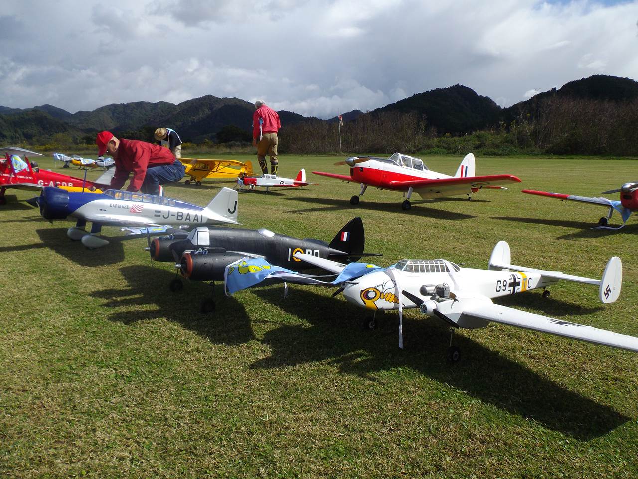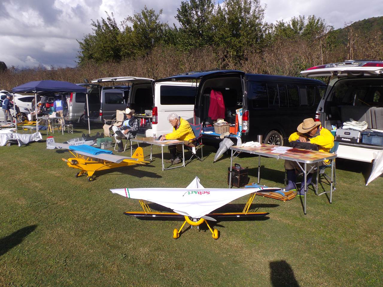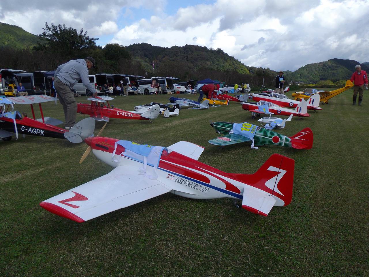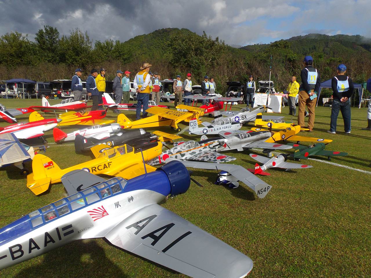 参加機はグロー15エンジンからガソリン50㏄、電動機も10クラス小型から50㏄クラス大型機までバラエティーに富んでいます。当日の天気は時折雨もありましたが、大きな事故もなく参加者の皆様の協力で終えたことに感謝です。次回は岡本委員長からの提案で、飛行技術の向上を目的にした勉強会を開催することになりました。是非、皆様方の参加をお待ちしています。