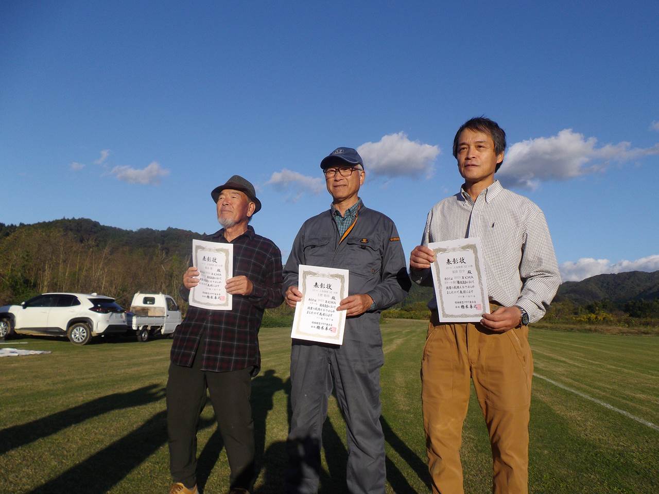 27.クラスA入賞の左から3位芝山選手、 1位山下一郎選手、2位安上選手 |