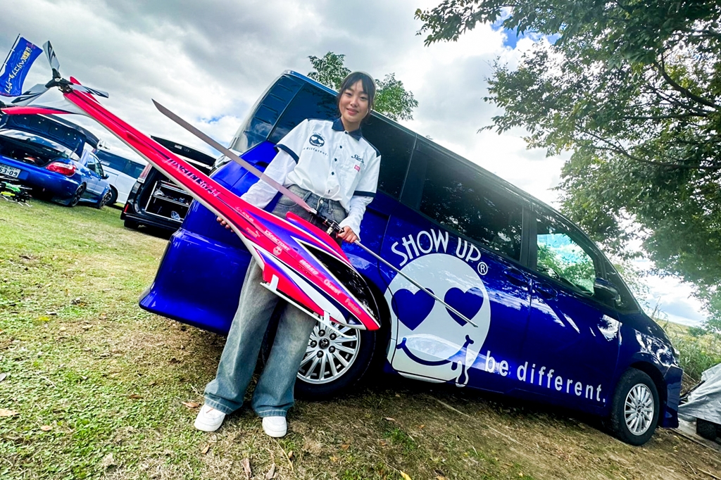 ![]() 14.F3A日本代表の羽根田選手はアクロ飛行を披露 |