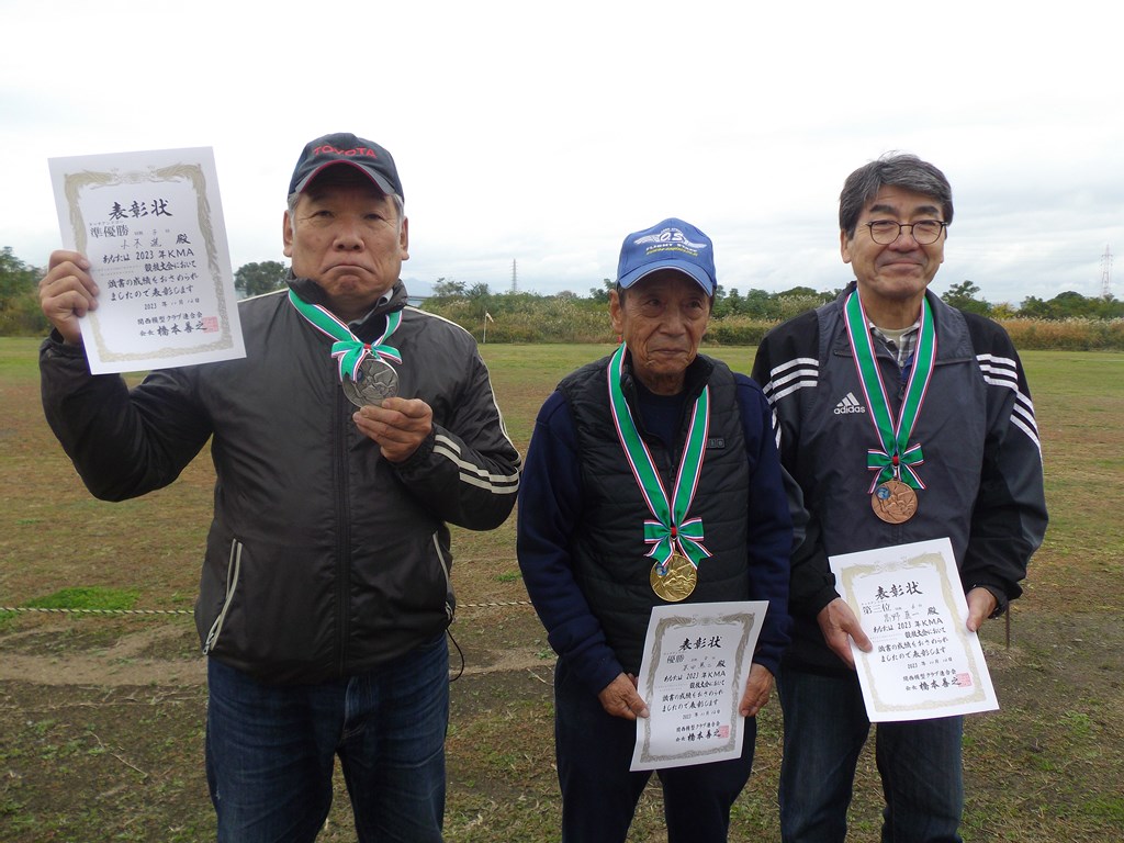 の小木進さん、1位の本多篤二さん、 3位の高野真一さん。