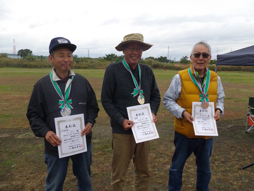 30.ゴールデンエイジ部門タッチ&ゴー競技の入賞者、左から2位芝山峰治さん、1位鈴木基弘さん、 3位角岡憲次さん。おめでとうございます。 |