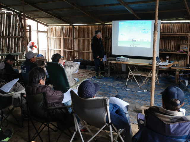 | 2024年 F3A勉強会 3月24日 KMA鬼の里模型飛行場 今年は18名(予定は20名でしたが、体調不良などで)の参加をいただきました。今年度から新パターンのP25となり、ルールの変更や明確化も図られました。正確性については、審査員から見た図形で判断するというのが大きなポイントですね。最近はフライトコーチなど幾何学的に正確な図形を知る手段も出てきたりと、図形の正確性を判断する基準が明確化されました。そして攻略に向けて皆さんの意気込みが感じられました。 内容は ① ルール変更内容の解説。 重量の変更、正確性の判断の明確化 ② 審査員講習会で説明された演技ガイドや減点の基本を説明しました。 ③ P25演技について、演技の陥りやすい欠陥やP25にて多い45度や円の見え方に審査員からの 視点となることの解説など。 そのあと、皆さんからの質問をお受けし、実技に入っていきました。今回の実技ではP25の演技デモを行うのではなく、審査員から見た45度や円の見え方、水平飛行の見え方などについて実演していただきました。羽根田さんありがとうございました。この後は天候不良で実技が残念ながら中止となりました。予定していたのは、45度や降下時のスロットルワーク、高い上空での水平の見え方などでした。 来月から本格的な競技会シーズンですが、きっといいフライトを見せていただけると思っています。 勉強会にあたって、林田審査員、OSの羽根田さんにはお礼申し上げます。 文/写真:KMA 曲技委員会 神戸 | ||
