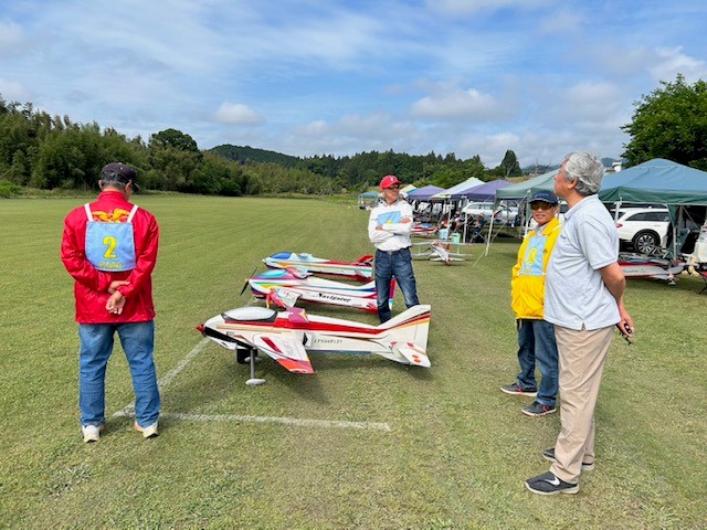 | 2024年度 F3A日本選手権&オールジャパン関西地区予選 6月1日、2日 KMA鬼の里模型飛行場 今年度は、21名の関西F3Aフライヤーから、エントリーいただきました。日本選手権は4名とオールジャパンは5名の予選通過の椅子を争っての試合となりました。 まずは、くじ引きでゼッケンと飛行順番を決めます。この飛行場は、出番によって風の状況が変化するため運も味方につけないといけません。 全3ラウンドで演技毎の上下カットの千分率の良い方の2ラウンド合計で、勝敗を決めていきます。 初日は、終始安定した微風で全ての選手にイコールコンディションでした。2日目は1ラウンドで午前中に終了し、昼前くらいからやや強めの後ろ風が吹き始めました。 ジャッジは、4名で奥村さん、上田さん、林田の関西のメンバーと中部より安田さんに応援いただき審査していただきました。 まずは、機体検査からスタートして、全ての機体検査が終了した後、羽根田さんによる目慣らし飛行と、フレーム確認飛行をしていただきました。羽根田さんのP25目慣らし飛行は、流石世界戦フライヤーのフライトと感じました。いよいよ1ラウンド目の競技開始です。 初日一番バッターを引き当てたのは、往年の名フライヤー 山崎 與選手で、久しぶりの競技会で少し緊張されているようでした。 お昼くらいに、1ラウンドが終了し、トップは林田選手、2位に松原選手、3位に山崎 鉄兵選手、4位に東選手、5位に奥選手、6位に松田選手と続きます。 そして、お楽しみのランチタイム今回も、美味しいお弁当ありがとうございました。 そして、午後より、2ラウンド目のスタートです。トップバッターは森本選手、次に澤田選手と続きます。 2ラウンド目の結果は、トップは林田選手、2位に松原選手、3位に東選手、4位に桝田選手、5位に奥選手と続きます。林田選手は2000点獲得で予選通過確定となりました。2位の松原選手も通過の可能性は高くなっています。3位からの争いが熾烈となり最終ラウンドの出来しだいとなり面白くなってきました。 2日目も羽根田さんの目慣らし飛行終了後、3ラウンド目最終ラウンドのスタートです。林田選手は予選通過確定したため、本ラウンドを辞退したため千分率マジックが起こりそうです。そのため各選手の目の輝きが違っています。トップバッターは奥選手、唯一のエンジン機で良く飛んでいます。次に八倉選手、その次に東選手と続きます。東選手はちょっと気合を入れすぎたようでした。 3ラウンド目の結果は、トップが松原選手、2位が山崎 鉄兵選手、3位が桝田選手、4位が森本選手、5位が奥選手となりました。 3ラウンド合計結果としては、1位林田選手、2位松原選手、3位山崎 鉄兵選手、4位桝田選手、5位奥選手、6位東選手となりました。 日本選手権予選通過者は、林田・松原・山崎・桝田選手で補欠として奥・東選手、オールジャパン予選通過としては、奥・東・森本・三井・三間選手となりました。 今年の選手権会場は高知県での開催となり比較的近い場所での開催ですので、選手の方々は最高のパフォーマンスを発揮され、また、応援の参加も期待しています。 なお、本大会を開催するにあたって、事前準備と全体運営を総括していただいた神戸委員、得点集計でご尽力いただいた山原委員・藤本委員、大会進行管理をしていただいた加藤委員、羽根田委員にこの場をお借りしてお礼申し上げます。ありがとうごさぞいました。 文/写真:KMA 曲技委員会 林田 | ||
