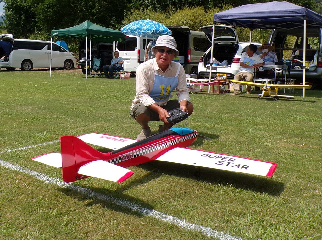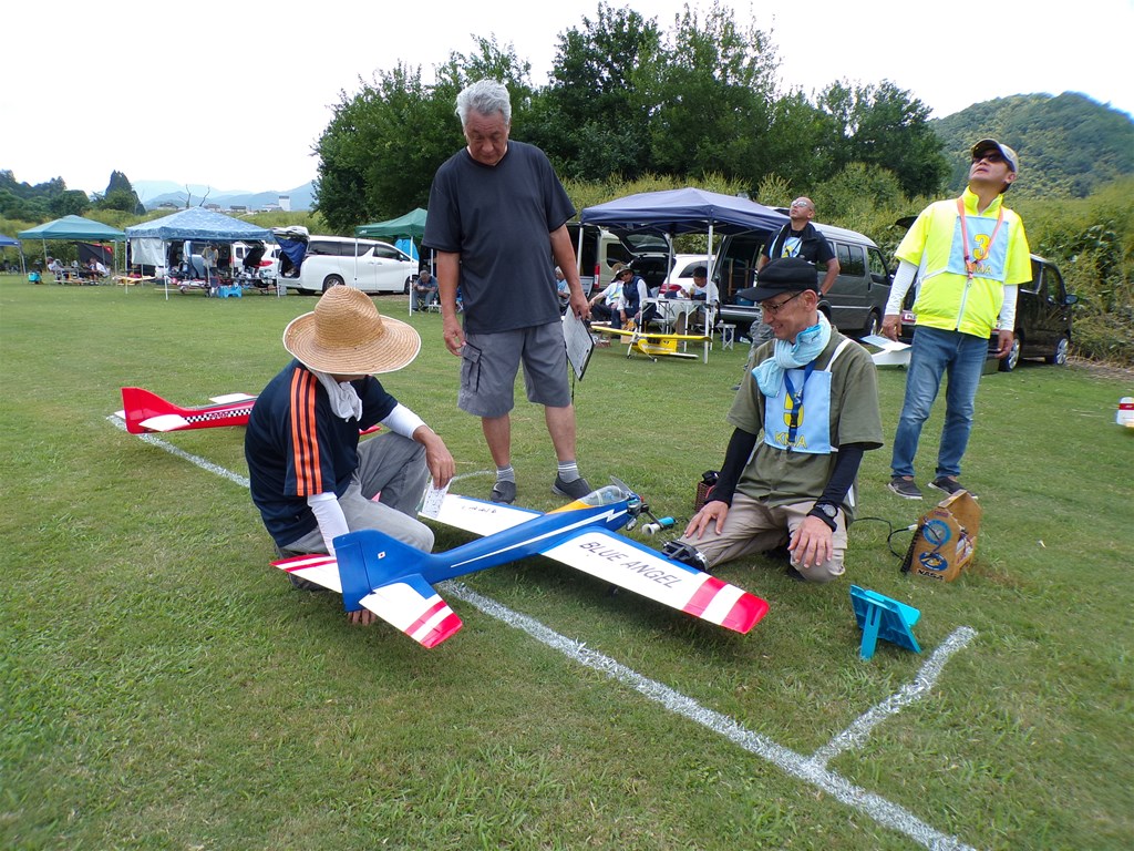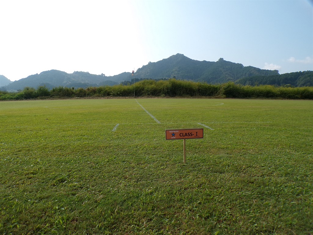 1.KMA福知山鬼の里模型飛行場は250m長芝の滑走路、好天に恵まれ開催、終日イコール条件で競技は 進められました。 |