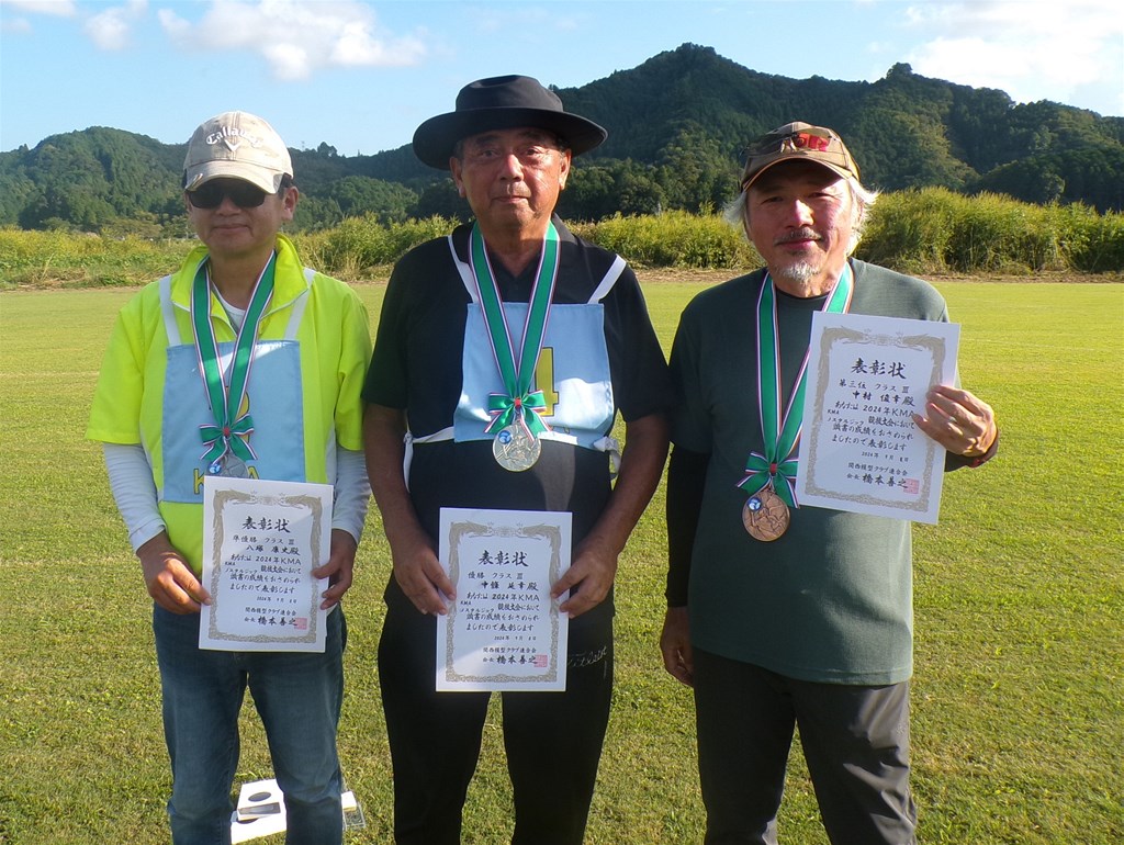 22.クラスⅠ入賞者、左から2位八塚康史さん(ジェントルサンダー10)、1位中條延幸さん(ジェントルサンダー)、3位須原信介さん(ハミングバード)でした。 |