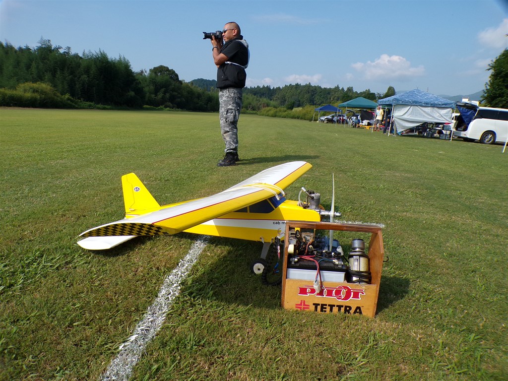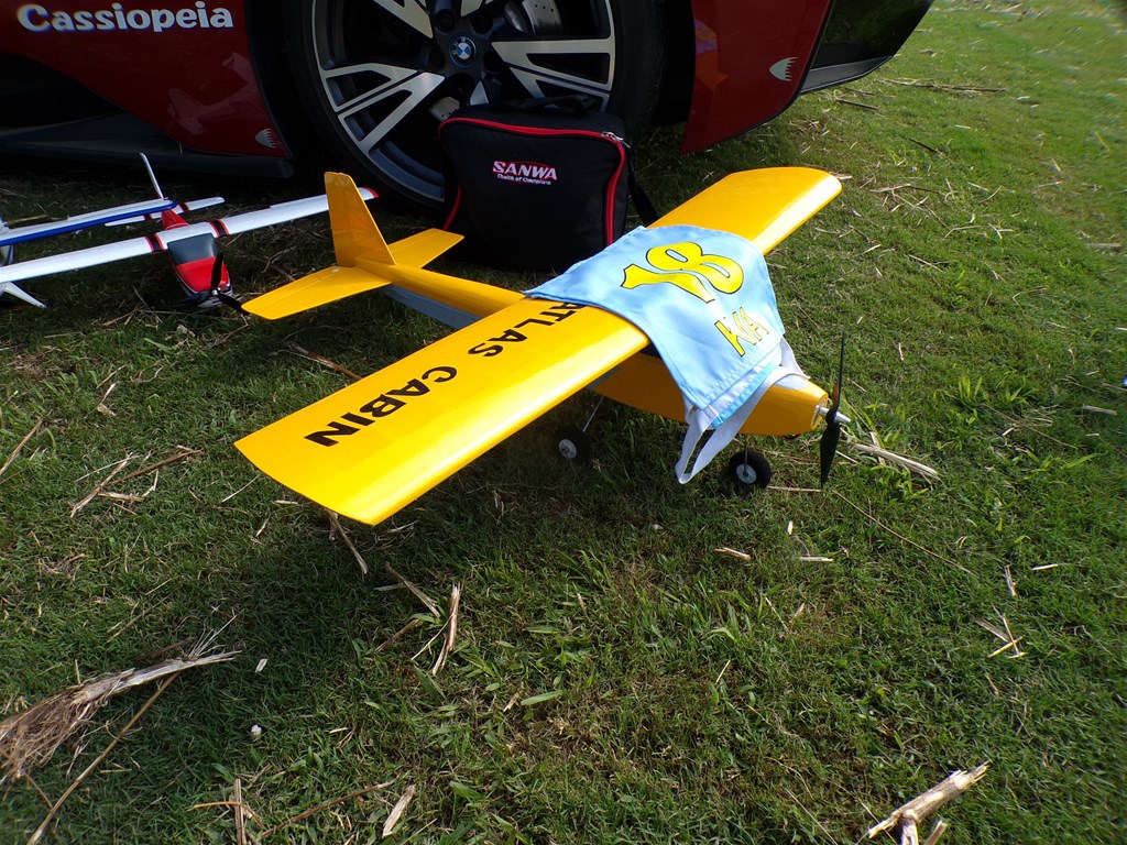 7.カシオペア社主の加藤弘志選手(奈良)の機体は、クラブのごみ箱から拾ったと逸話があるアトラスキャビン15の縮小版を電動化。ますますシングル機の楽しさを再発見したようである。 |