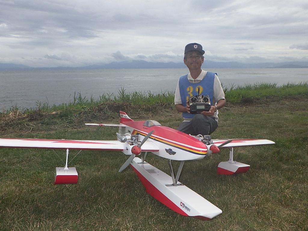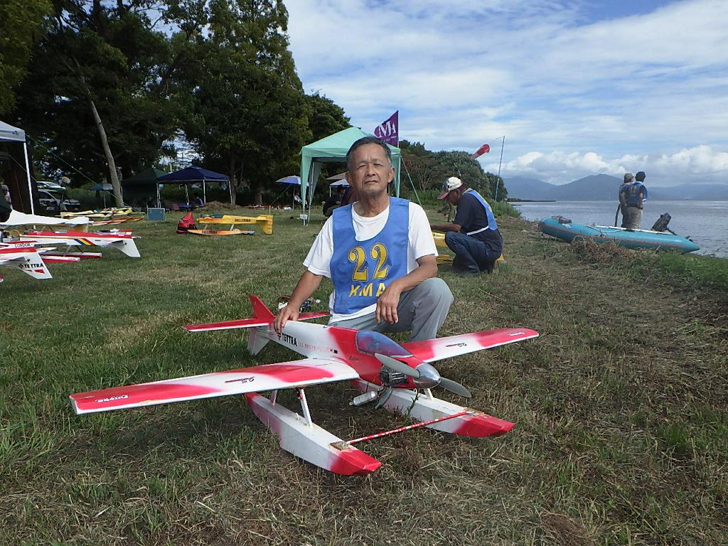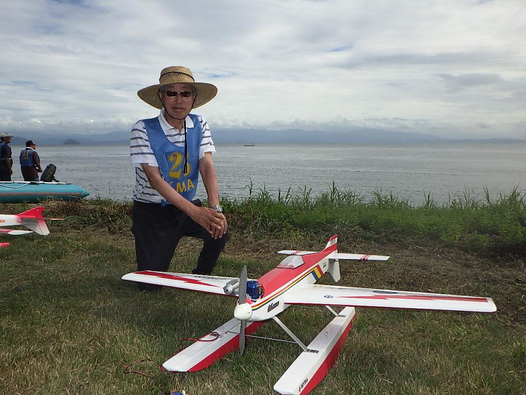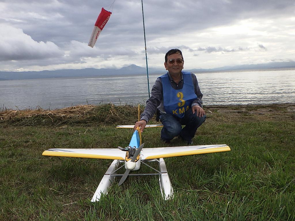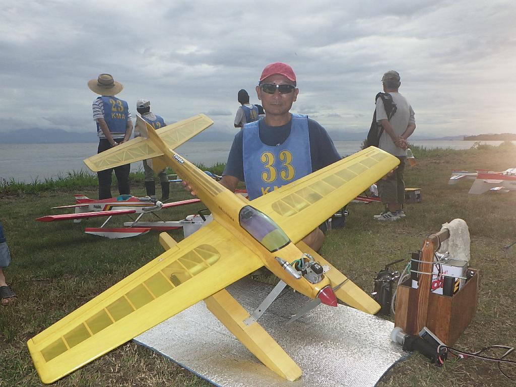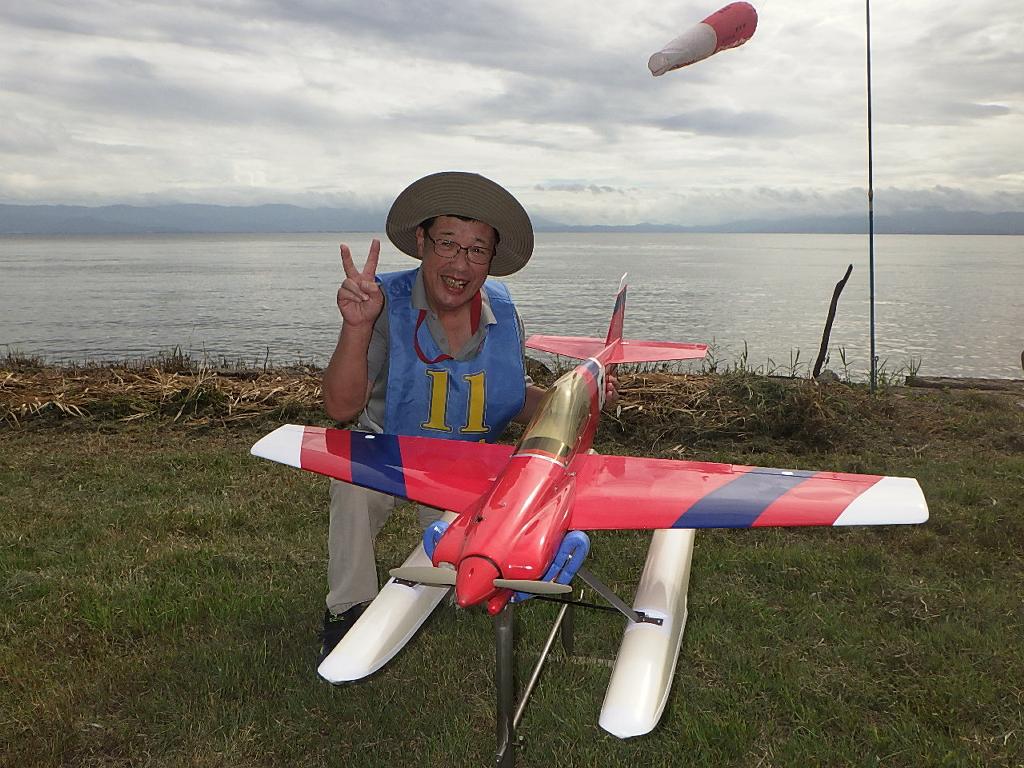 | 第67回 KMA琵琶湖水上機大会 9月15日 滋賀県高島市新旭町琵琶湖湖岸 今年の異常な暑さや迷走台風、さらに集中豪雨など気象変化が大きすぎて、各地で災害が発生しています、改めて、災害に遭われた皆様に心からお見舞い申し上げます。 ラジコンの大会も気象の変化で、止む無く中止する場合がありますが、今大会も昼からの雨が予想され、午前中に1ラウンドだけでも終了させたいと、朝7時過ぎに受付を開始しました。参加者の皆さんも、そのせいか早めに会場に到着のようです。 会場の状態は、前日の炎天下、役員有志により草刈りを実施。途中、地元クラブの仲間が乗用芝刈り機を持ち込んでくれ、短時間で草ぼうぼうが、ゴルフ場のような芝生状態に見違えるようになりました。応援してくれた関係者の皆さん、暑い中大変有難う御座いました。 さて、大会の方はオープン級16名、初級7名、中級16名の合計39名の参加を得ました。大盛況です! ただ、狭い駐車場なので、できるだけ詰めての駐車を参加者にお願いしました。8時前には受付も終わり、下り坂の天候予想もあって、島田委員長の挨拶に続き、KMA橋本会長の挨拶と少し短めに済ませて頂き、いつもの150m越え確認や、演技デモ飛行解説なども省略して、注意事項のお願いだけにとどめ、記念撮影を行った後、オープン級から競技をスタートしました。 琵琶湖湖面は穏やかで少し波がある程度で、申し分ありません。オープン級は競技ではなく、自由フライトですが、スタッフが出来具合、飛びっぷり、観客アピール度などを密かにチェックし、採点、表彰します。10時前にはオープン級も終わり、初級の競技へと移りました。 初級のエントリーは7名、9項目の演技に挑戦です。今回はホームページに解説図を載せてPRしました、中にはコピーを持参して臨まれた方もいましたが、デッドパスが多かったり、コールを忘れたりとか、苦戦された方が見受けられました。11時過ぎには初級も終わり、続いて中級の競技へと移りました。 中級のエントリーは16名、10項目の演技に挑戦です。中級はベテランが多く、なかなかの接戦が予想されます。湖面の波は小波で、状態は良好です。風も穏やかで、心配された雨も降りそうにありません、このまま選手とジャッジに最後まで競技を続けましょうとすすめましたが、途中12時前、7名ほどの競技が終えた時点で、ジャッジの休憩を兼ね、昼食休憩を20分ほど取ることにしました。その後、競技を再開、終了は13時半過ぎでした。幸い最後まで雨は降らず、採点表の計算・集計のため、選手には自由フライトの時間とし、各自で自由飛行を行って頂きました。 14時過ぎに表彰式へと移り、オープン級、初級、中級の順番で賞状とメダルの授与が行われました。その後は、恒例の抽選会で選手全員に参加賞を渡し、最後にジャンケン大会で、ご当地の安曇川産ワインを勝者にプレゼントし、最後に委員長の閉会の挨拶でお開きとしました。 最後まで雨も降らずに恵まれた大会でした。お手伝い頂いた選手の皆様、水上機委員の皆様、蒸し暑い中、本当にお疲れ様、有難うございました。 今回御協賛頂きました会社様は以下の通りです(順不動、敬称略) (株)テトラ、双葉電子工業(株)、(株)OK模型、三和電子機器(株)、(株)マルク、プラネット模型 この場をお借りしまして厚くお礼を申し上げます。 最後にお詫びです、採点時の不手際で各自の得点に係数をかけずに集計し順位を決めました。選手からのご指摘があり、終了後、計算をし直して順位を確認しました。順位は変わらず、結果は成績表をご覧ください!大変ご心配をおかけし、申し訳ありませんでした! (文、写真、:KMA橋本実、 データ取りまとめ:橋本、テトラ山原 ) | ||