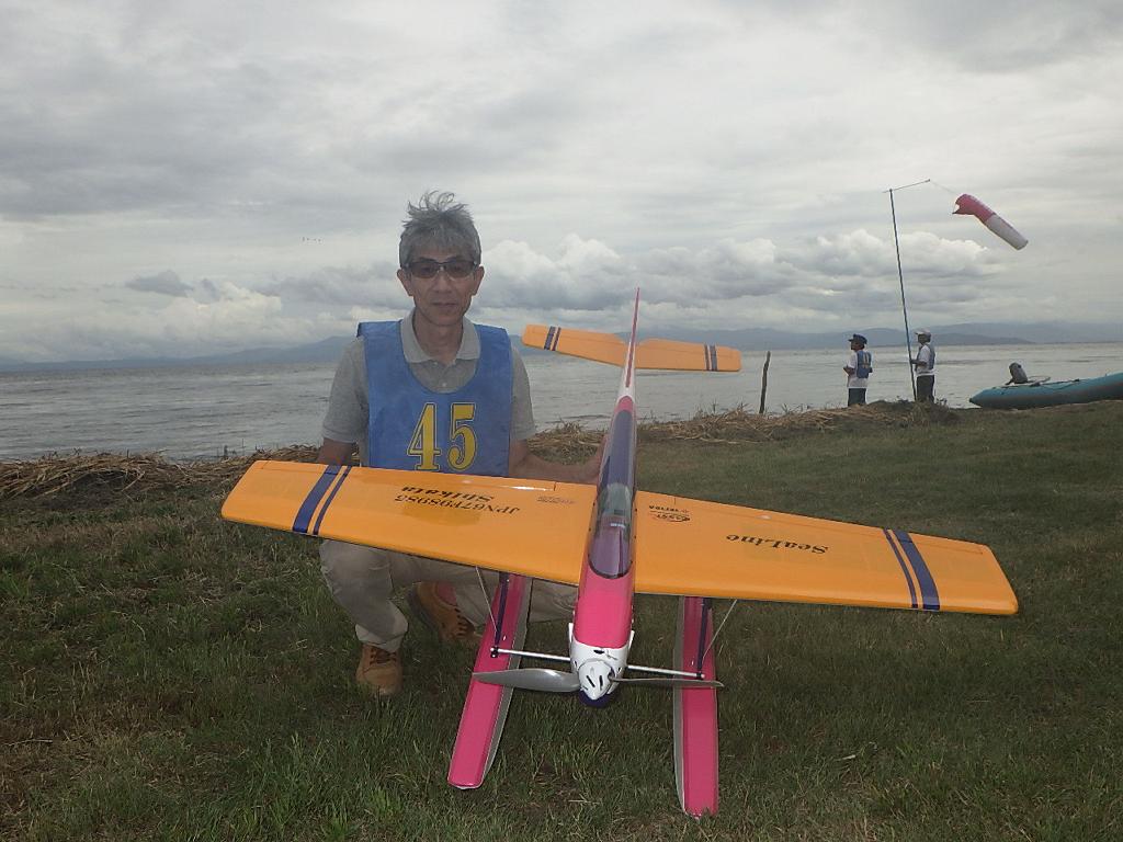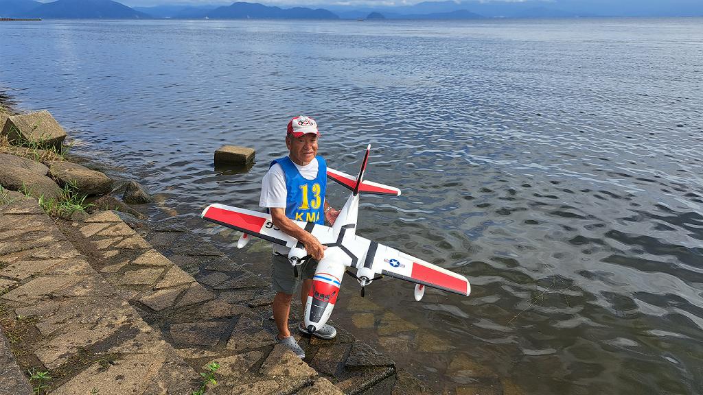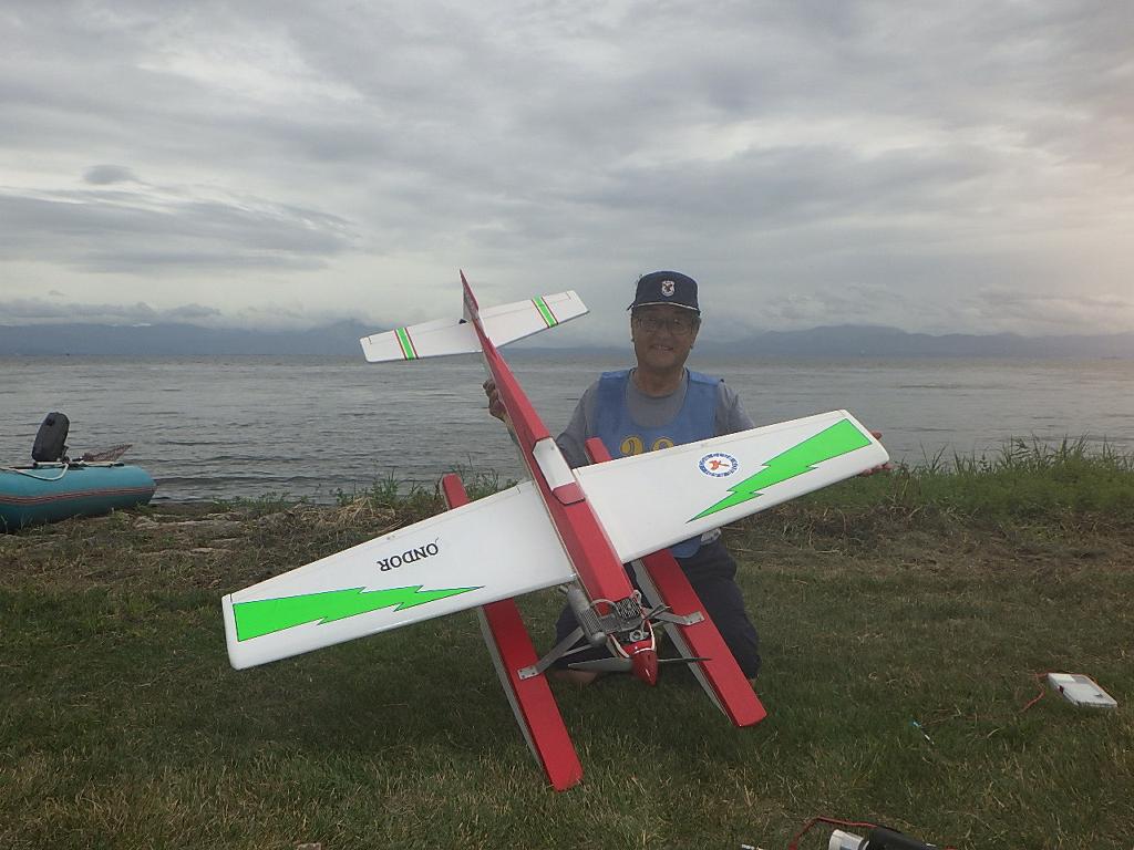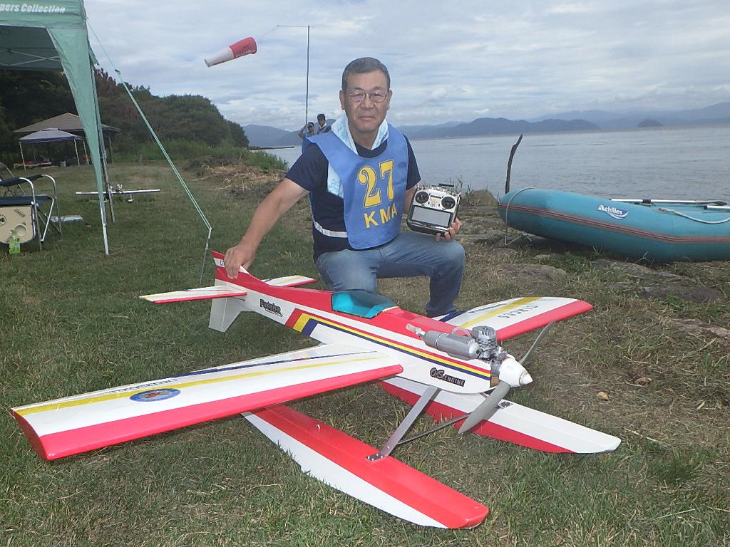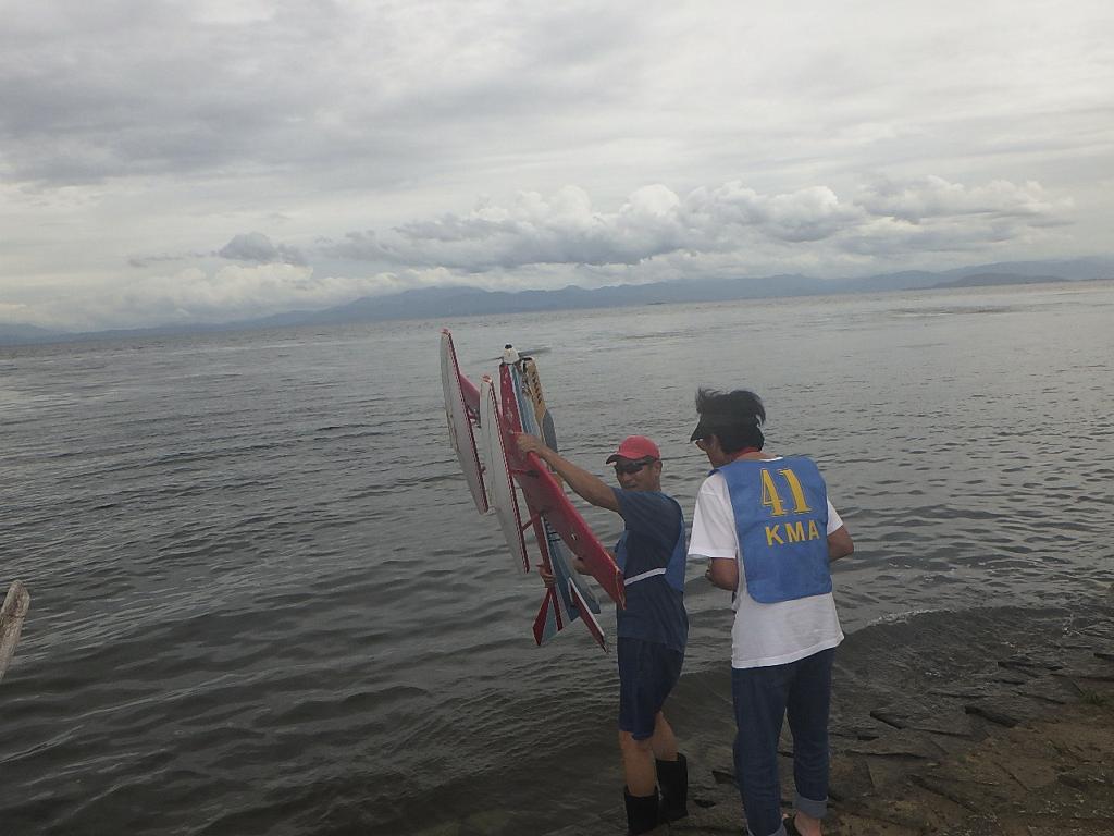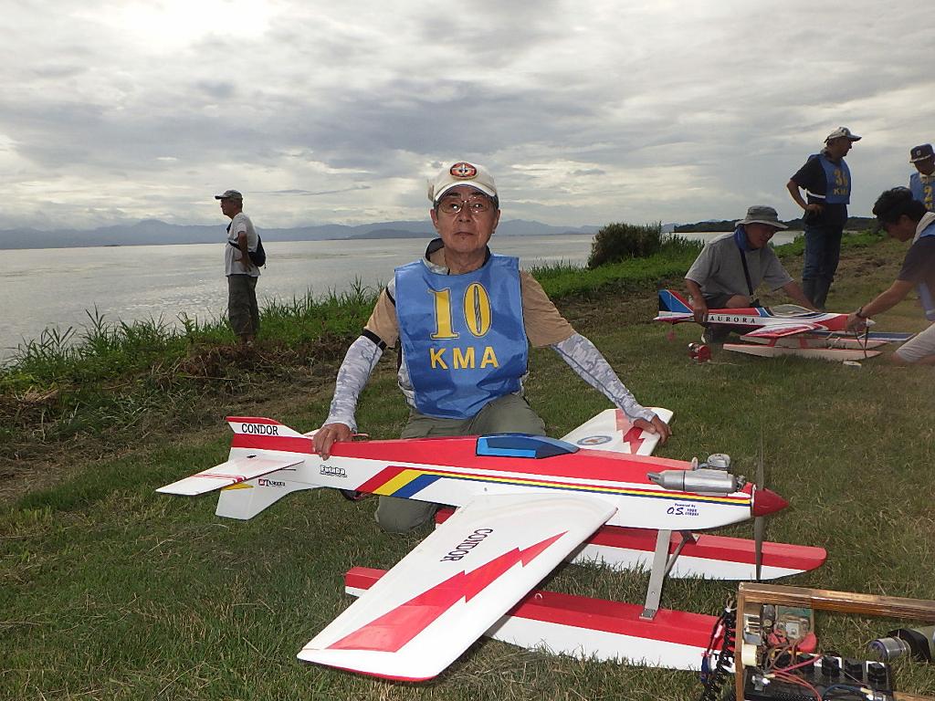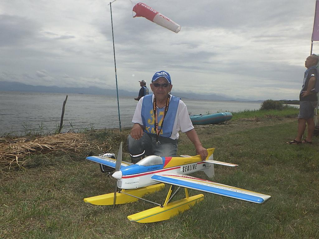 | 第67回 KMA琵琶湖水上機大会 9月15日 滋賀県高島市新旭町琵琶湖湖岸 今年の異常な暑さや迷走台風、さらに集中豪雨など気象変化が大きすぎて、各地で災害が発生しています、改めて、災害に遭われた皆様に心からお見舞い申し上げます。 ラジコンの大会も気象の変化で、止む無く中止する場合がありますが、今大会も昼からの雨が予想され、午前中に1ラウンドだけでも終了させたいと、朝7時過ぎに受付を開始しました。参加者の皆さんも、そのせいか早めに会場に到着のようです。 会場の状態は、前日の炎天下、役員有志により草刈りを実施。途中、地元クラブの仲間が乗用芝刈り機を持ち込んでくれ、短時間で草ぼうぼうが、ゴルフ場のような芝生状態に見違えるようになりました。応援してくれた関係者の皆さん、暑い中大変有難う御座いました。 さて、大会の方はオープン級16名、初級7名、中級16名の合計39名の参加を得ました。大盛況です! ただ、狭い駐車場なので、できるだけ詰めての駐車を参加者にお願いしました。8時前には受付も終わり、下り坂の天候予想もあって、島田委員長の挨拶に続き、KMA橋本会長の挨拶と少し短めに済ませて頂き、いつもの150m越え確認や、演技デモ飛行解説なども省略して、注意事項のお願いだけにとどめ、記念撮影を行った後、オープン級から競技をスタートしました。 琵琶湖湖面は穏やかで少し波がある程度で、申し分ありません。オープン級は競技ではなく、自由フライトですが、スタッフが出来具合、飛びっぷり、観客アピール度などを密かにチェックし、採点、表彰します。10時前にはオープン級も終わり、初級の競技へと移りました。 初級のエントリーは7名、9項目の演技に挑戦です。今回はホームページに解説図を載せてPRしました、中にはコピーを持参して臨まれた方もいましたが、デッドパスが多かったり、コールを忘れたりとか、苦戦された方が見受けられました。11時過ぎには初級も終わり、続いて中級の競技へと移りました。 中級のエントリーは16名、10項目の演技に挑戦です。中級はベテランが多く、なかなかの接戦が予想されます。湖面の波は小波で、状態は良好です。風も穏やかで、心配された雨も降りそうにありません、このまま選手とジャッジに最後まで競技を続けましょうとすすめましたが、途中12時前、7名ほどの競技が終えた時点で、ジャッジの休憩を兼ね、昼食休憩を20分ほど取ることにしました。その後、競技を再開、終了は13時半過ぎでした。幸い最後まで雨は降らず、採点表の計算・集計のため、選手には自由フライトの時間とし、各自で自由飛行を行って頂きました。 14時過ぎに表彰式へと移り、オープン級、初級、中級の順番で賞状とメダルの授与が行われました。その後は、恒例の抽選会で選手全員に参加賞を渡し、最後にジャンケン大会で、ご当地の安曇川産ワインを勝者にプレゼントし、最後に委員長の閉会の挨拶でお開きとしました。 最後まで雨も降らずに恵まれた大会でした。お手伝い頂いた選手の皆様、水上機委員の皆様、蒸し暑い中、本当にお疲れ様、有難うございました。 今回御協賛頂きました会社様は以下の通りです(順不動、敬称略) (株)テトラ、双葉電子工業(株)、(株)OK模型、三和電子機器(株)、(株)マルク、プラネット模型 この場をお借りしまして厚くお礼を申し上げます。 最後にお詫びです、採点時の不手際で各自の得点に係数をかけずに集計し順位を決めました。選手からのご指摘があり、終了後、計算をし直して順位を確認しました。順位は変わらず、結果は成績表をご覧ください!大変ご心配をおかけし、申し訳ありませんでした! (文、写真、:KMA橋本実、 データ取りまとめ:橋本、テトラ山原 ) | ||