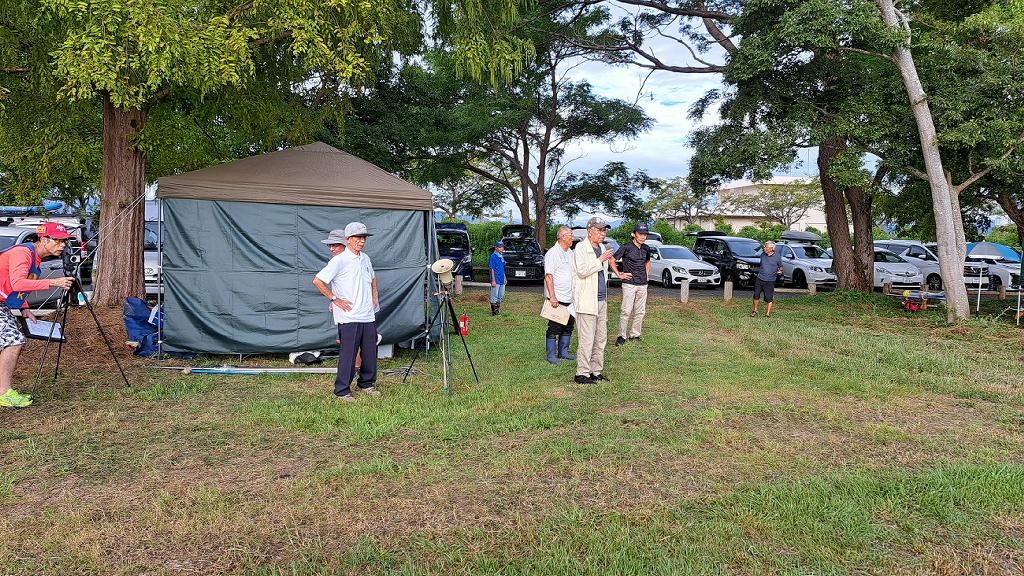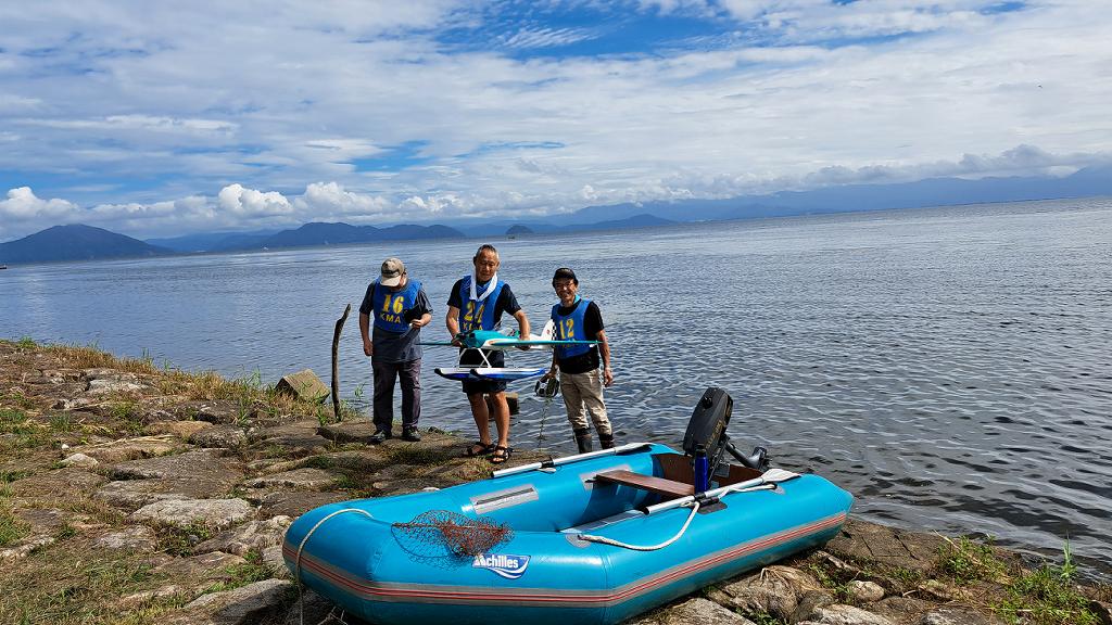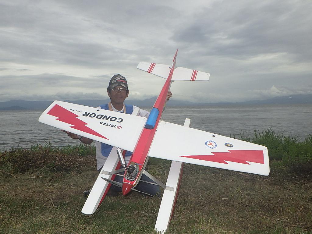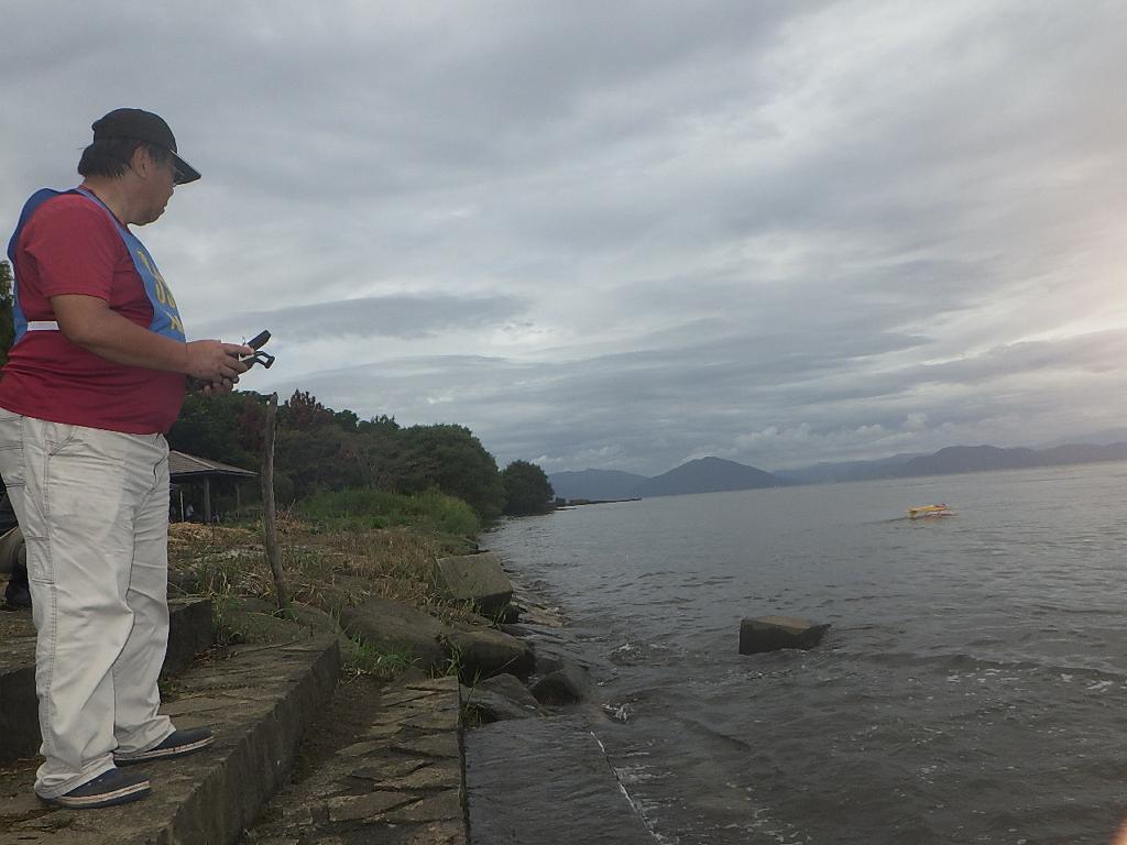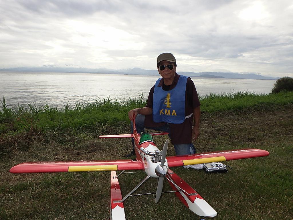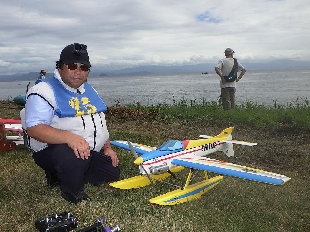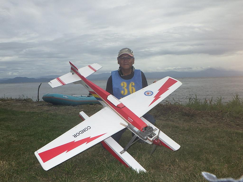 | 第67回 KMA琵琶湖水上機大会 9月15日 滋賀県高島市新旭町琵琶湖湖岸 今年の異常な暑さや迷走台風、さらに集中豪雨など気象変化が大きすぎて、各地で災害が発生しています、改めて、災害に遭われた皆様に心からお見舞い申し上げます。 ラジコンの大会も気象の変化で、止む無く中止する場合がありますが、今大会も昼からの雨が予想され、午前中に1ラウンドだけでも終了させたいと、朝7時過ぎに受付を開始しました。参加者の皆さんも、そのせいか早めに会場に到着のようです。 会場の状態は、前日の炎天下、役員有志により草刈りを実施。途中、地元クラブの仲間が乗用芝刈り機を持ち込んでくれ、短時間で草ぼうぼうが、ゴルフ場のような芝生状態に見違えるようになりました。応援してくれた関係者の皆さん、暑い中大変有難う御座いました。 さて、大会の方はオープン級16名、初級7名、中級16名の合計39名の参加を得ました。大盛況です! ただ、狭い駐車場なので、できるだけ詰めての駐車を参加者にお願いしました。8時前には受付も終わり、下り坂の天候予想もあって、島田委員長の挨拶に続き、KMA橋本会長の挨拶と少し短めに済ませて頂き、いつもの150m越え確認や、演技デモ飛行解説なども省略して、注意事項のお願いだけにとどめ、記念撮影を行った後、オープン級から競技をスタートしました。 琵琶湖湖面は穏やかで少し波がある程度で、申し分ありません。オープン級は競技ではなく、自由フライトですが、スタッフが出来具合、飛びっぷり、観客アピール度などを密かにチェックし、採点、表彰します。10時前にはオープン級も終わり、初級の競技へと移りました。 初級のエントリーは7名、9項目の演技に挑戦です。今回はホームページに解説図を載せてPRしました、中にはコピーを持参して臨まれた方もいましたが、デッドパスが多かったり、コールを忘れたりとか、苦戦された方が見受けられました。11時過ぎには初級も終わり、続いて中級の競技へと移りました。 中級のエントリーは16名、10項目の演技に挑戦です。中級はベテランが多く、なかなかの接戦が予想されます。湖面の波は小波で、状態は良好です。風も穏やかで、心配された雨も降りそうにありません、このまま選手とジャッジに最後まで競技を続けましょうとすすめましたが、途中12時前、7名ほどの競技が終えた時点で、ジャッジの休憩を兼ね、昼食休憩を20分ほど取ることにしました。その後、競技を再開、終了は13時半過ぎでした。幸い最後まで雨は降らず、採点表の計算・集計のため、選手には自由フライトの時間とし、各自で自由飛行を行って頂きました。 14時過ぎに表彰式へと移り、オープン級、初級、中級の順番で賞状とメダルの授与が行われました。その後は、恒例の抽選会で選手全員に参加賞を渡し、最後にジャンケン大会で、ご当地の安曇川産ワインを勝者にプレゼントし、最後に委員長の閉会の挨拶でお開きとしました。 最後まで雨も降らずに恵まれた大会でした。お手伝い頂いた選手の皆様、水上機委員の皆様、蒸し暑い中、本当にお疲れ様、有難うございました。 今回御協賛頂きました会社様は以下の通りです(順不動、敬称略) (株)テトラ、双葉電子工業(株)、(株)OK模型、三和電子機器(株)、(株)マルク、プラネット模型 この場をお借りしまして厚くお礼を申し上げます。 最後にお詫びです、採点時の不手際で各自の得点に係数をかけずに集計し順位を決めました。選手からのご指摘があり、終了後、計算をし直して順位を確認しました。順位は変わらず、結果は成績表をご覧ください!大変ご心配をおかけし、申し訳ありませんでした! (文、写真、:KMA橋本実、 データ取りまとめ:橋本、テトラ山原 ) | ||