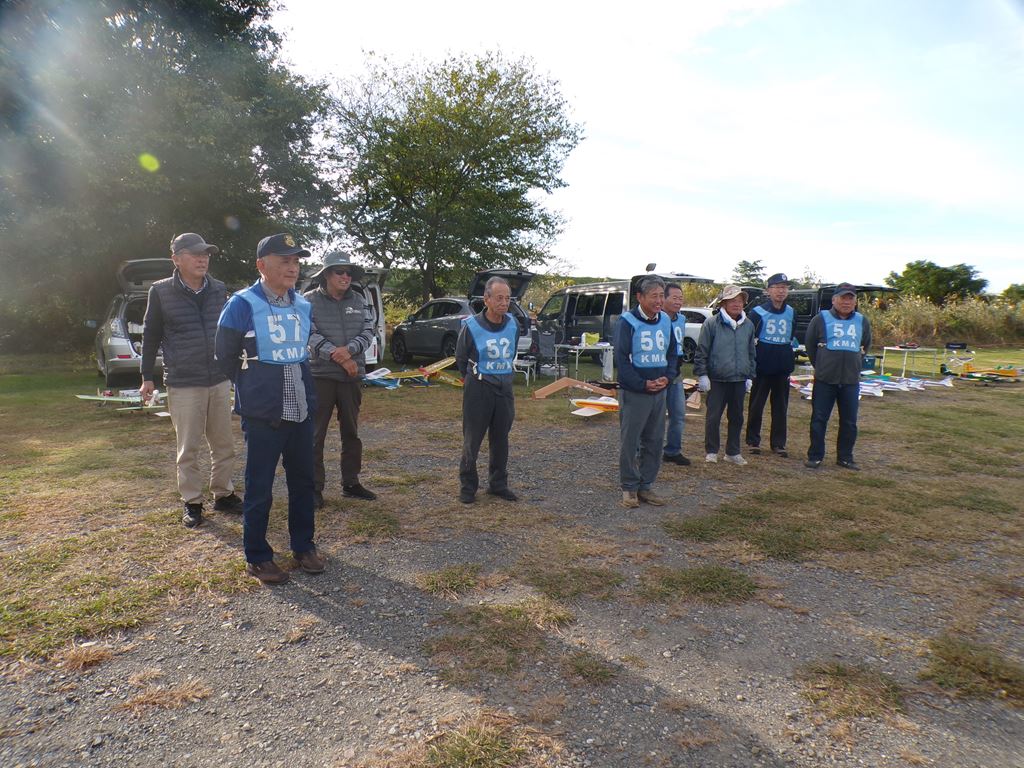 2.開会式での参加者の皆さん。今回は少ない人数 でしたが、ラジコン模型飛行機大好きと他者認める メンバーでした。 |