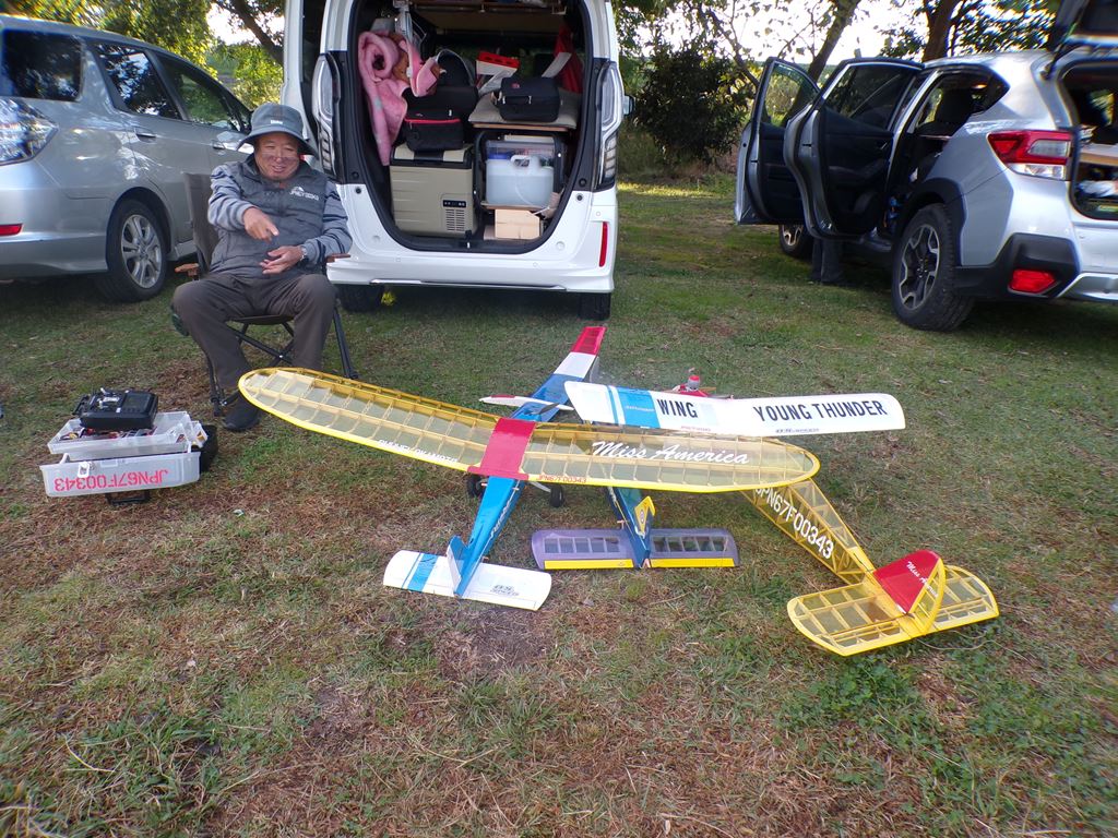 4.大西厳さんのヤングサンダーはENYA19BB搭載した岡本順一さん作。先日のKMAスケール秋季大会で、この大会 参加のために出されて獲得した賞品である。 |