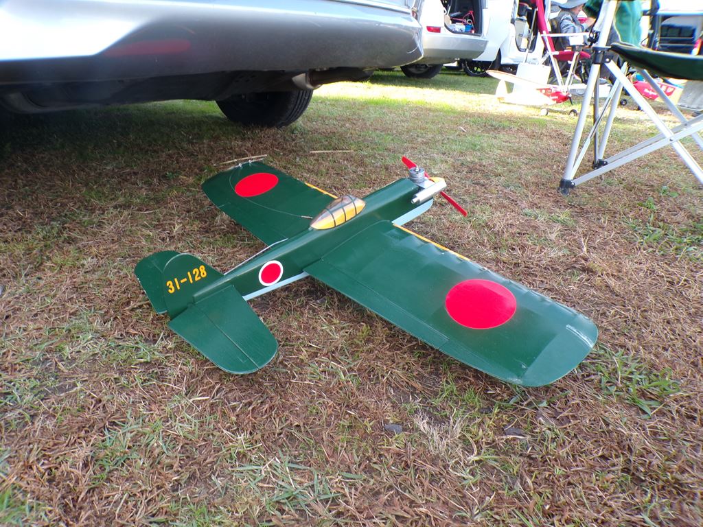 27.東京都の佐藤哲司さんは委員でもあるが、今回はKMCoのUコン機、紫電で展示参加。昼休みにはUコン飛行も見てみたいものである。 |
