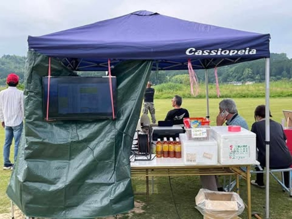 1.コンパクトに設けられた本部席、暑さ対策の飲料も冷やして準備万端! |