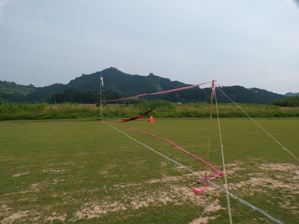 15.リボンを潜るグライダーは東京から参加の 中條延幸選手、見事1位を獲得した。 |