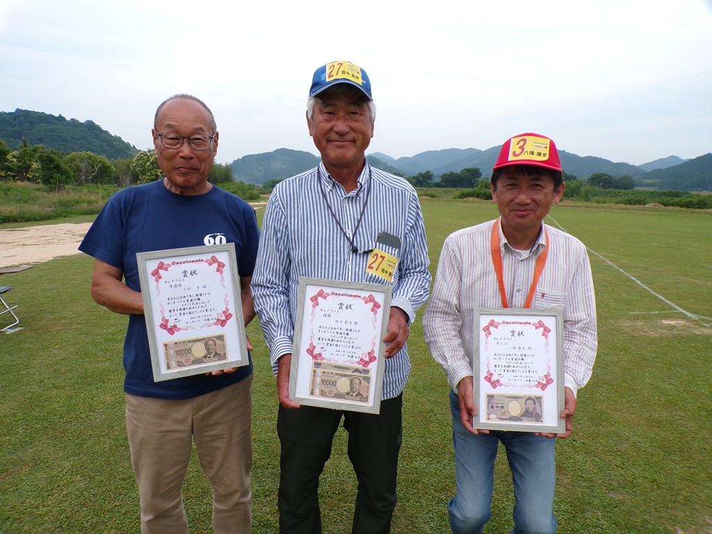 19.Aクラス入賞者、左から2位中條延幸選手、 1位桑原克己選手、3位松原尚貴選手、 おめでとうございました。 |