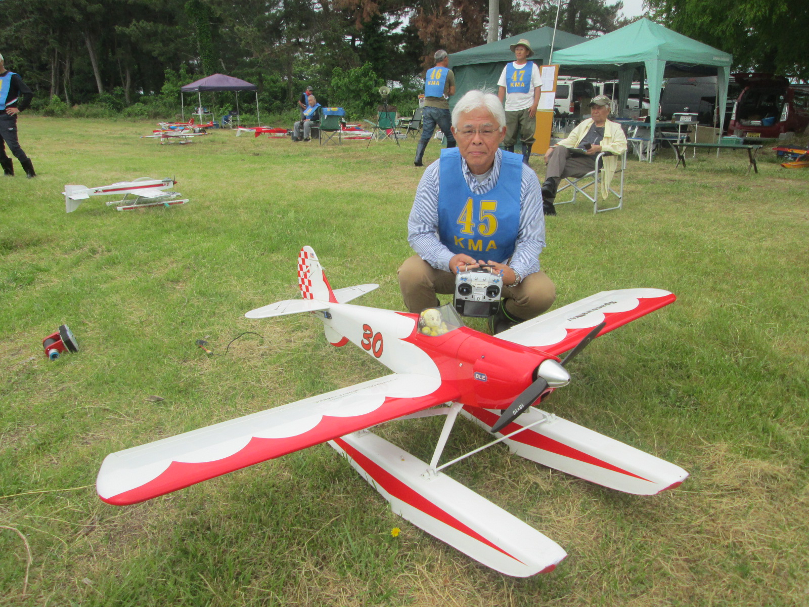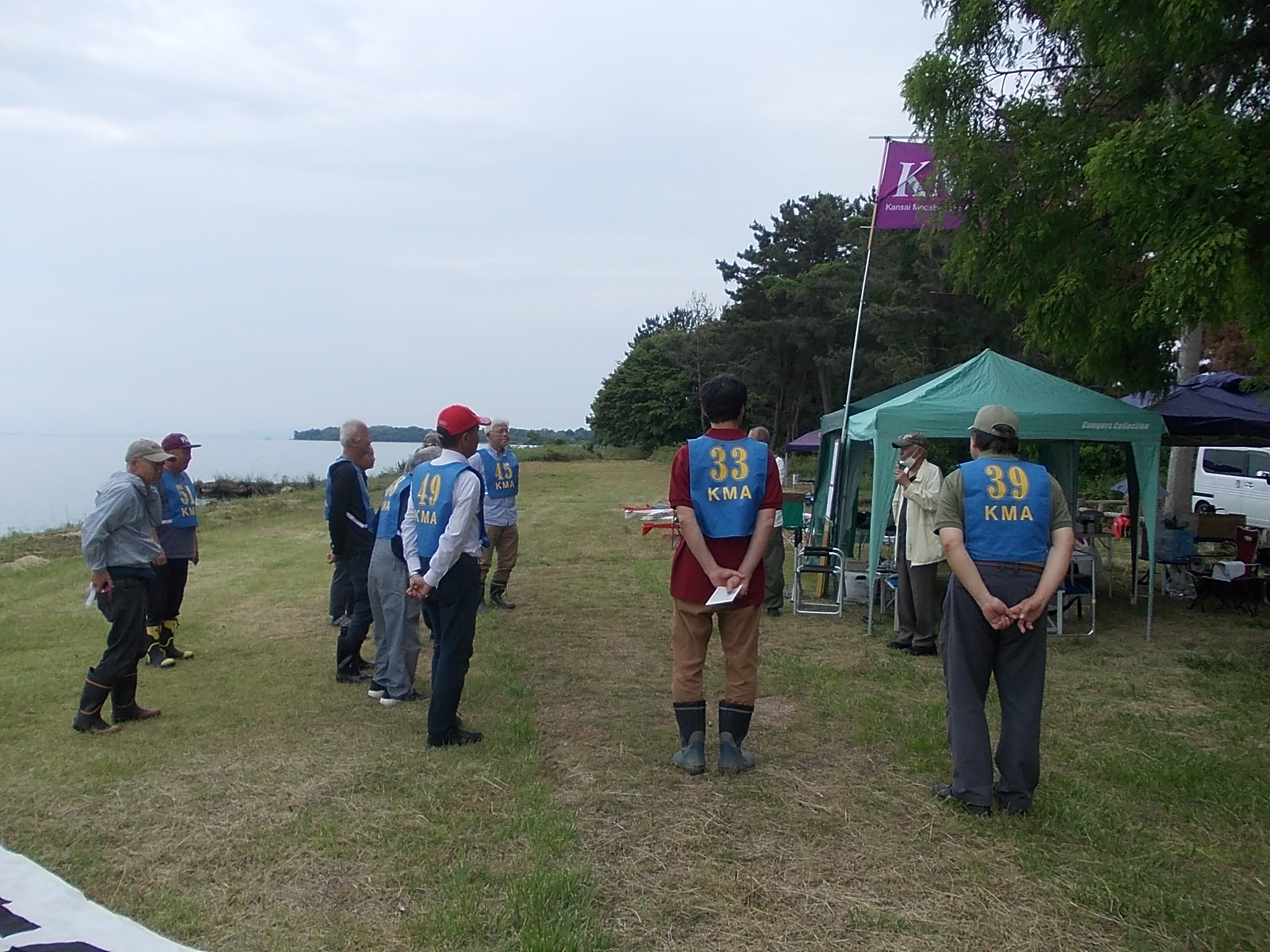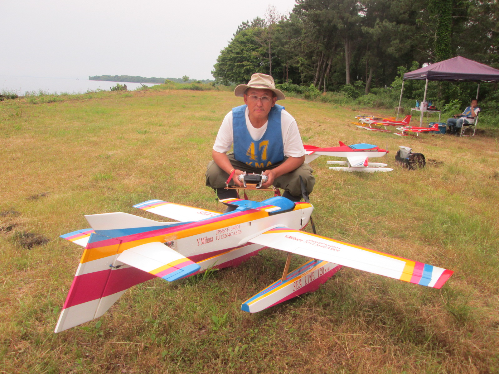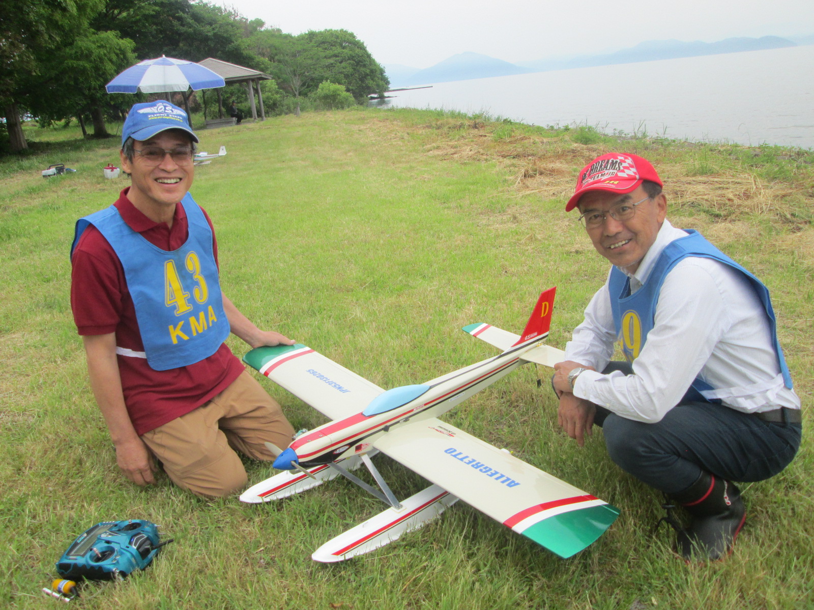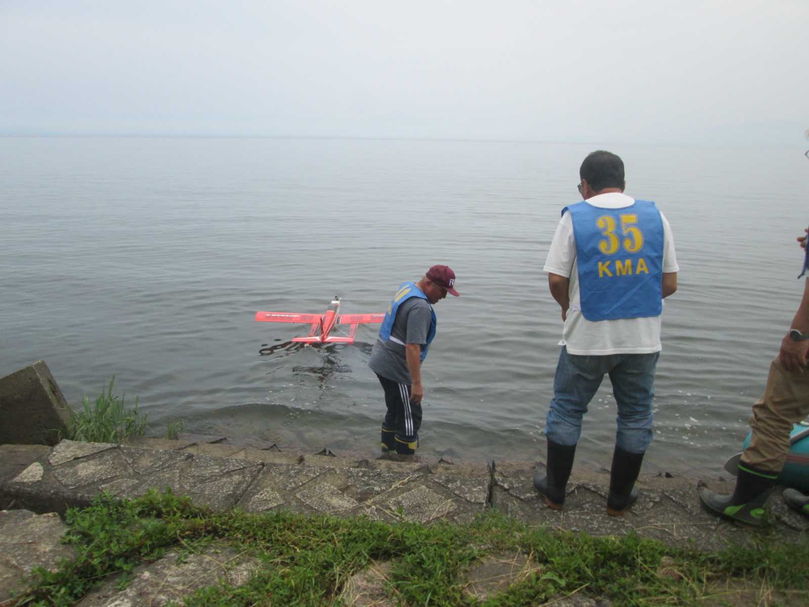| 第68回 KMA琵琶湖R/C水上機大会 6月8日 滋賀県高島市新旭町琵琶湖湖岸 梅雨入りかと思われる天気の中の6月8日、第68回の水上機大会が行われました。幸い当日は雨も降らずに、空も波も穏やかな一日で最高の状態で進められました。新旭町琵琶湖湖岸のいつもの会場は、大会前に地元の湖岸整備グループのメンバーと一緒に広い範囲で草刈りを行いましたので、芝生のような気持ちの良い会場での競技会ができました!草刈りにご協力頂いた皆様、心から感謝申し上げます。 さて、競技はタイムトライアルとフライインの2種目です、ダブルエントリーを含め、総勢22名での競技会となりました。前日から会場設営で車中泊の役員が早朝6時から準備をはじめ、8時から受付開始となりました。いつもの島田委員長の挨拶、KMA橋本会長の挨拶に続き、参加者全員での記念撮影、150m高度確認のデモフライトを終え、いよいよ1種目目のタイムトライアル競技がスタートしました。今回もタイムトライアルは4分に挑戦、途中にタッチアンドゴーを行って、着水までの時間での順位を競います。今回は役員も参加しますが入賞は辞退、ですので一般参加者は入賞の確率が大です!結果、優勝は西宮市の山崎さん、準優勝は東大阪の車田幸治さん、3位は愛知からお越しの須原さんに決まりました。 引き続きフライインのスタートです。この競技の入賞は飛行ぶり、機体の鑑賞度、観客へのアピール度などを役員数人の投票で決定します。少し役員の好みに左右されますがご勘弁を!結果は、金賞は神戸RCの西さん(機体:カルマート91)、銀賞は京都RCヘリクラブの辻本さん(機体:デカスロン60電動)、銅賞は敦賀市からお越しの舩野さん(機体:セスナ182)のお三方に決まりました。入賞の皆さまおめでとうございました。 2種目それぞれ2ラウンドを実施し、途中食事休憩も入れて、ゆっくりと競技を進めました。天気も曇りですが、雨もなく、風も弱く、波も静かで例年にない、ベストコンディションでした。参加者も堪能されたのか、午後2時前に空に飛行機がなく、自由フライトのアナウンスにも反応がないので、少し早いのですが閉会式に移りました。 まず、競技結果の発表と表彰式です。その後、参加賞の抽選でゼッケンの返却と、一委員の遊休品エンジンと機体のオークション、さらに父の日に合わせたワインが当たるジャンケン大会などをにぎやかに行い、最後に委員長の閉会の挨拶でお開きとしました。参加者・役員の皆さんお疲れさまでした。9月秋の大会でまたお会いしましょう! 最後になりましたが今回協賛品でお世話になりました(株)テトラ様、有難う御座いました。また、最後まで片付けと撤収にご協力頂きました役員の皆様、大変有難う御座いました。この場を借りて厚く御礼申し上げます。 文と写真:KMA水上機委員 橋本 実 | ||